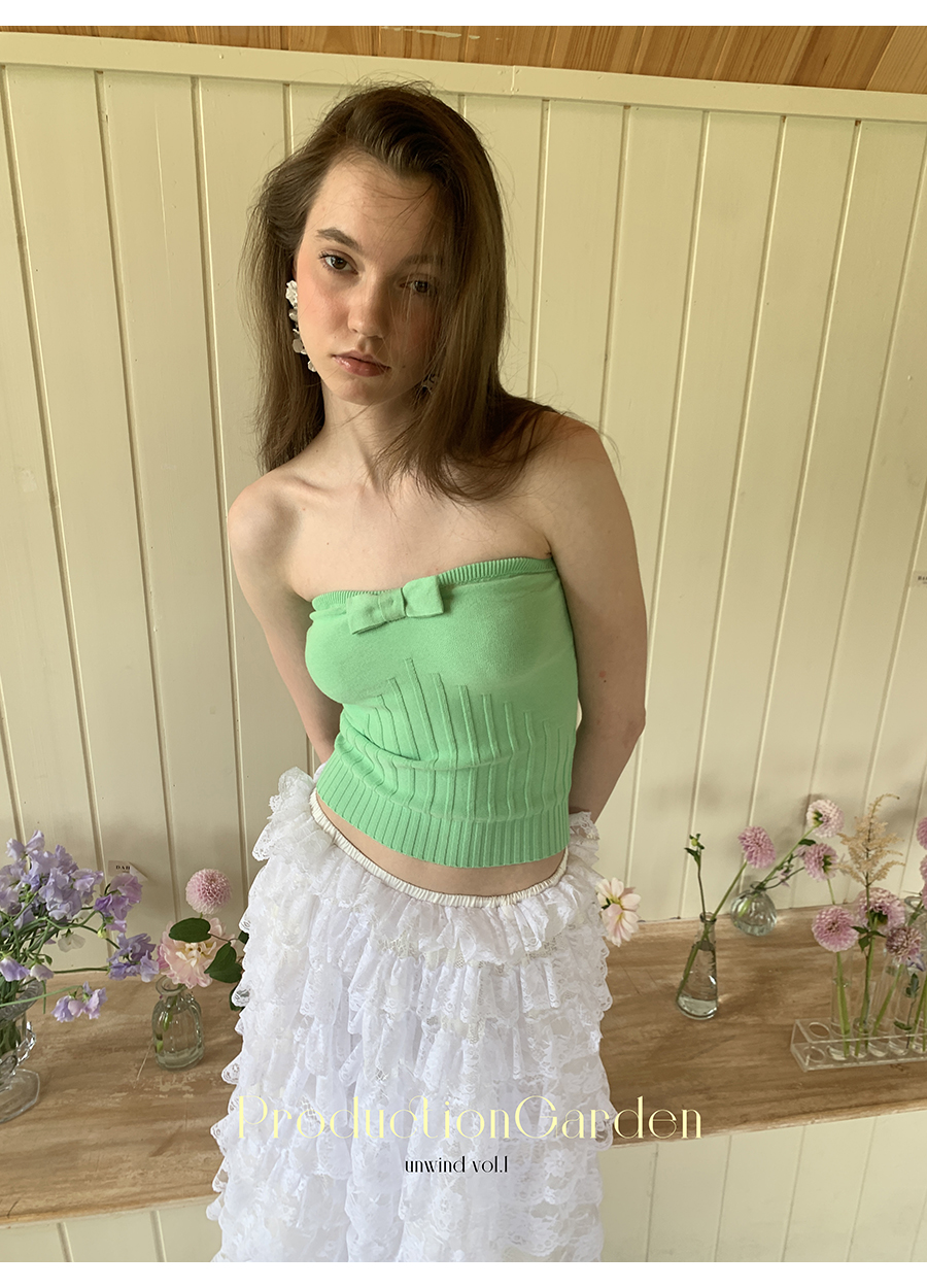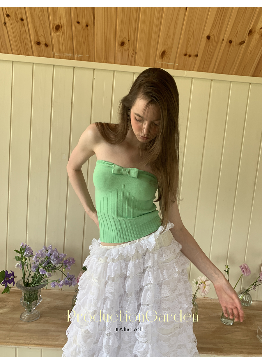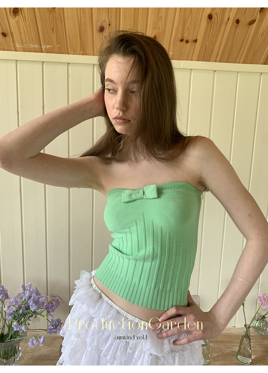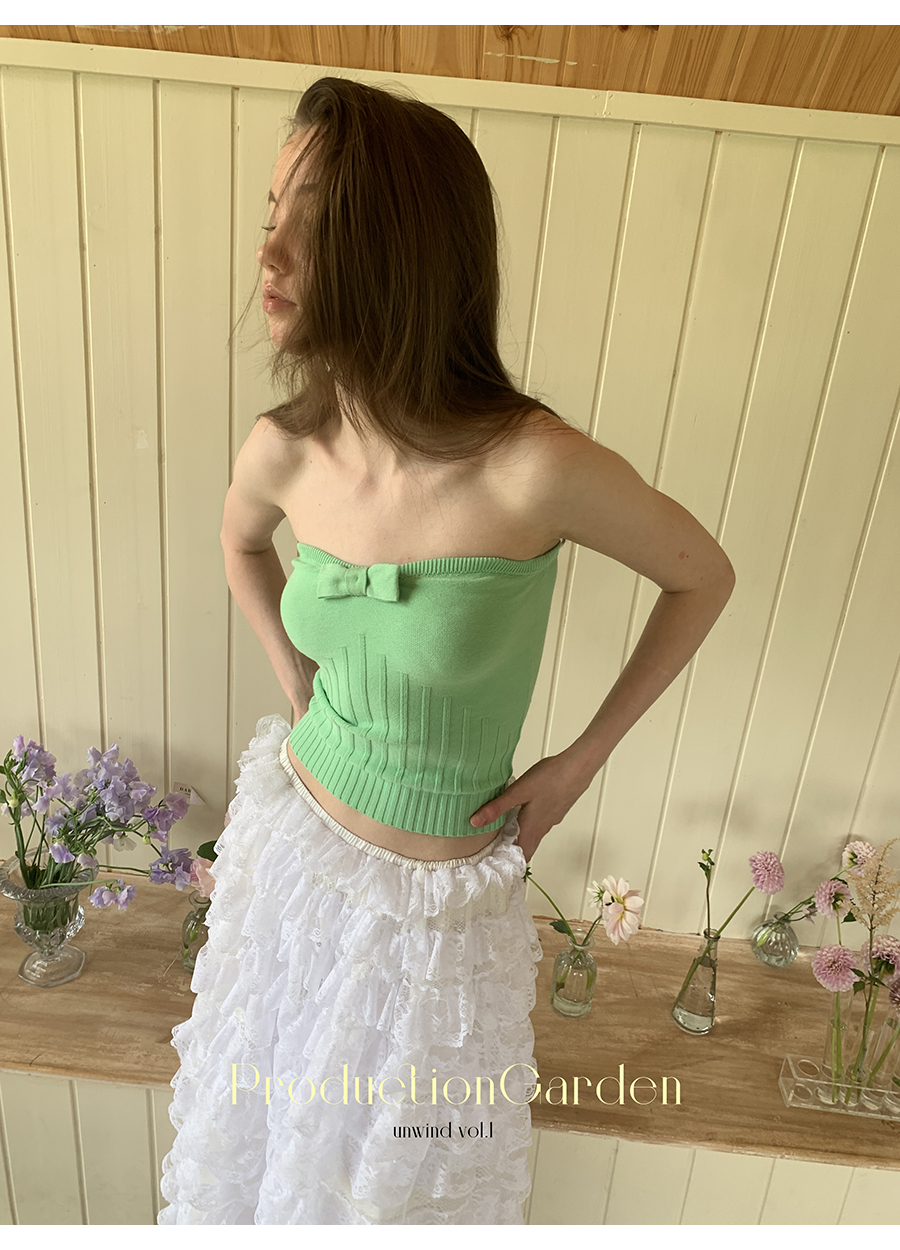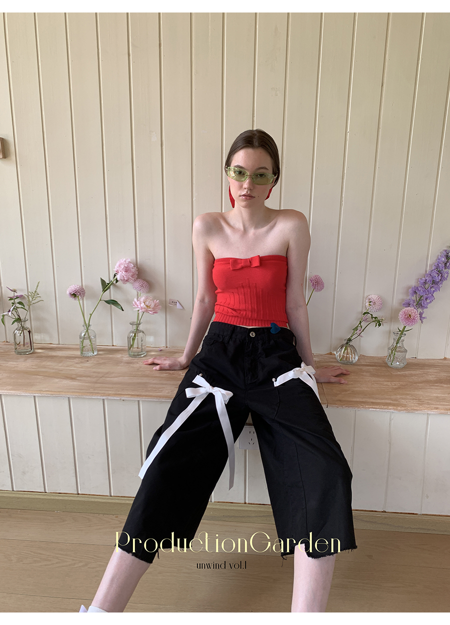 MORN sweet spicy pit jacquard bow slim knitted small tube top