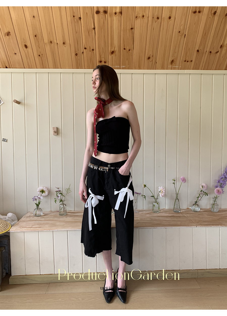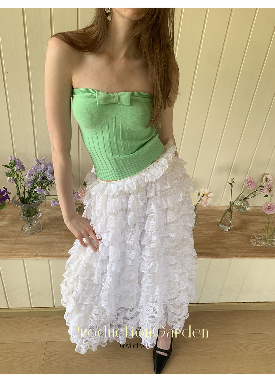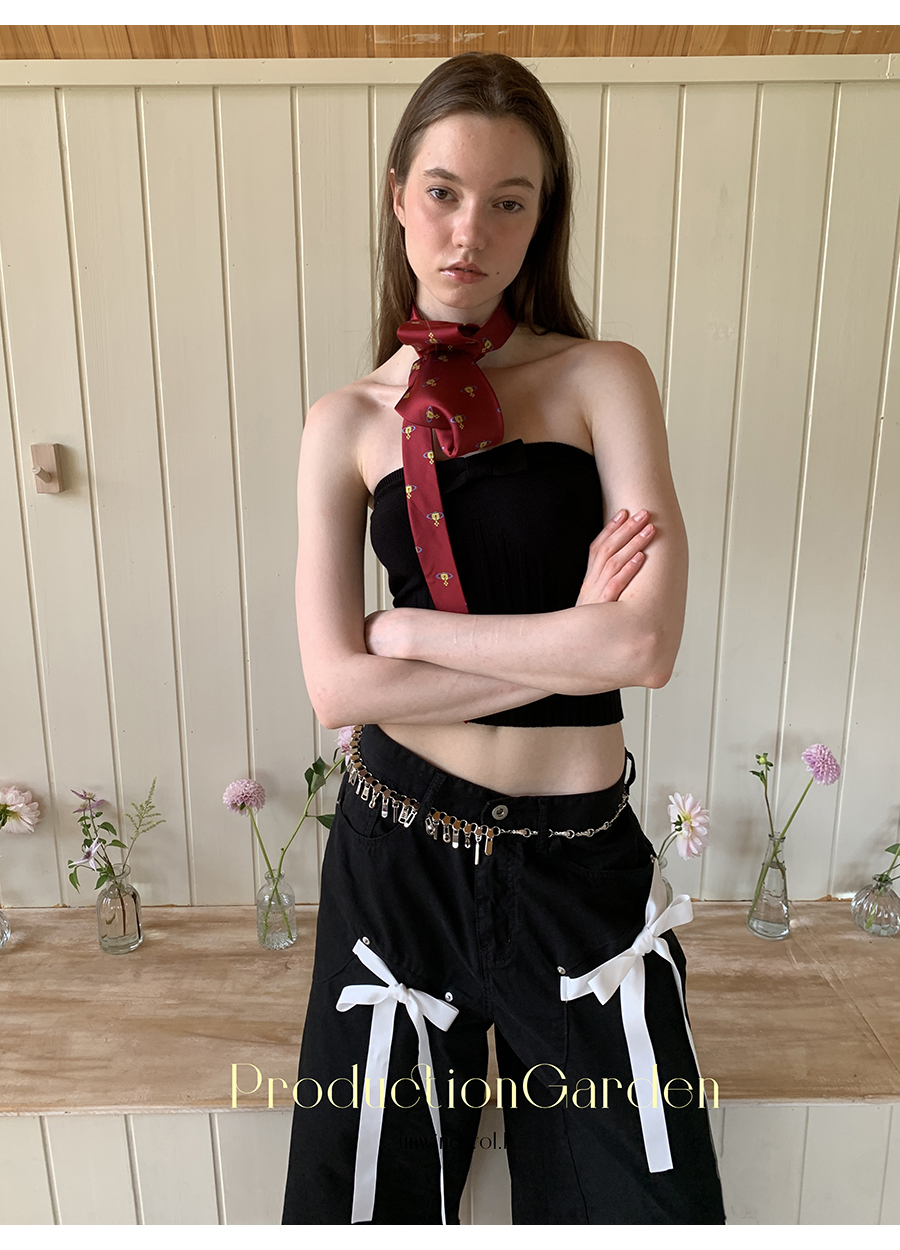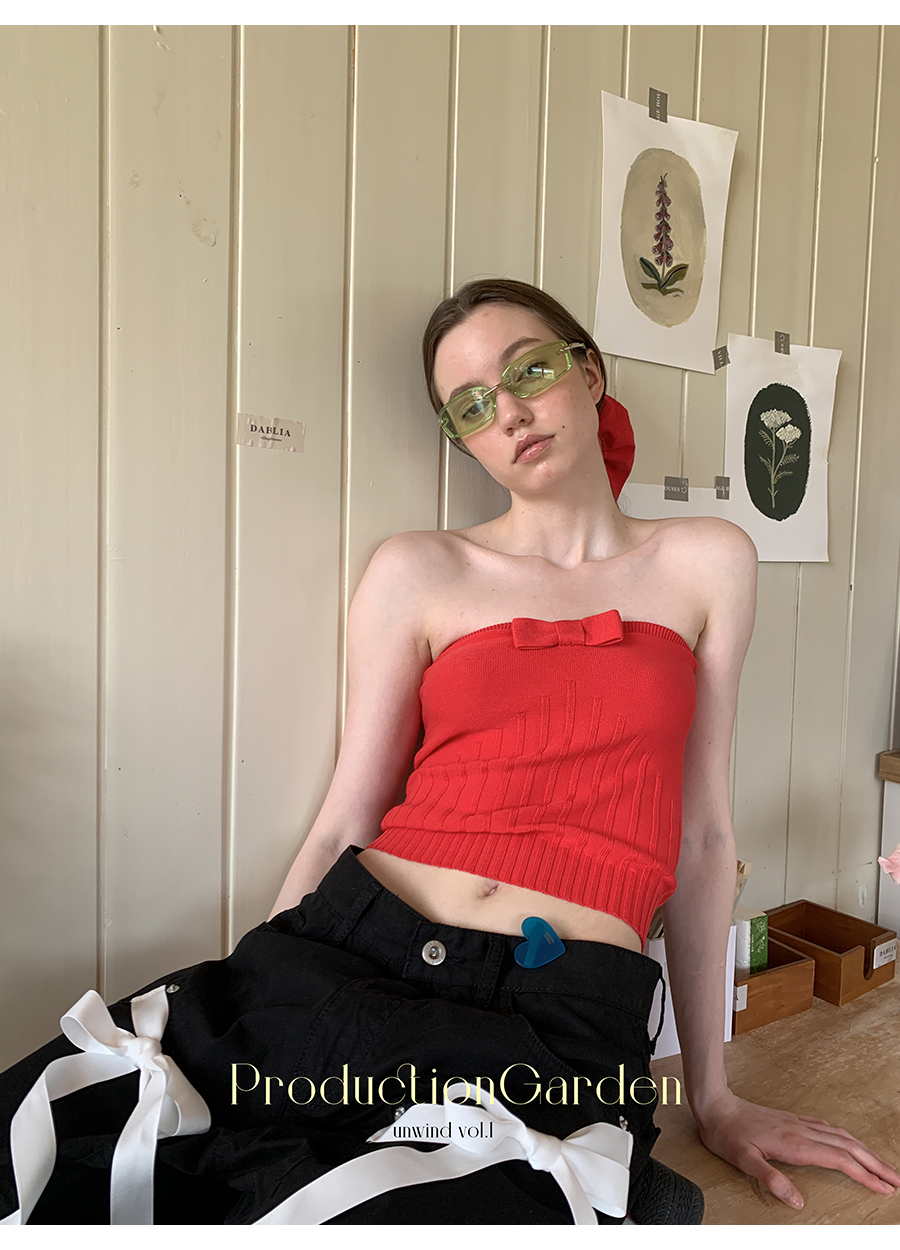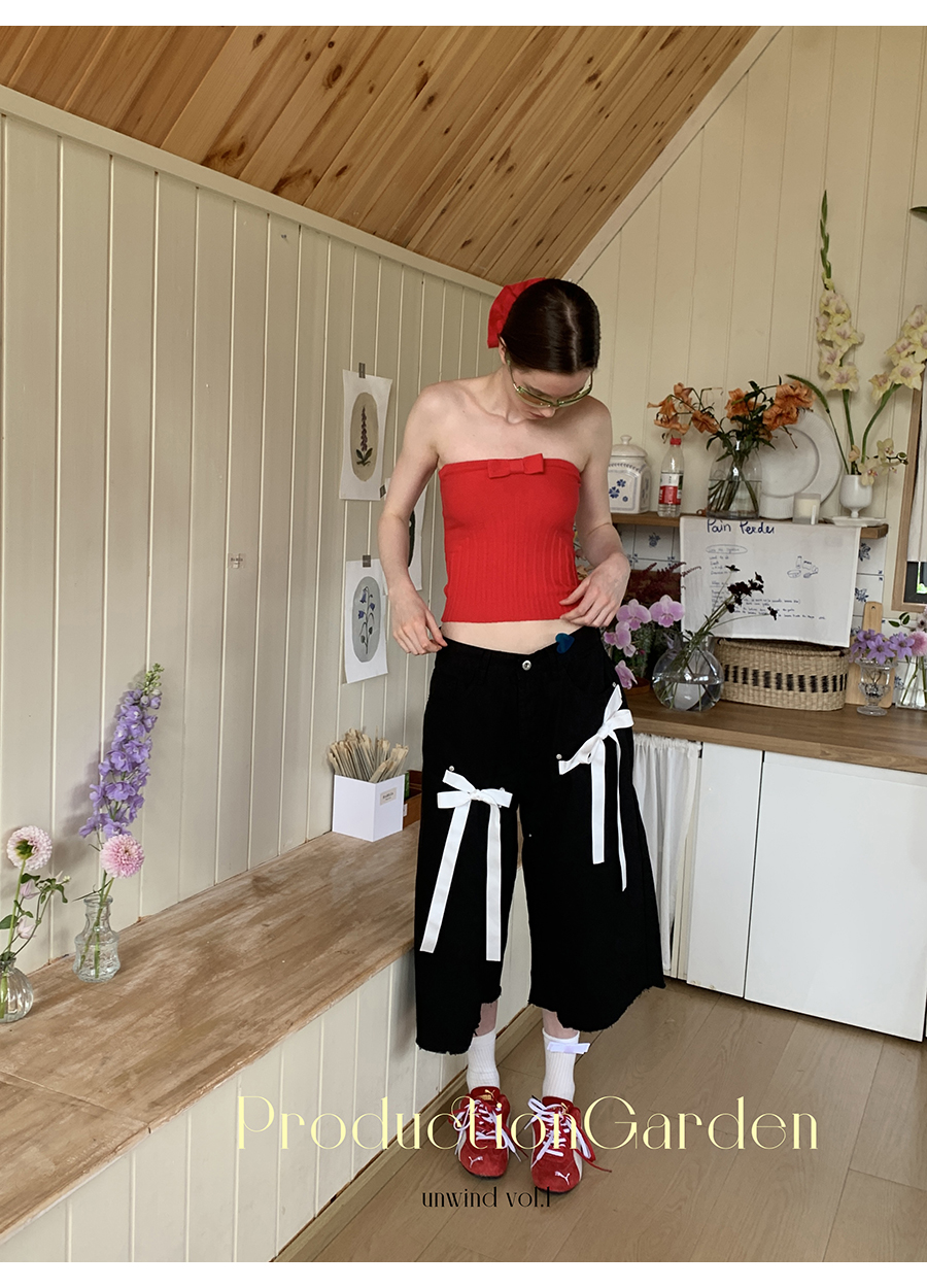 MORN sweet spicy pit jacquard bow slim knitted small tube top