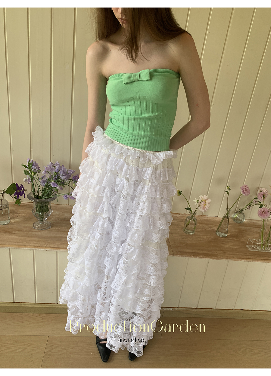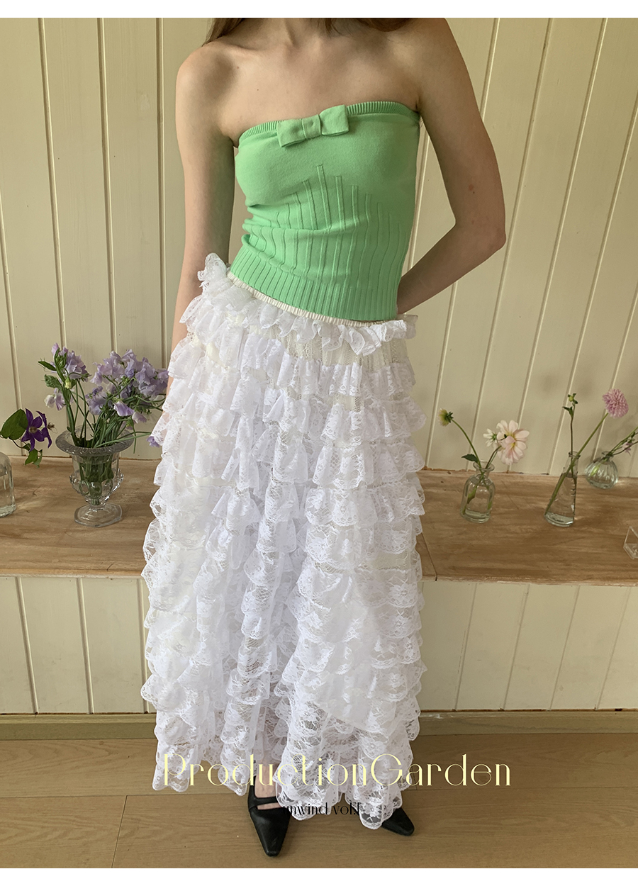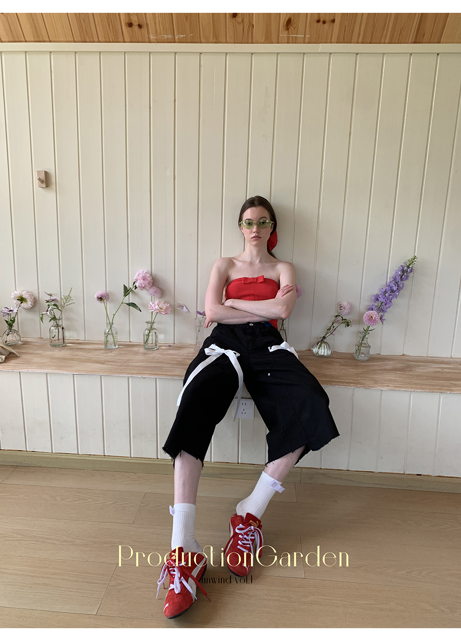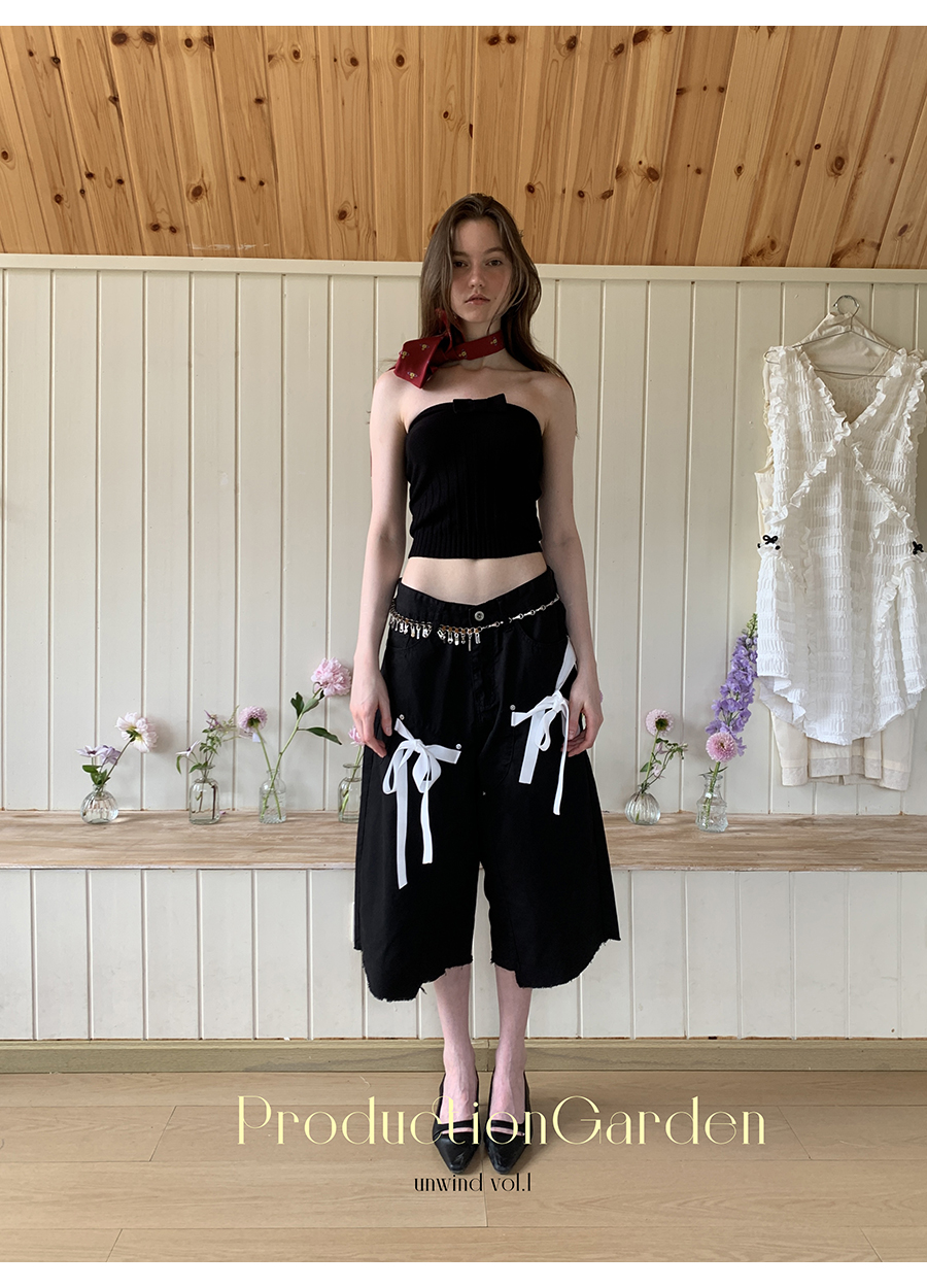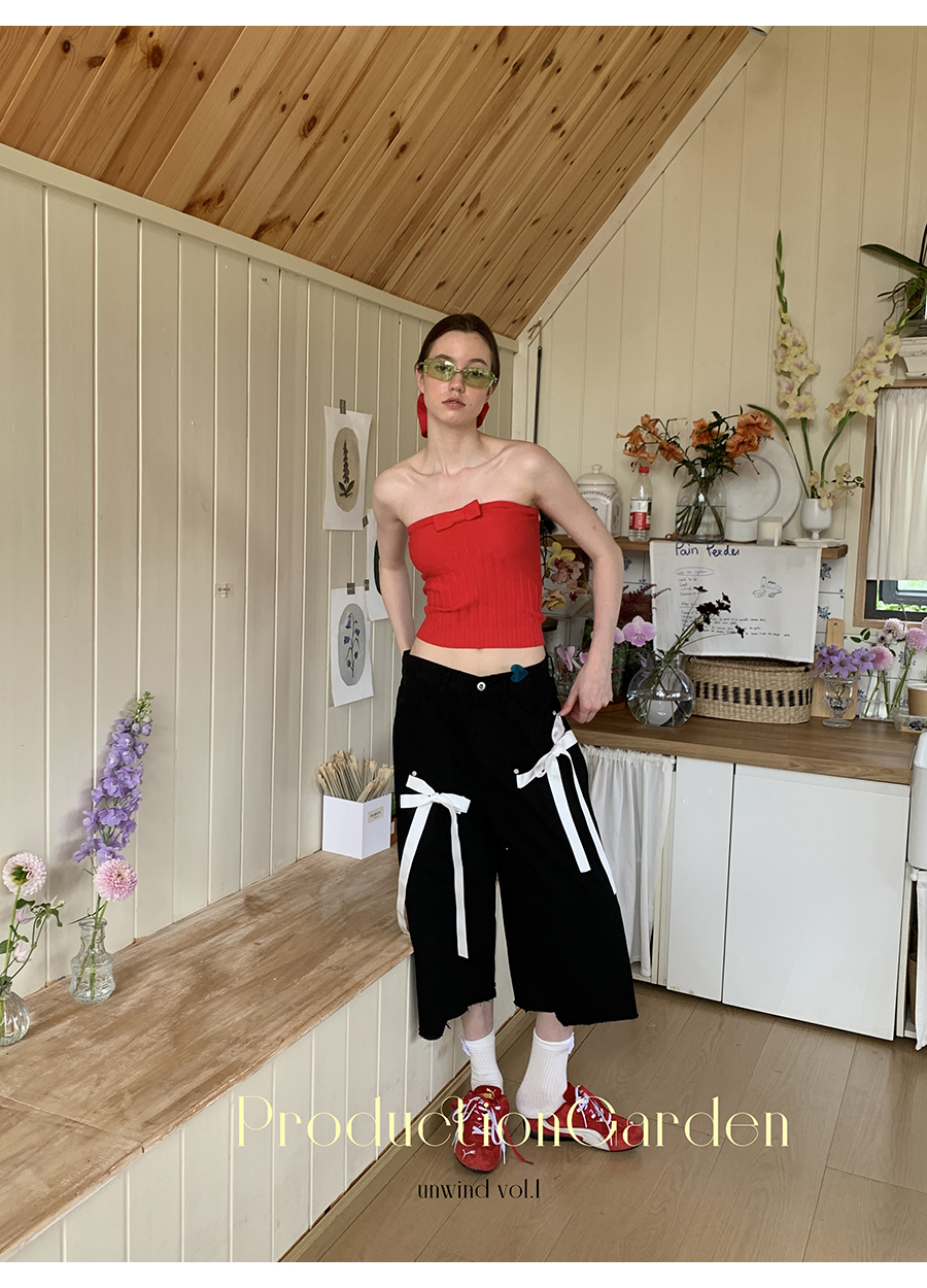 MORN sweet spicy pit jacquard bow slim knitted small tube top