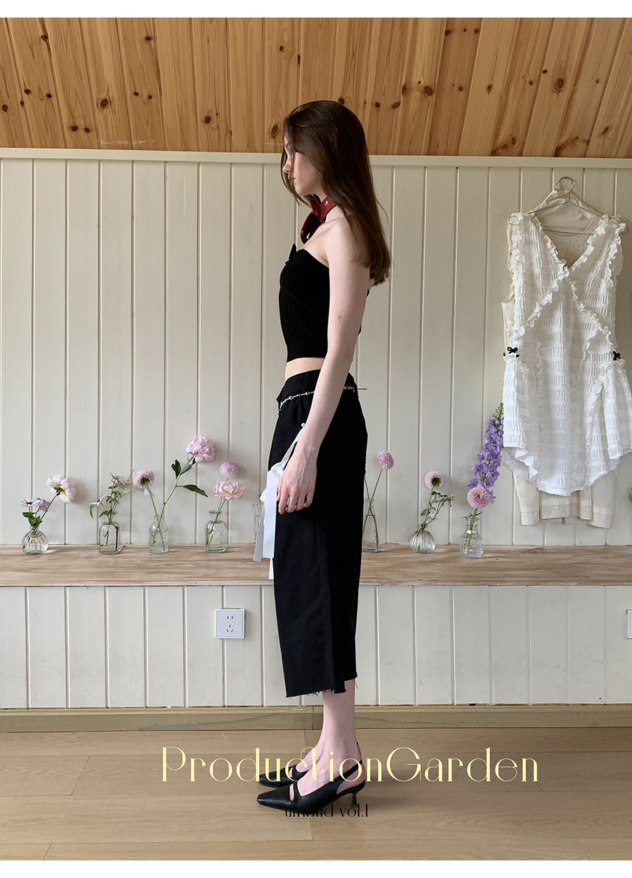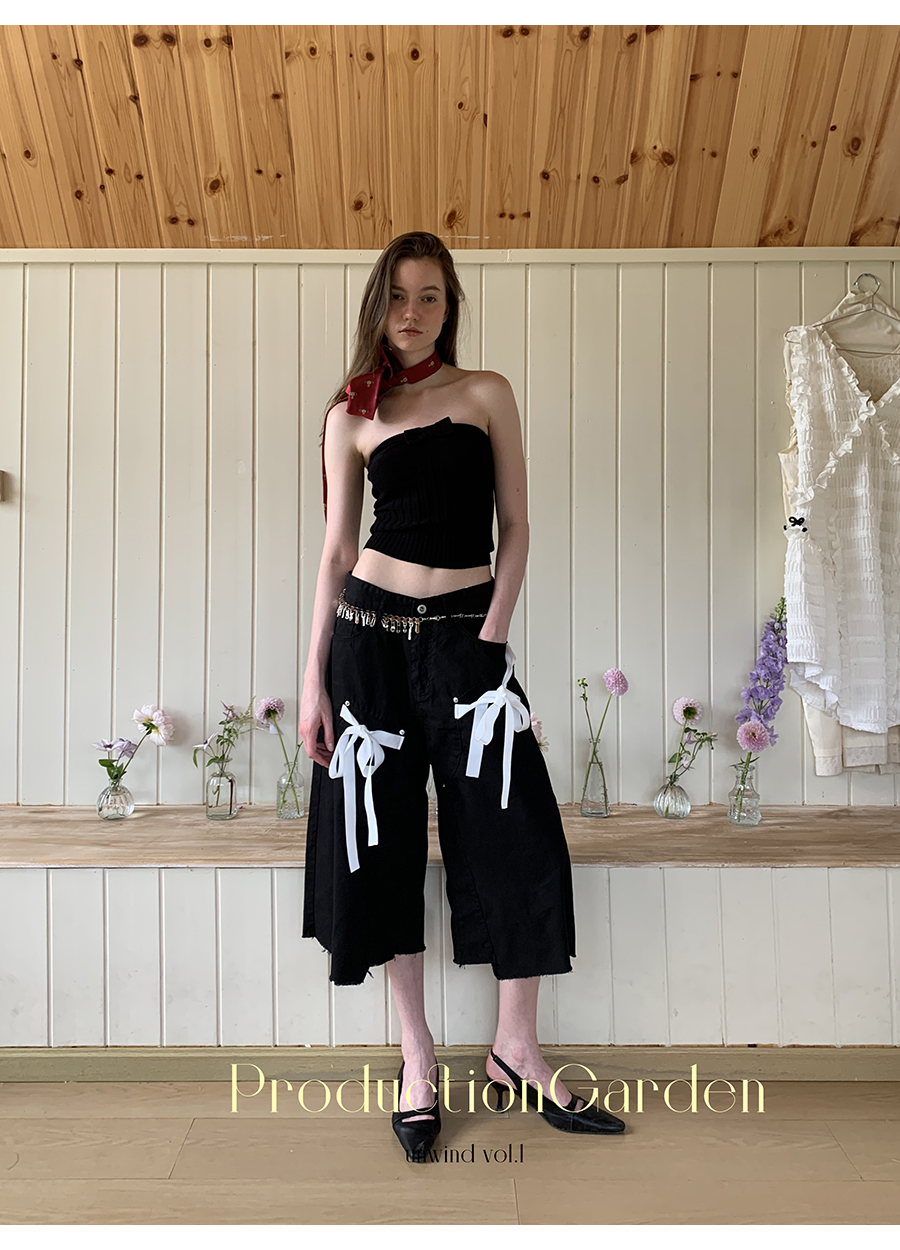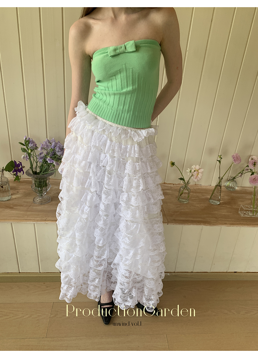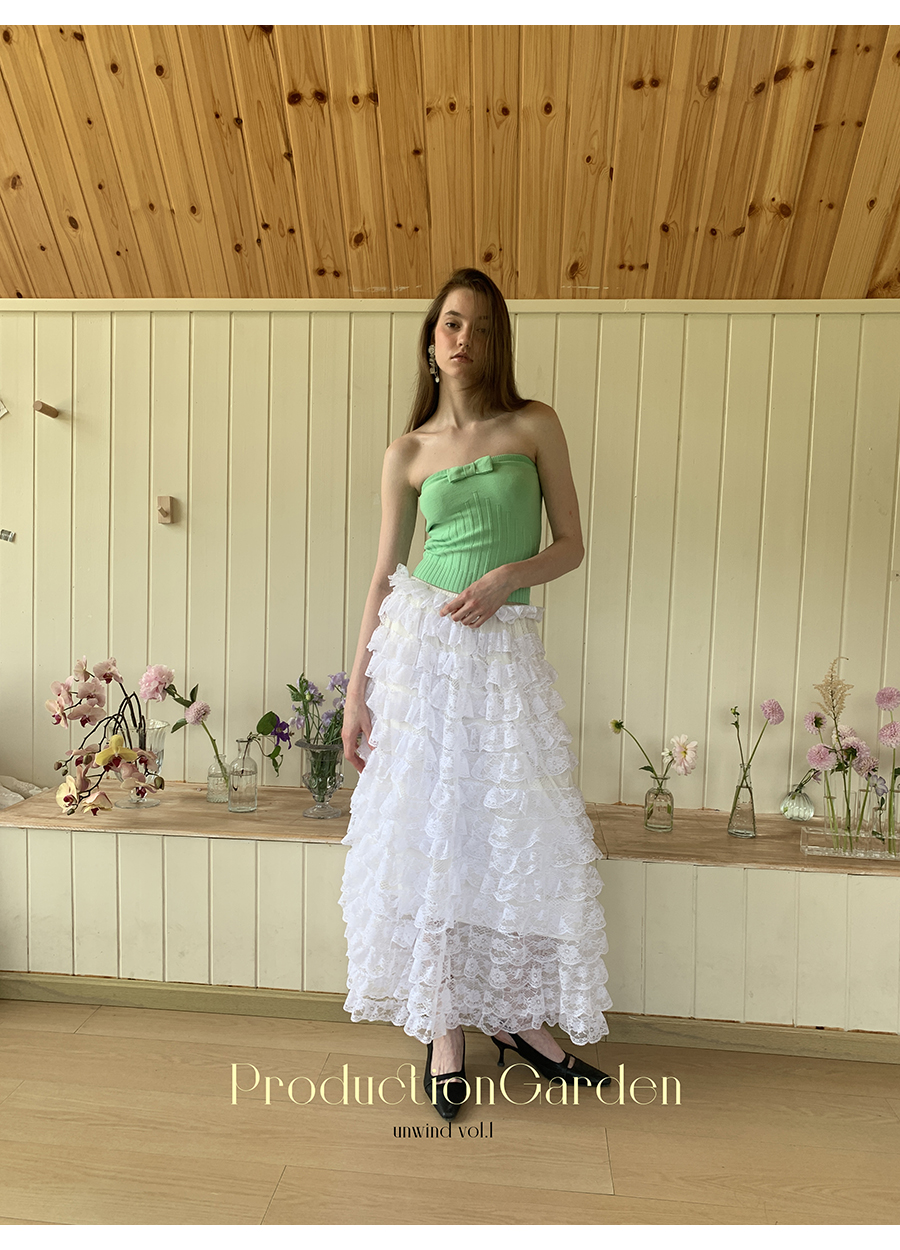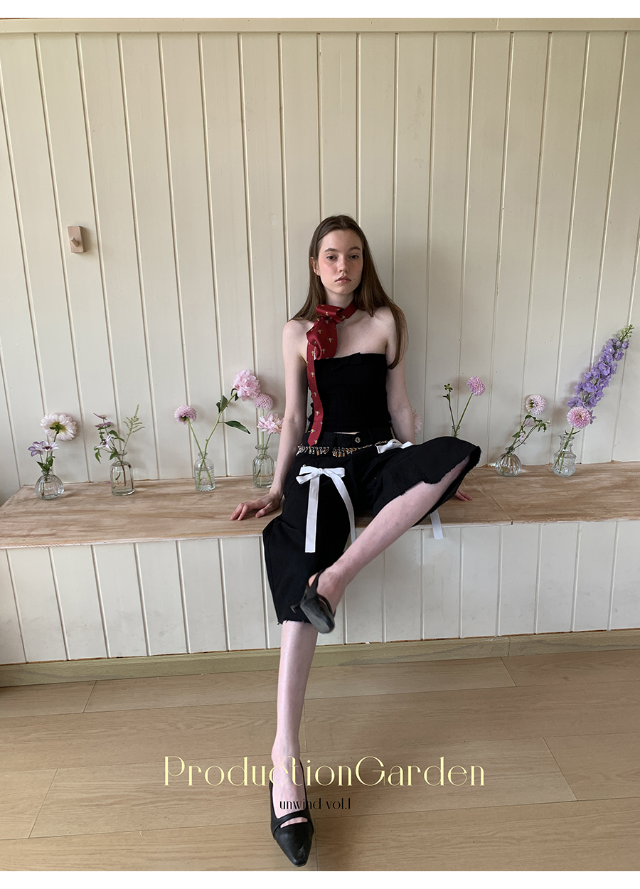 MORN sweet spicy pit jacquard bow slim knitted small tube top