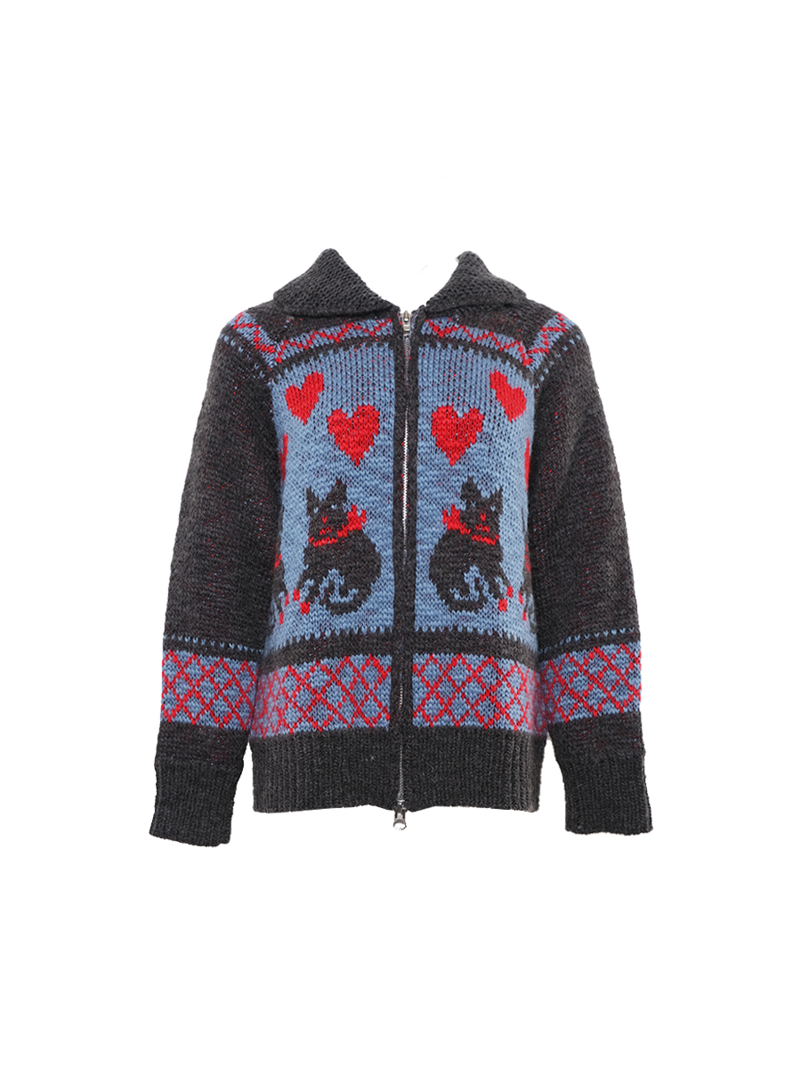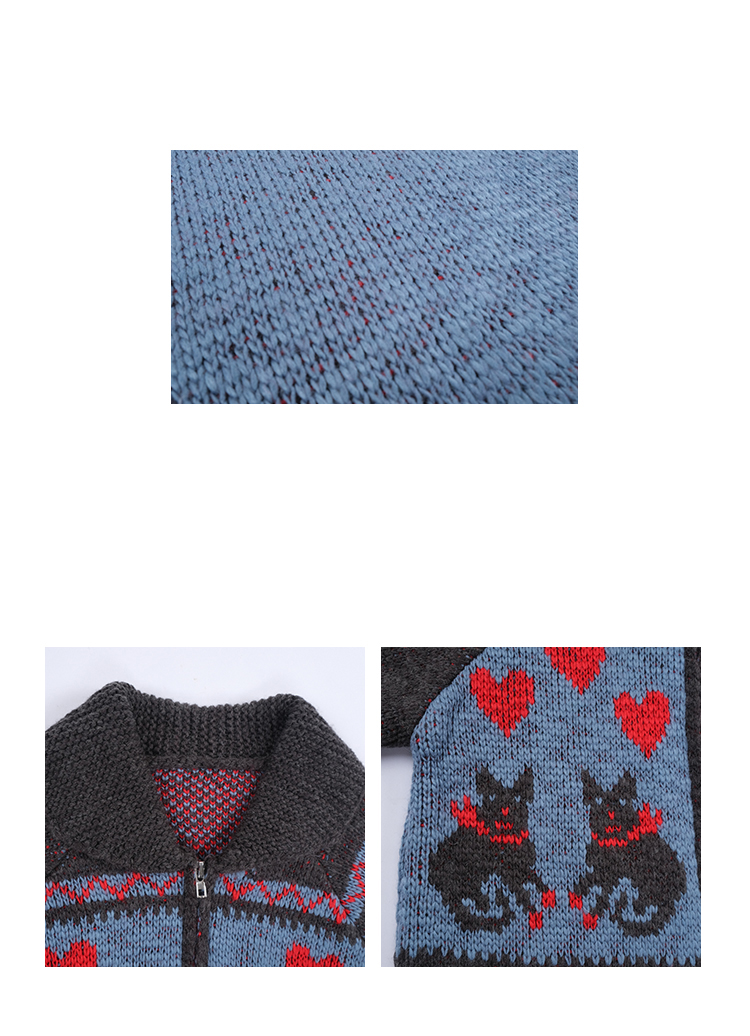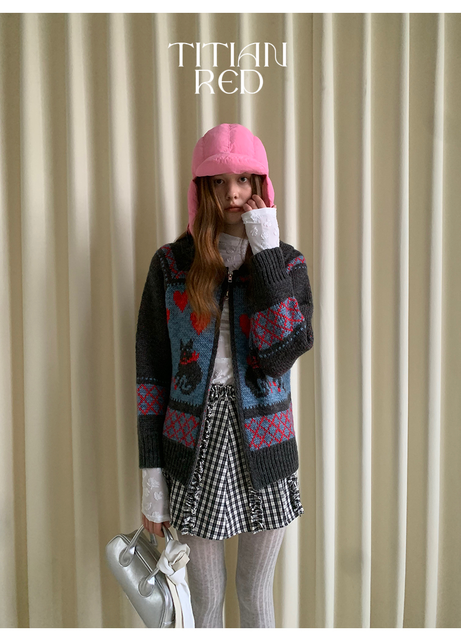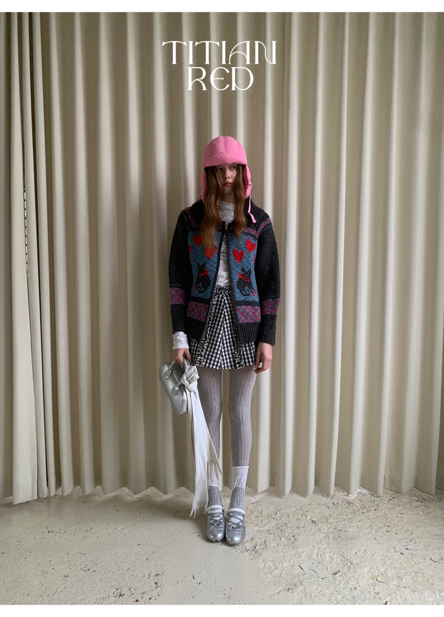 MORN Retro Contrast Jacquard Knit Cardigan Midi-Length Sweater Jacket