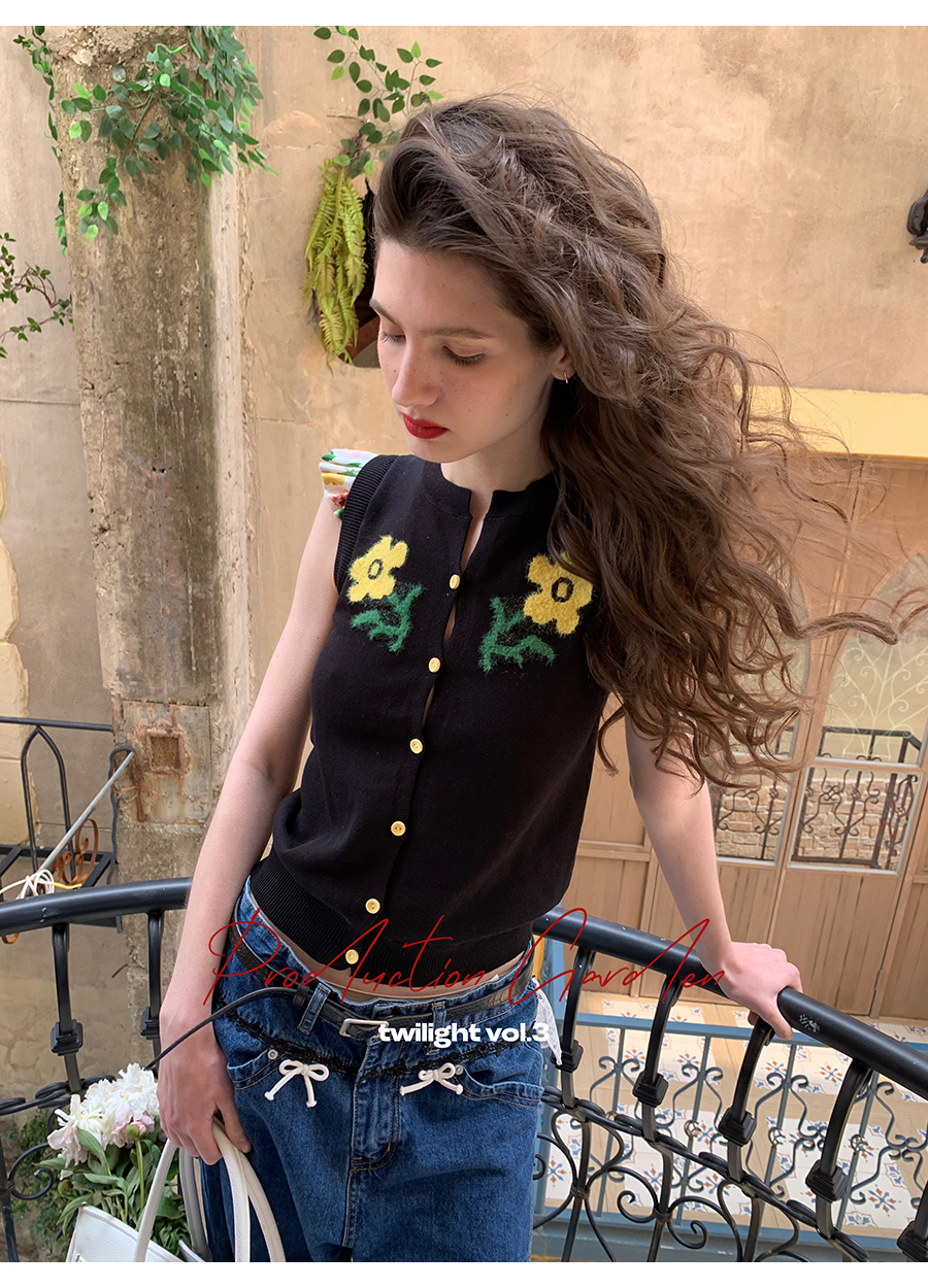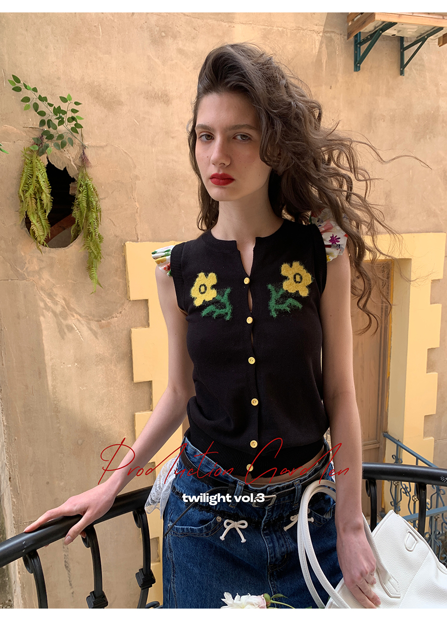 MORN colorful jacquard stitching flying sleeve knitted vest