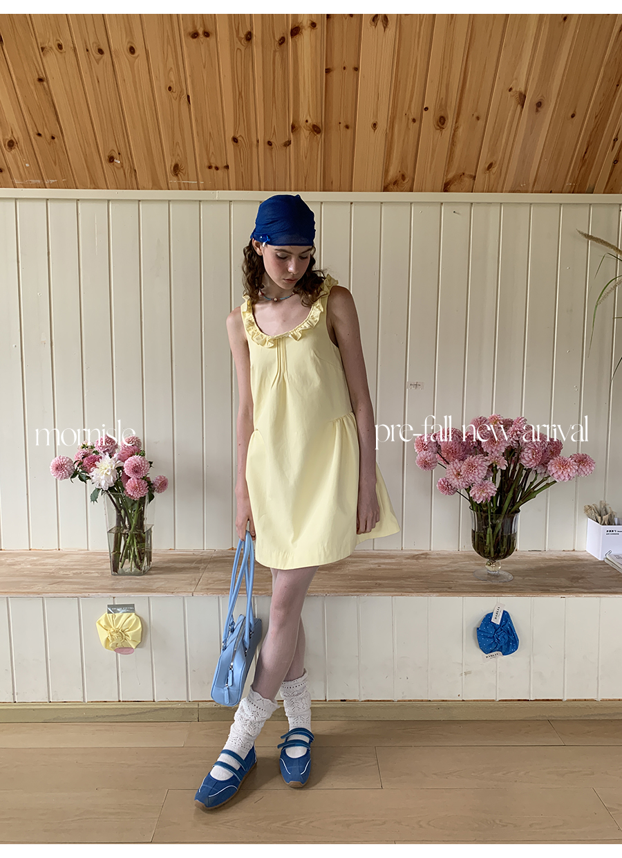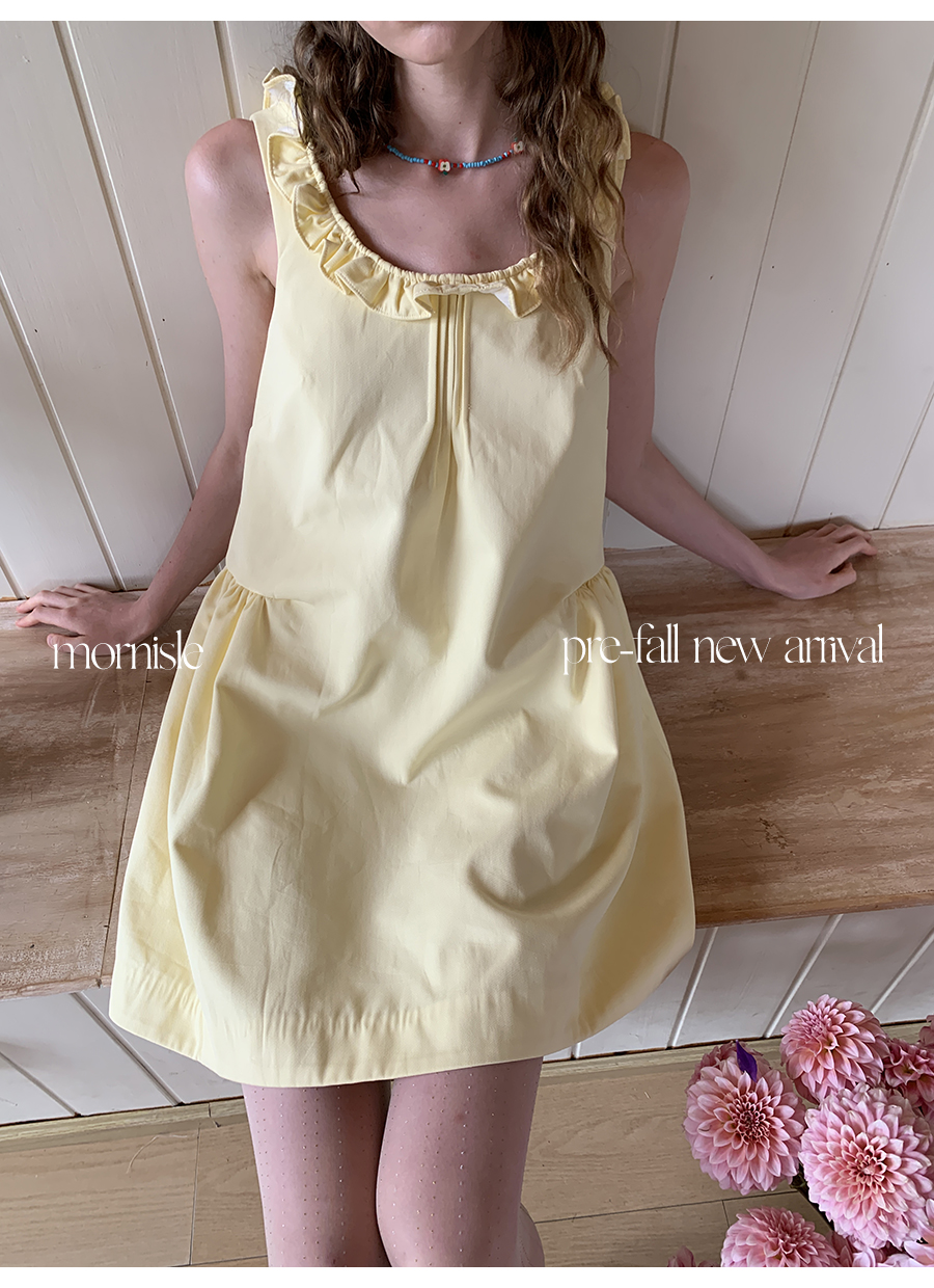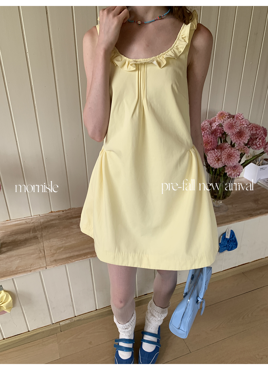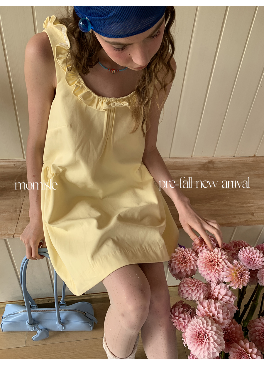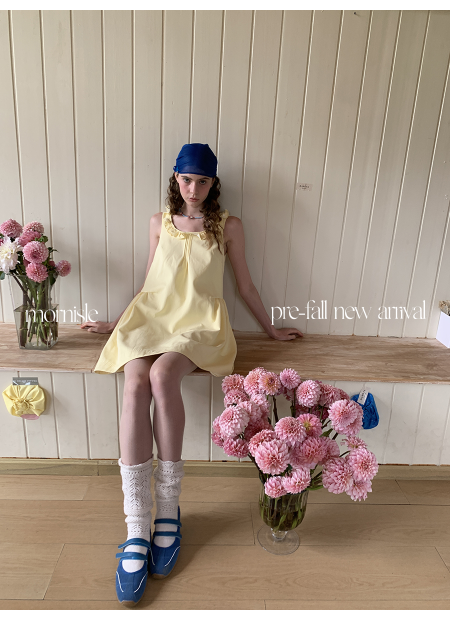 MORN French Teenage Wind U-neck Pleated Waist Dress