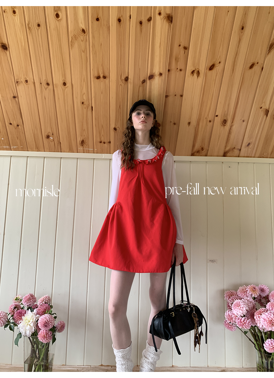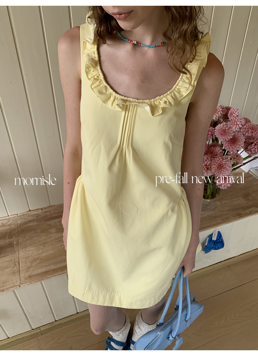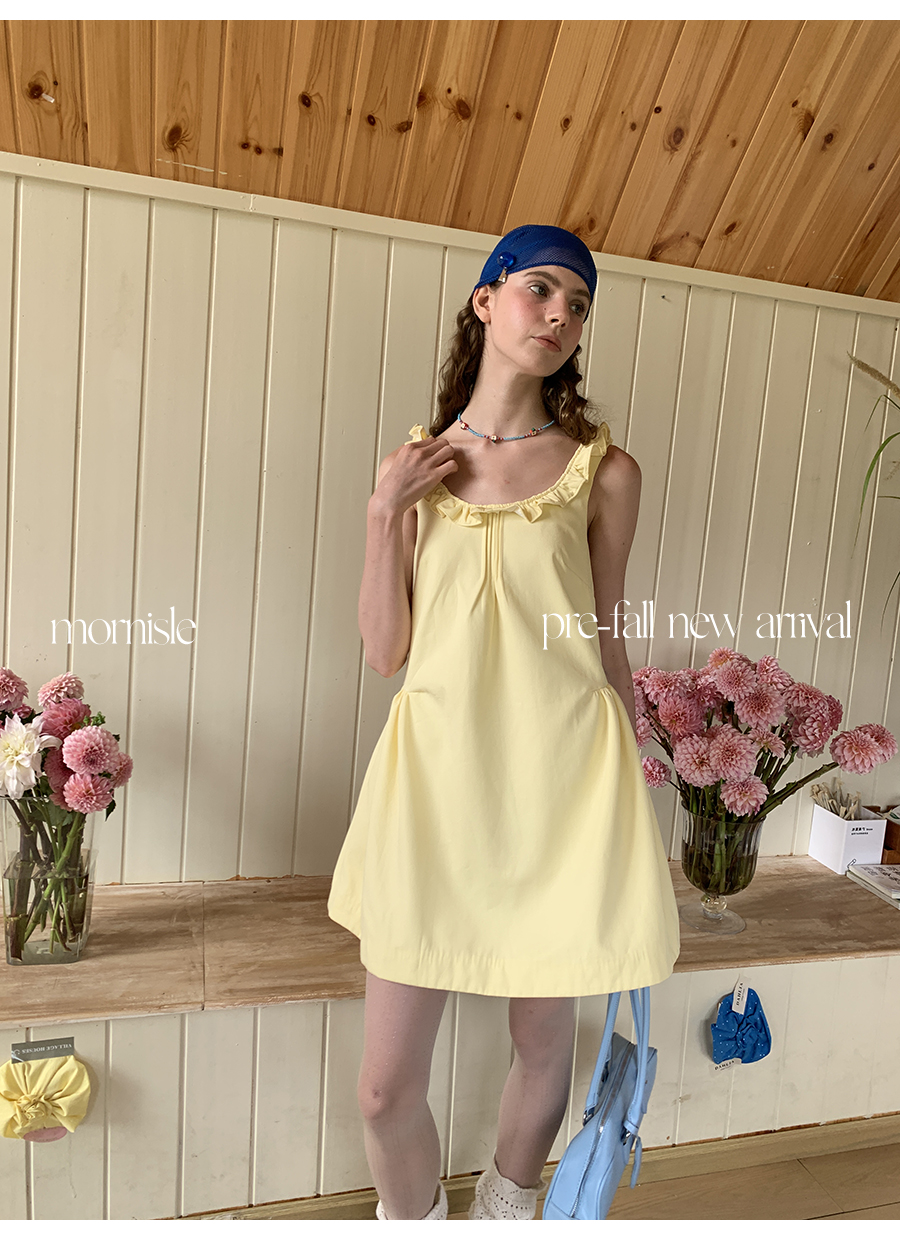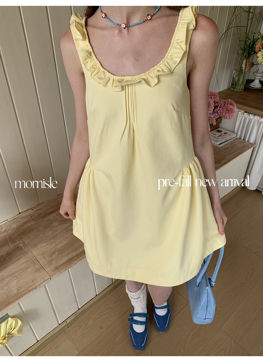 MORN French Teenage Wind U-neck Pleated Waist Dress