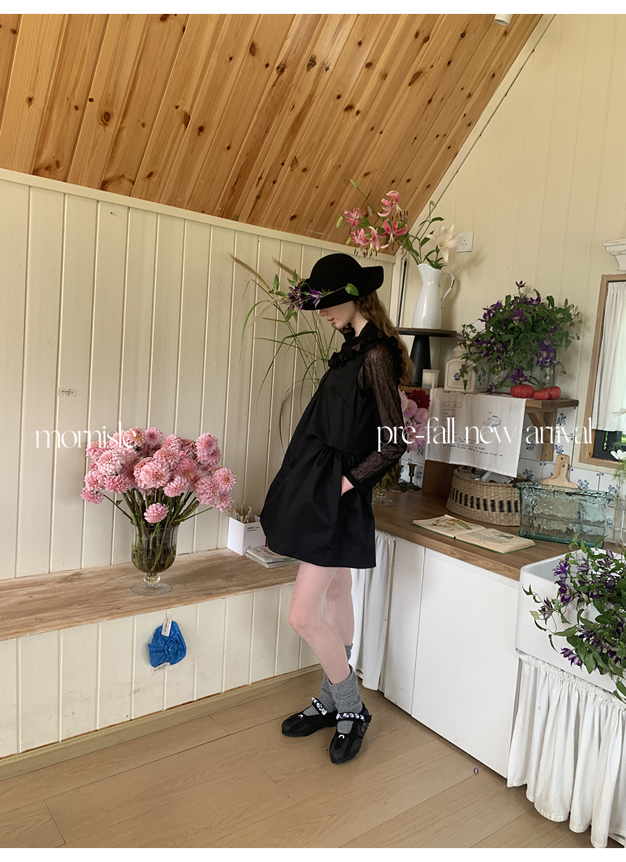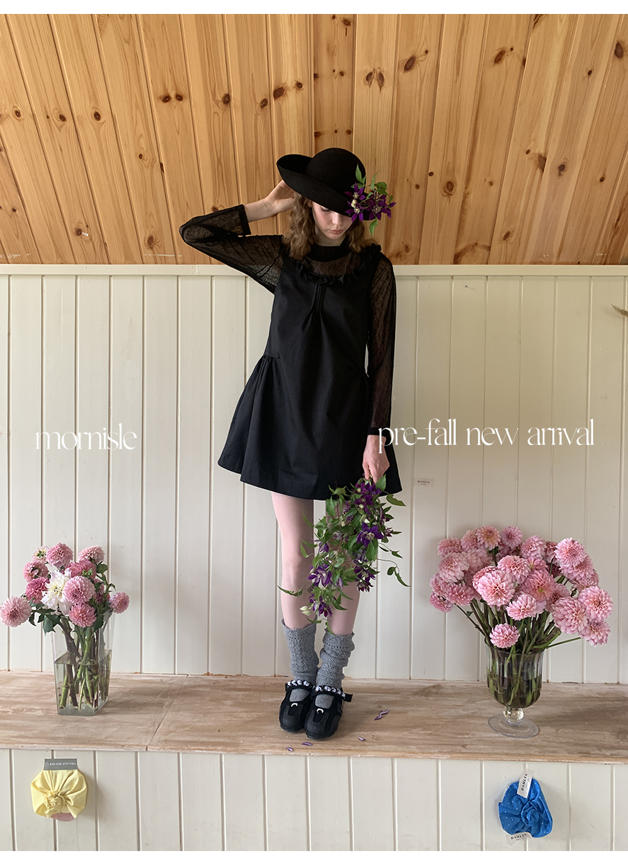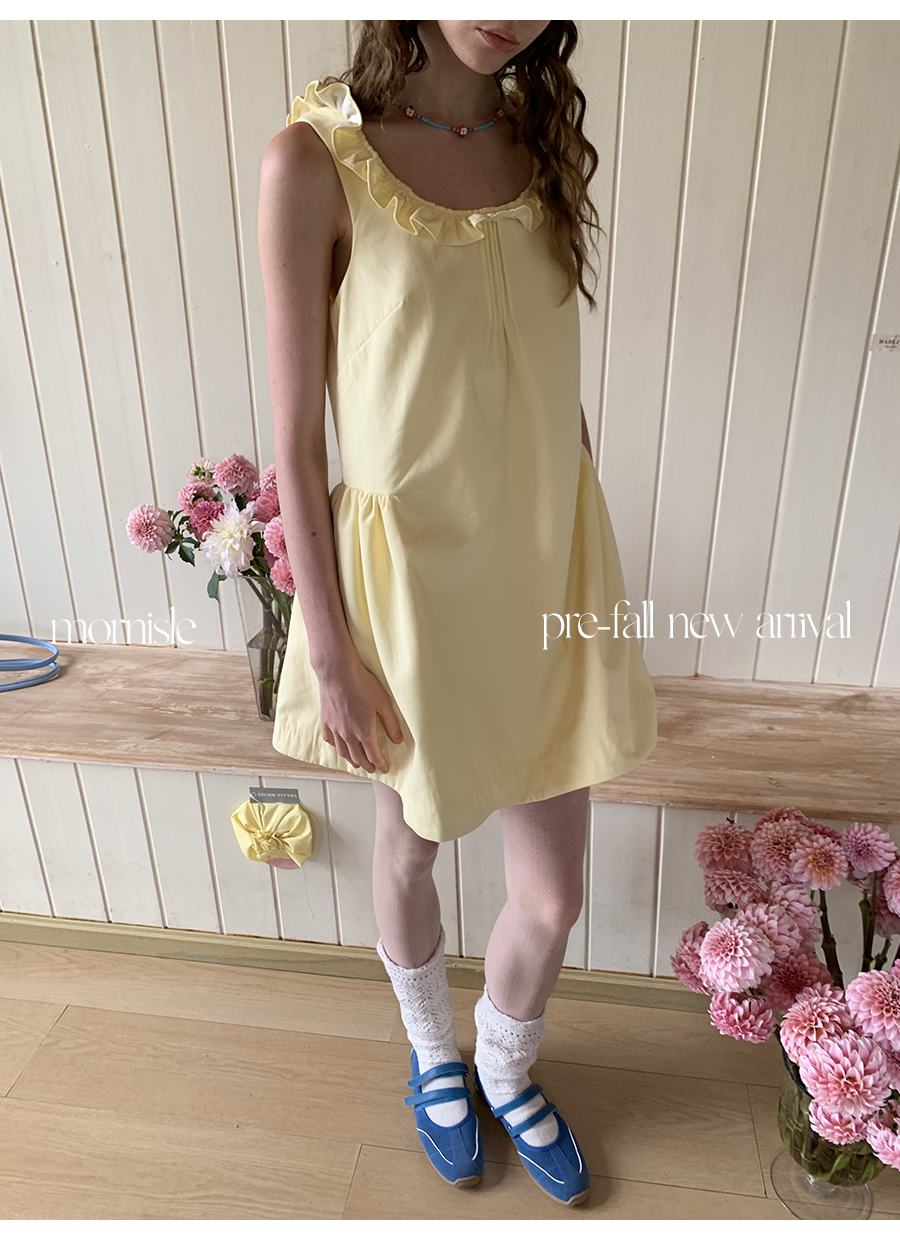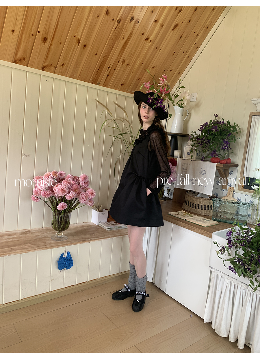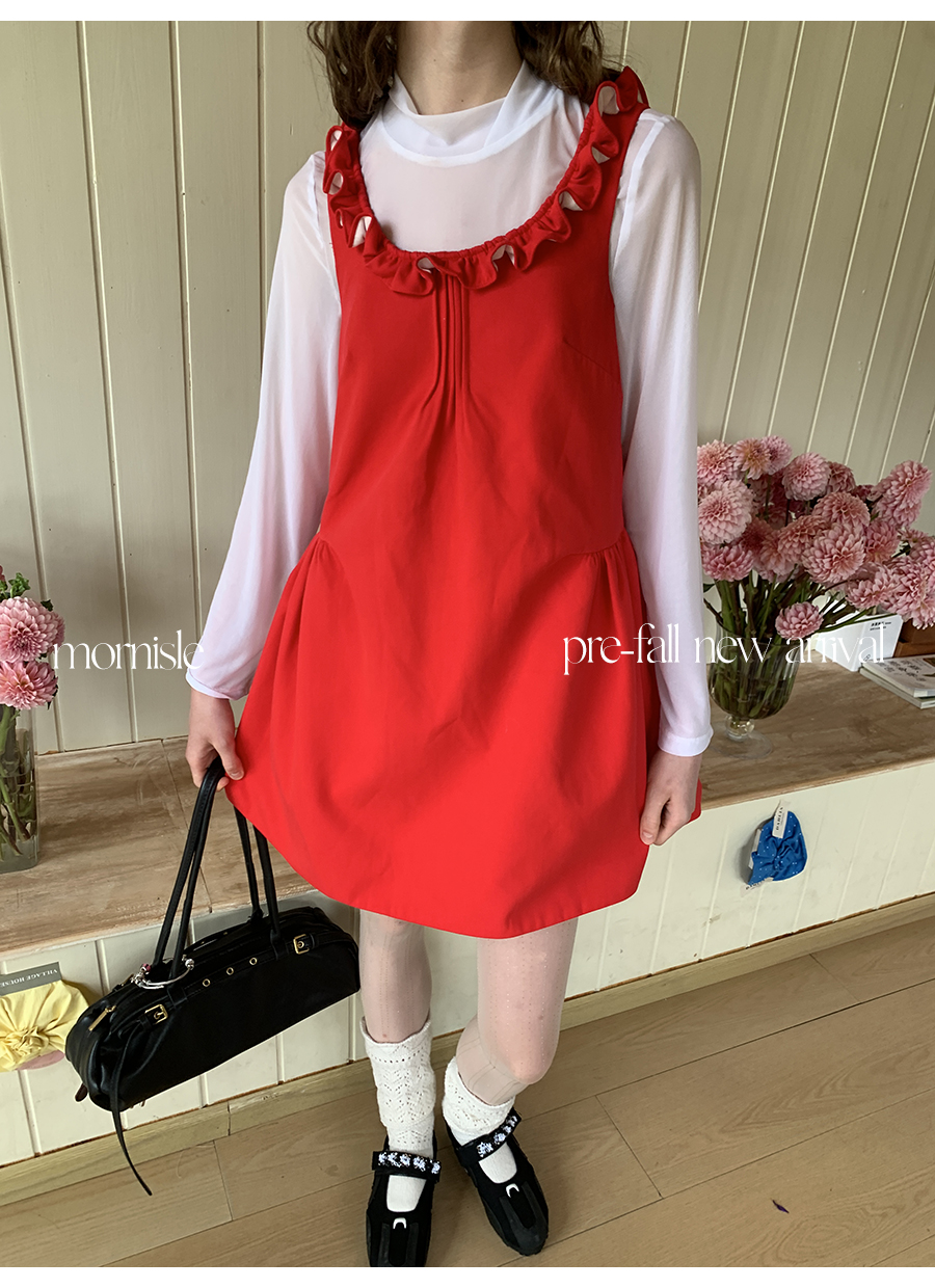 MORN French Teenage Wind U-neck Pleated Waist Dress