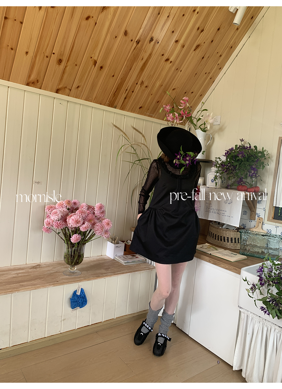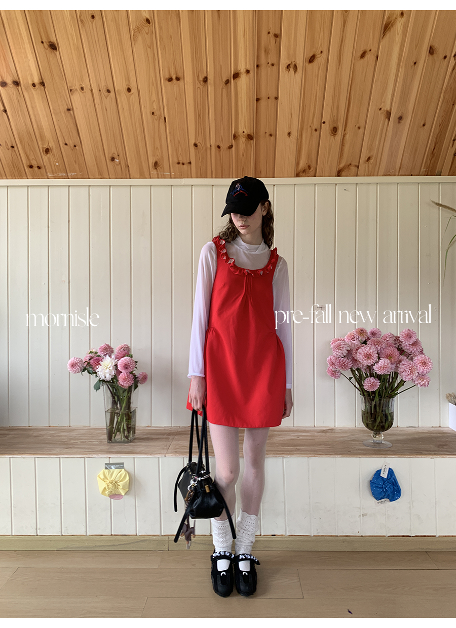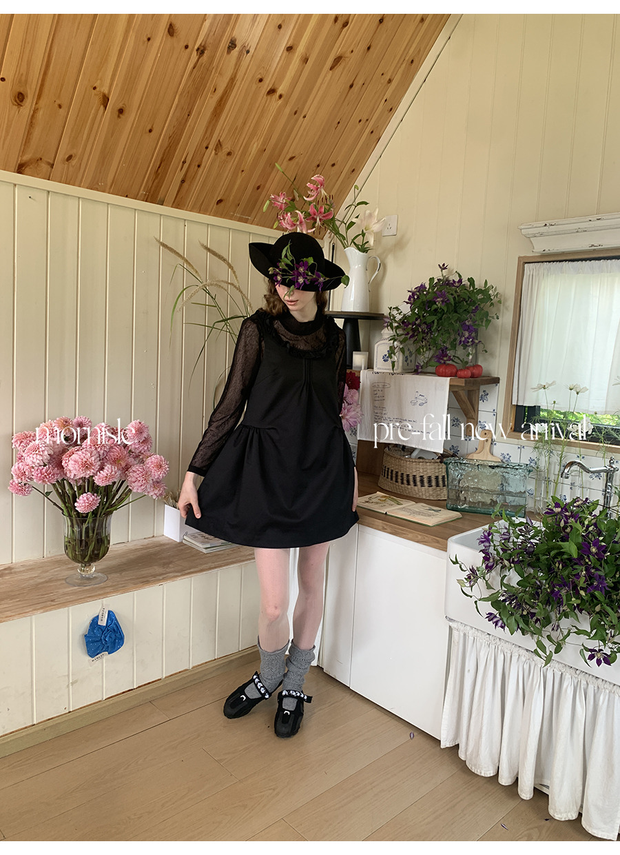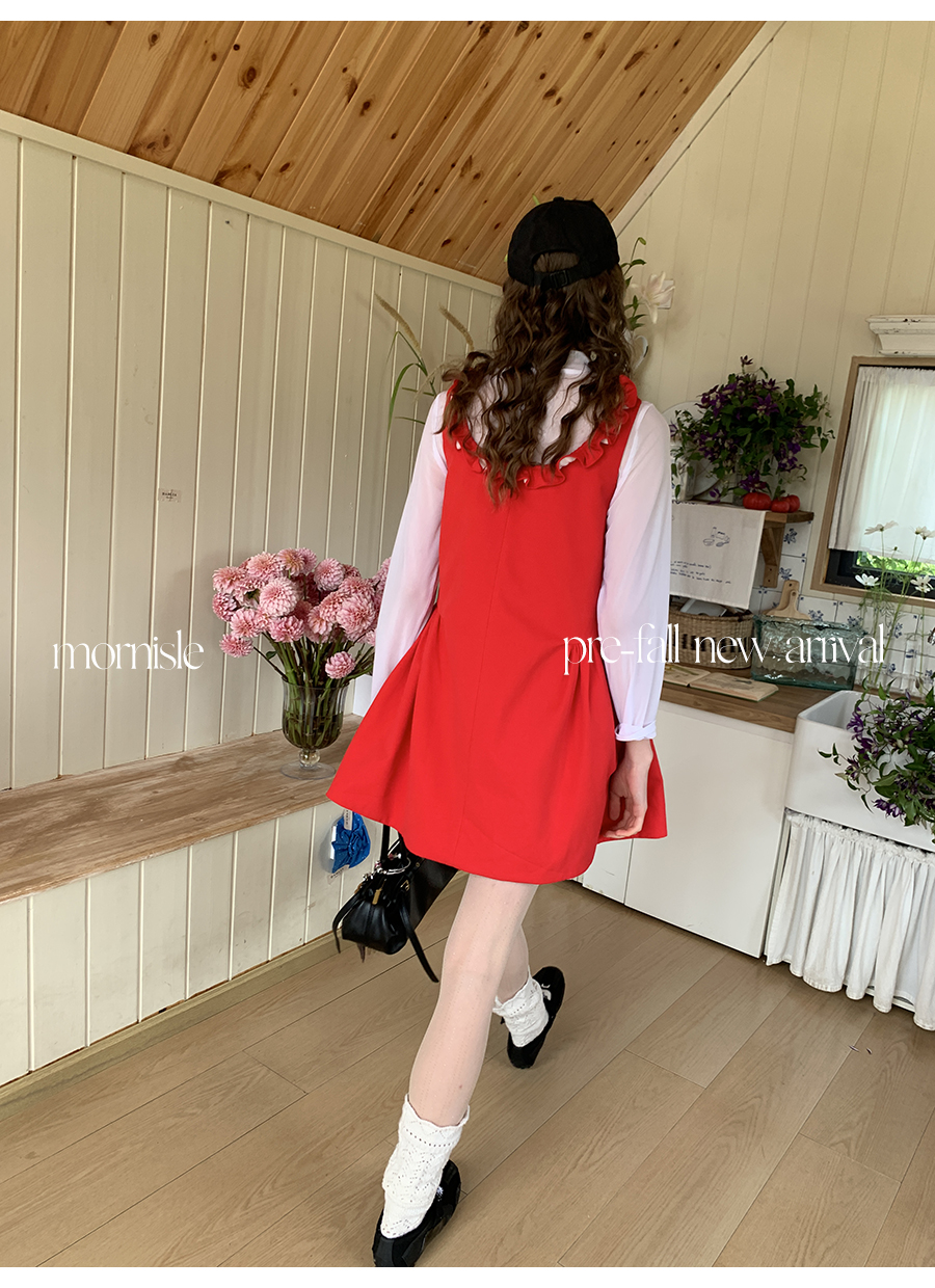 MORN French Teenage Wind U-neck Pleated Waist Dress