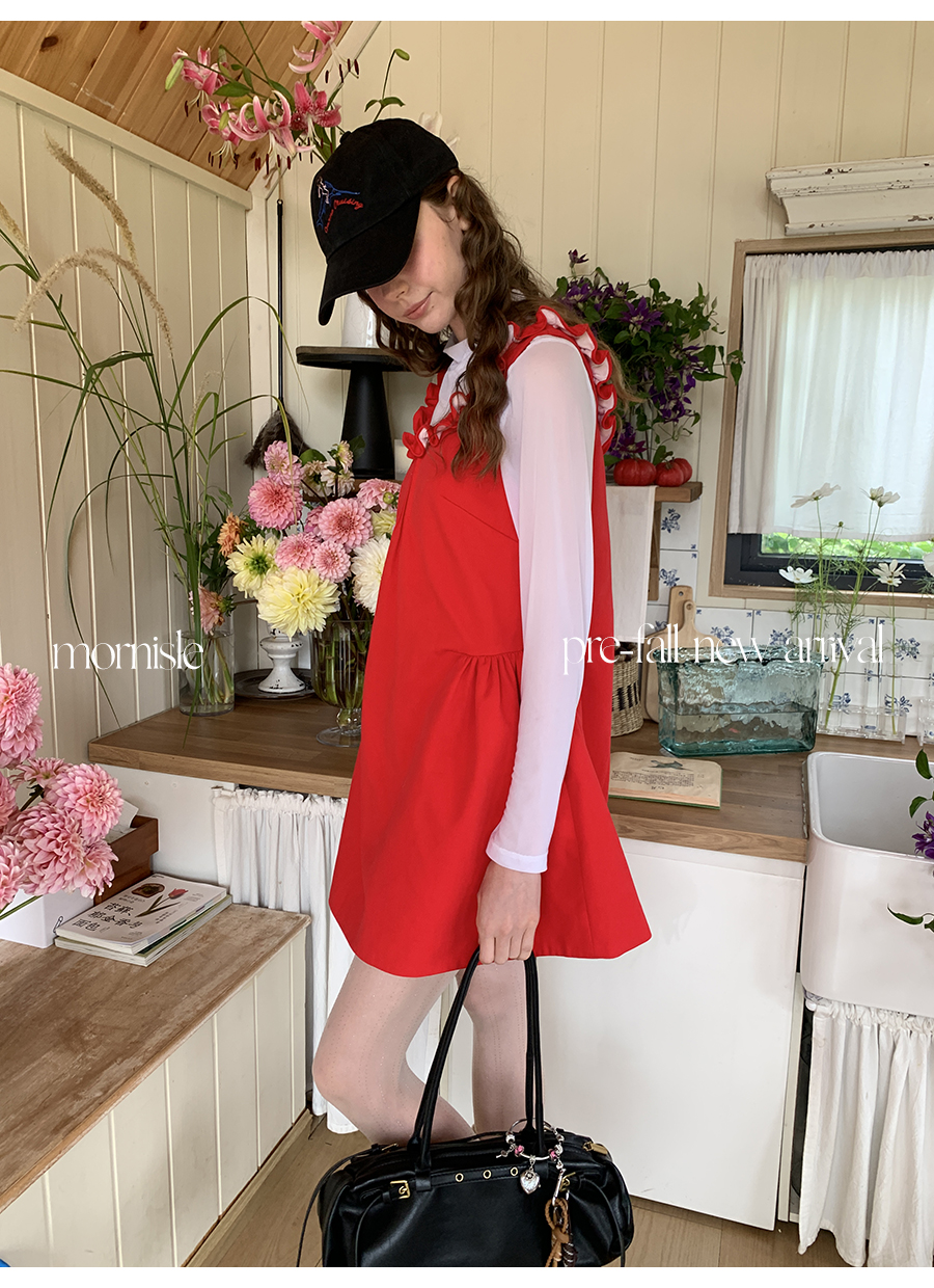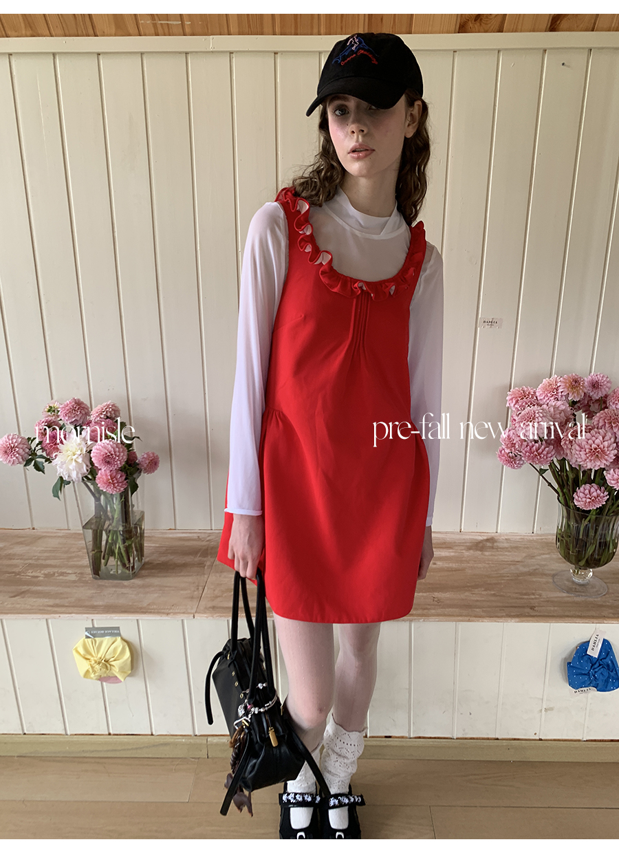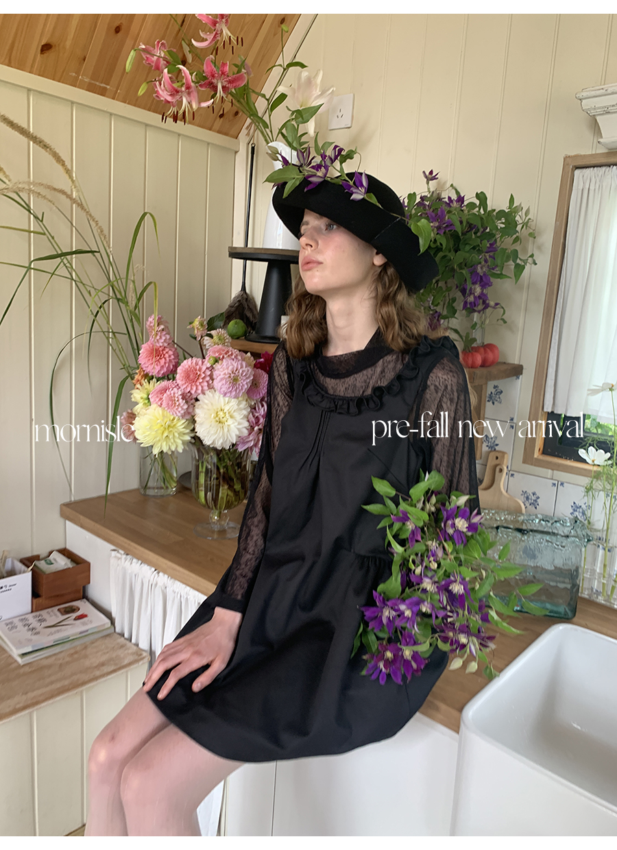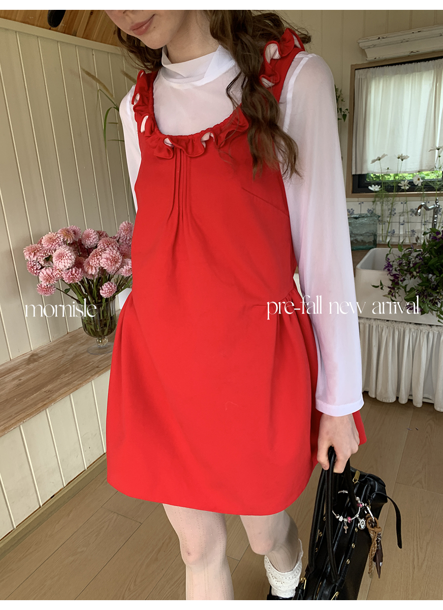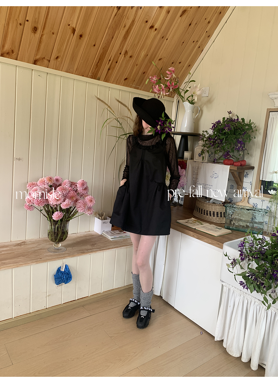 MORN French Teenage Wind U-neck Pleated Waist Dress
