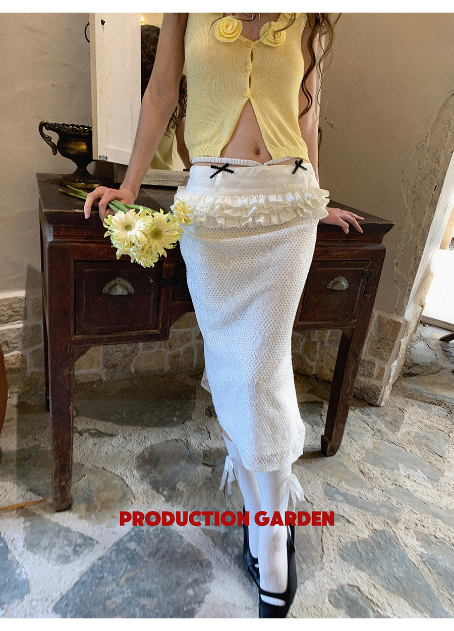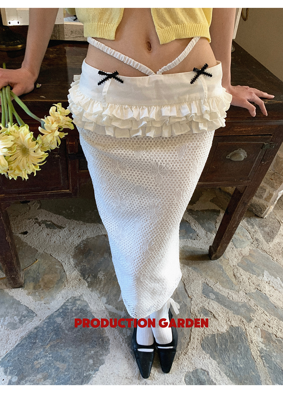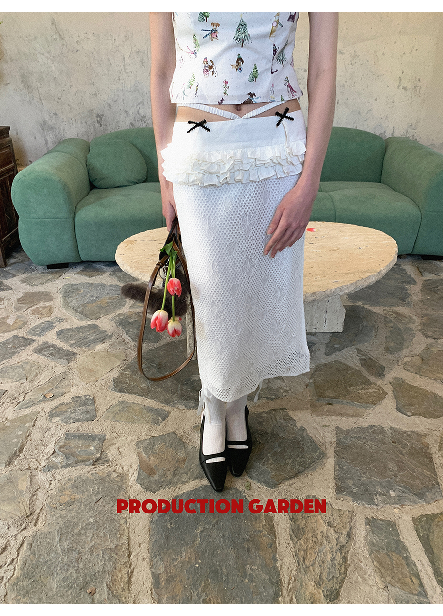 MORN French romantic lace embroidery hollow waist-side split skirt