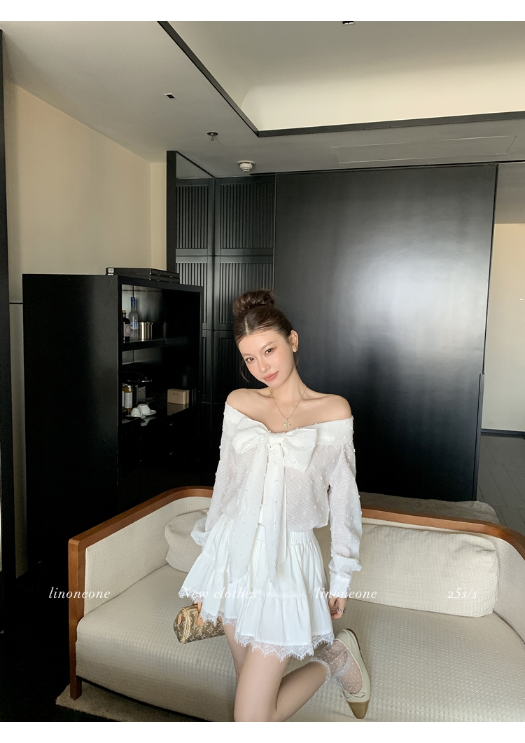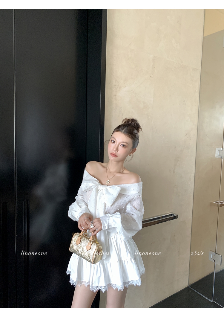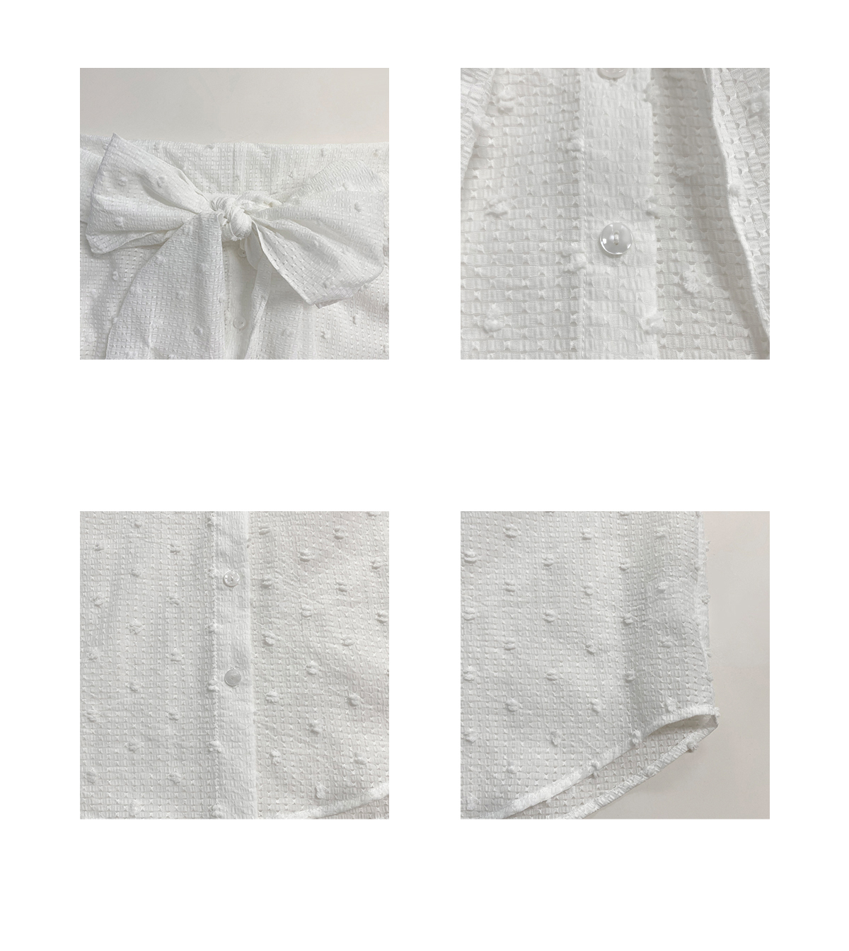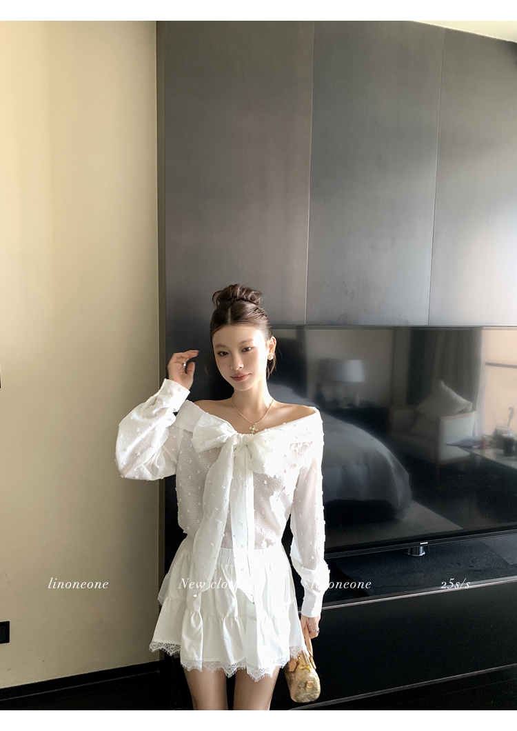 LIN Alice French One-shoulder Textured Bow Tie Shirt