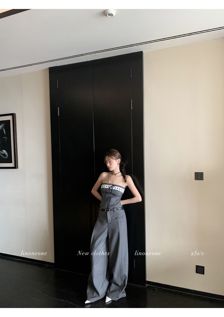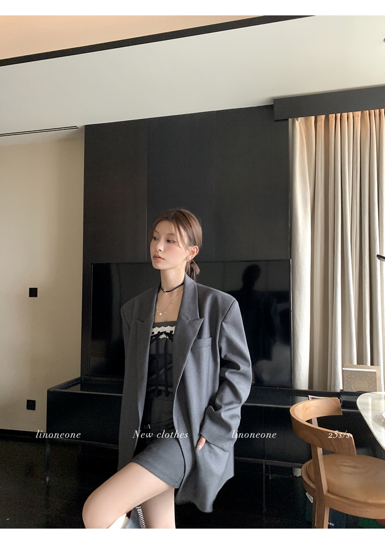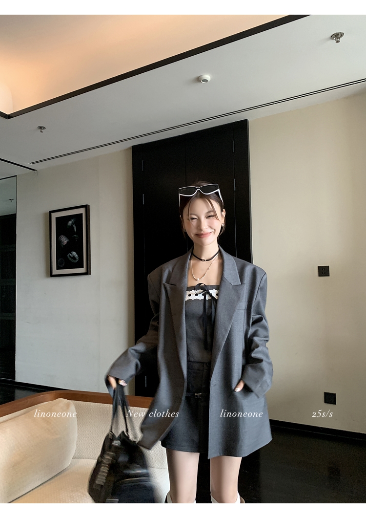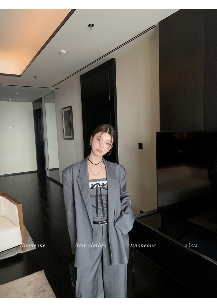 LIN gray loose suit jacket tube top skirt trousers sister sense set