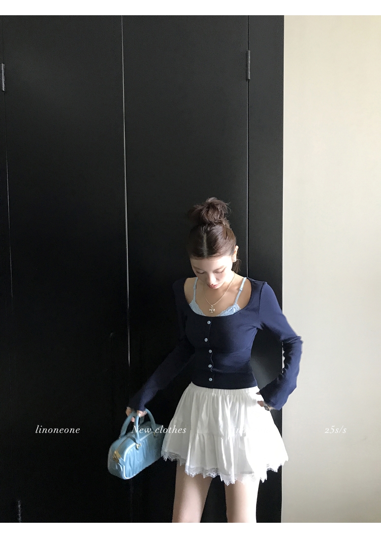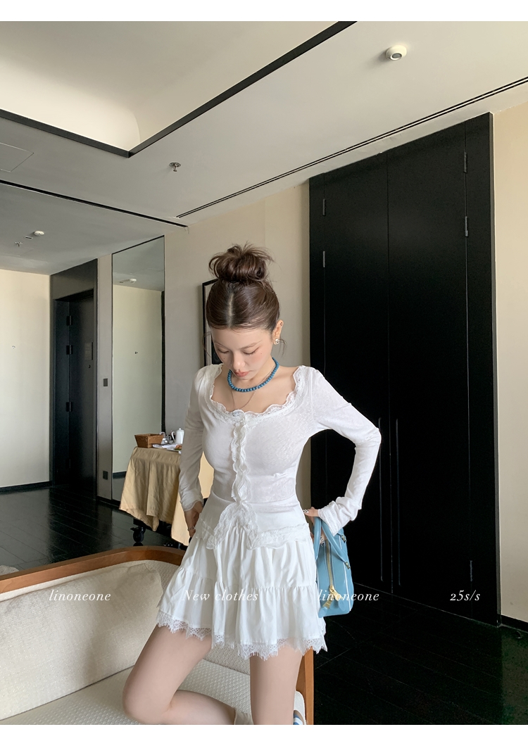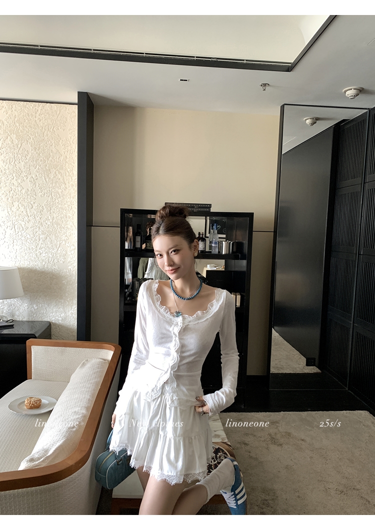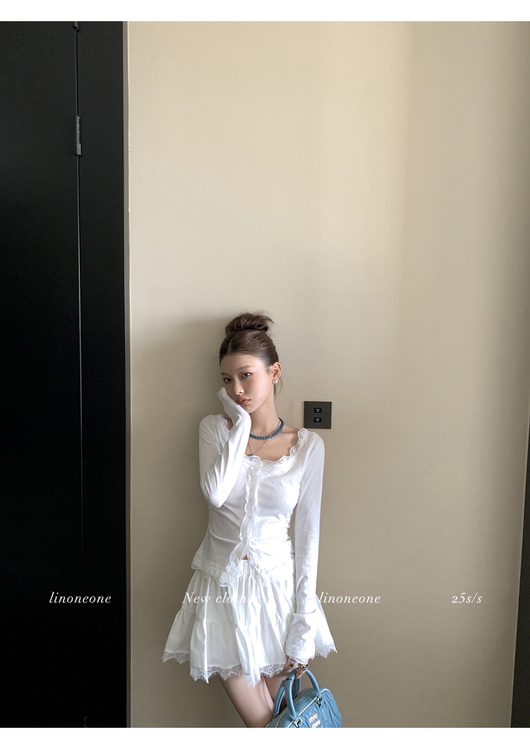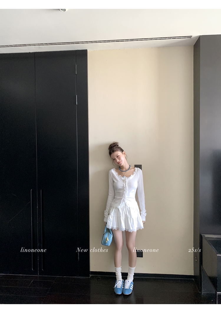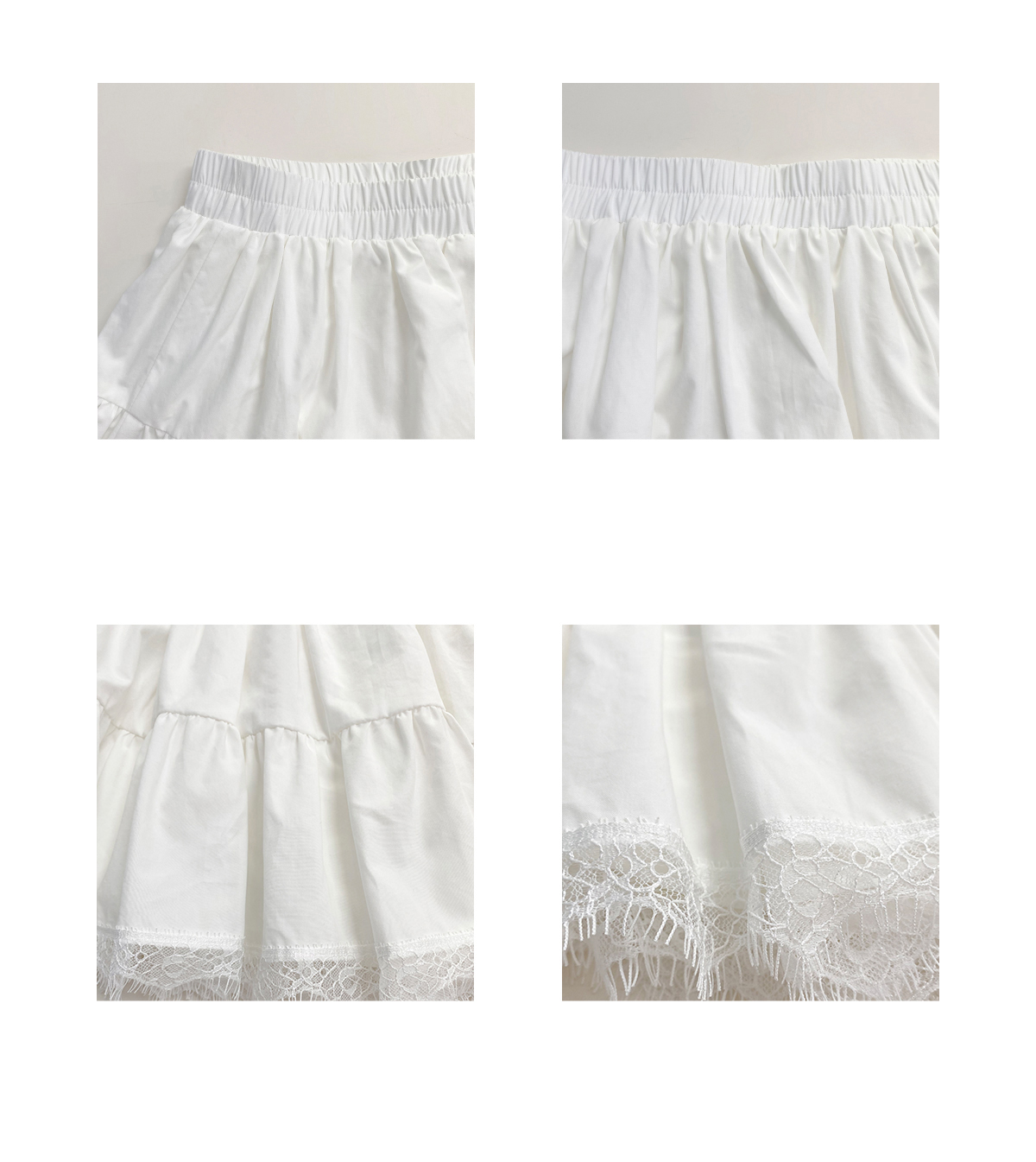 LIN Bubble Lily Tencel White Lace Elastic Waist Ballet Cake Skirt