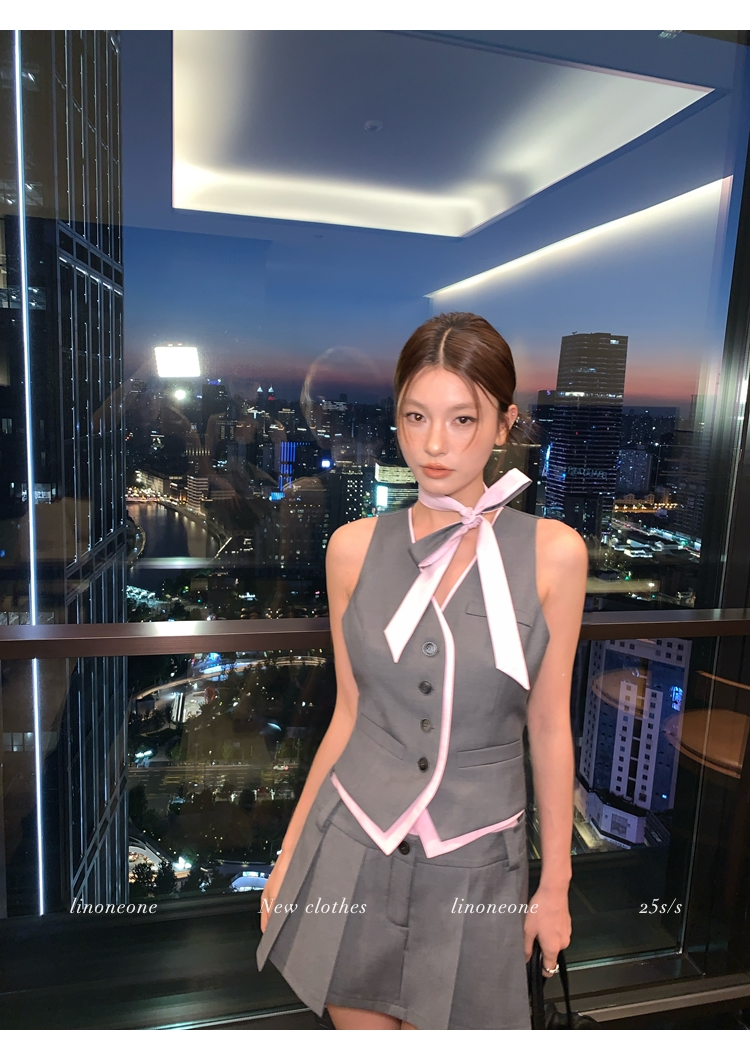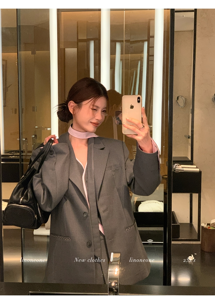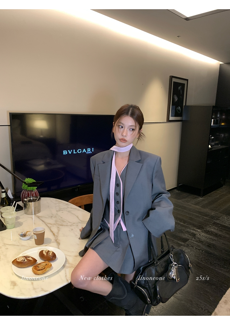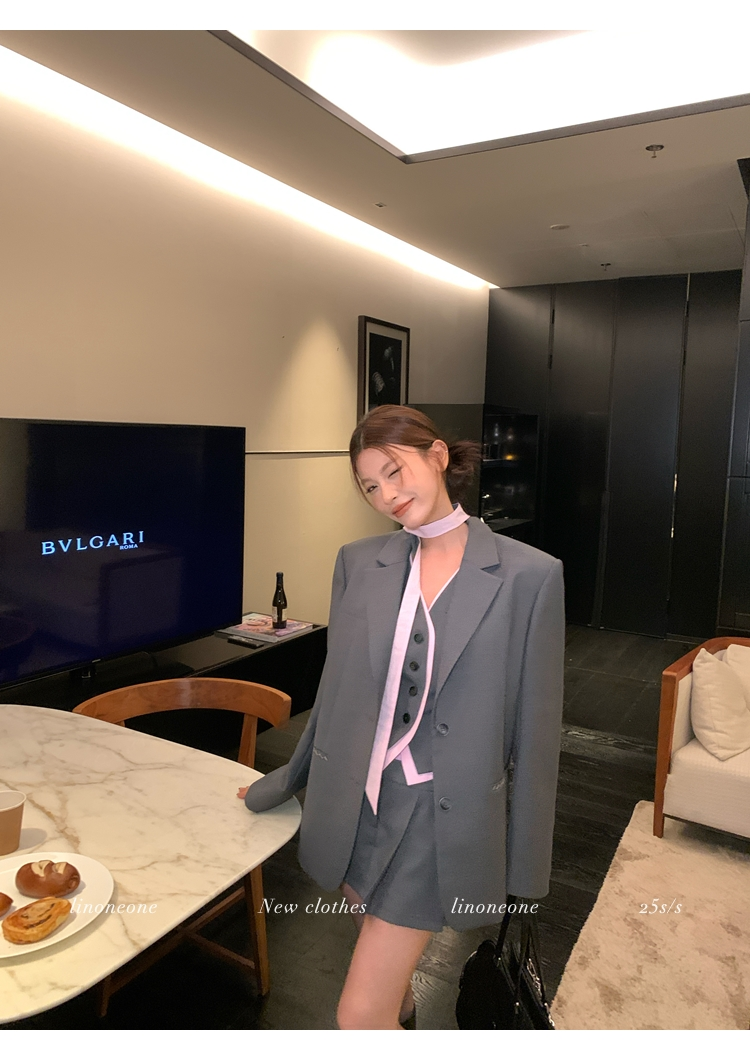 LIN Monica gray loose jacket patchwork pink suit vest skirt
