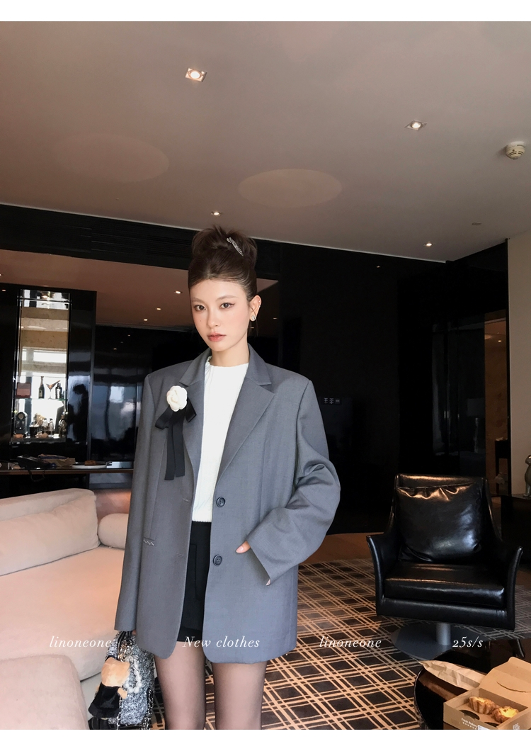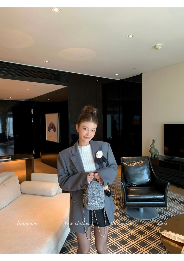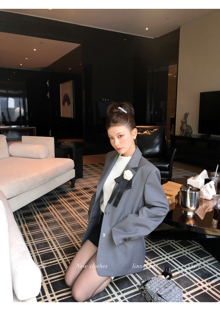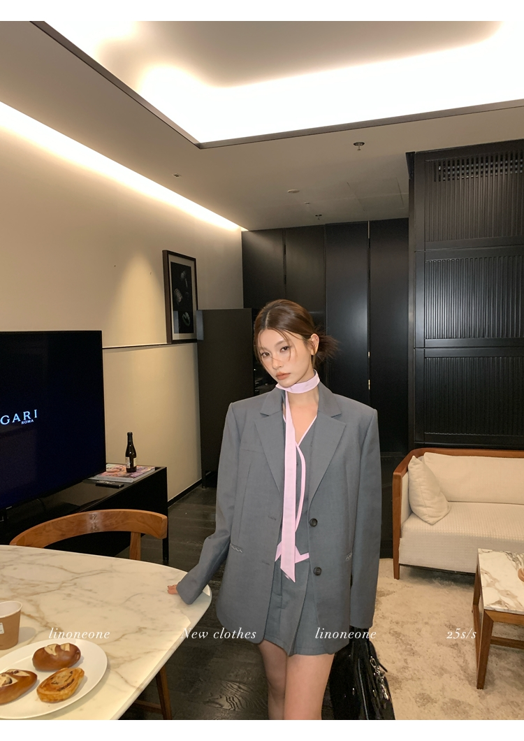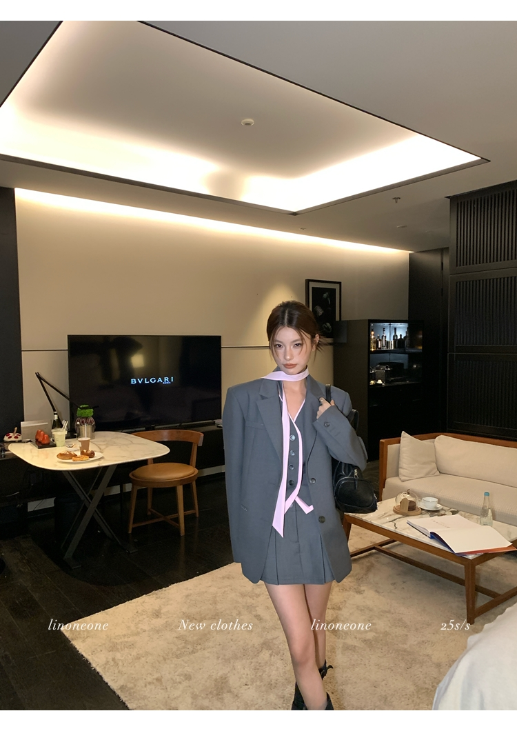 LIN Monica gray loose jacket patchwork pink suit vest skirt