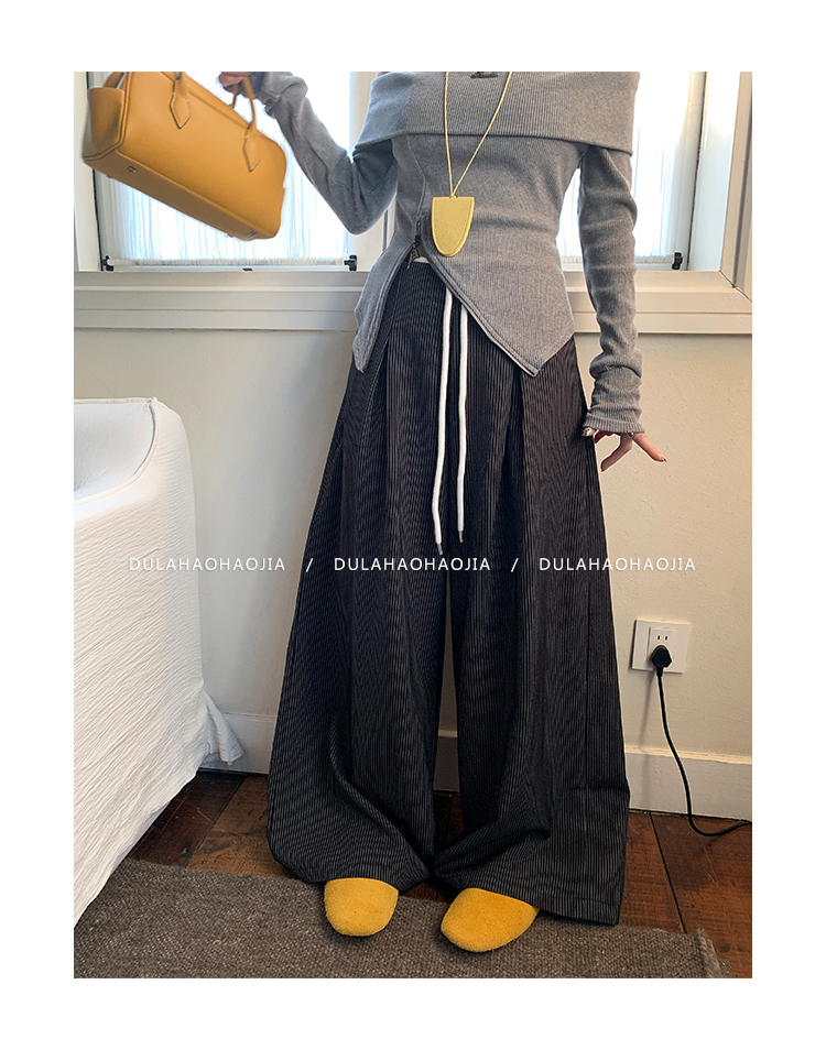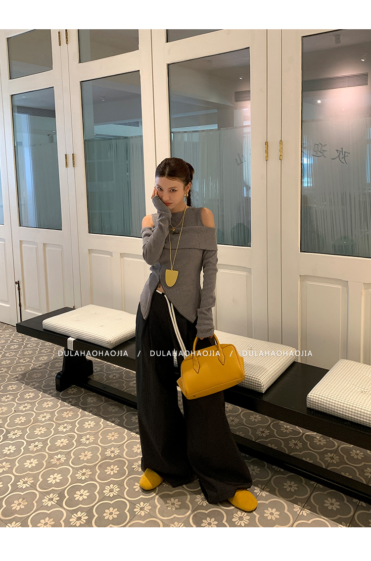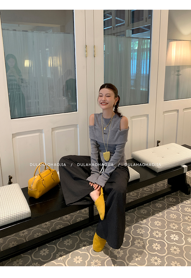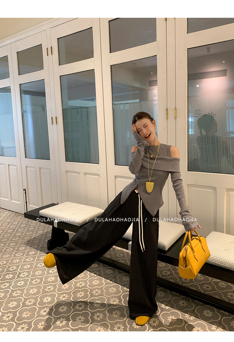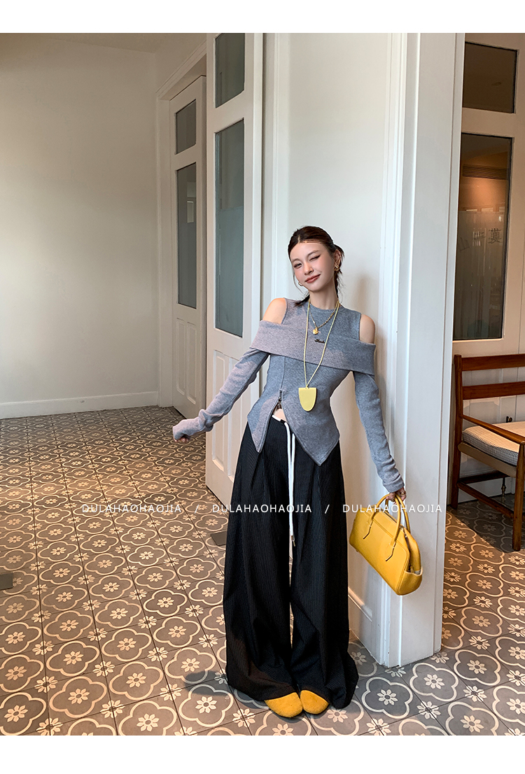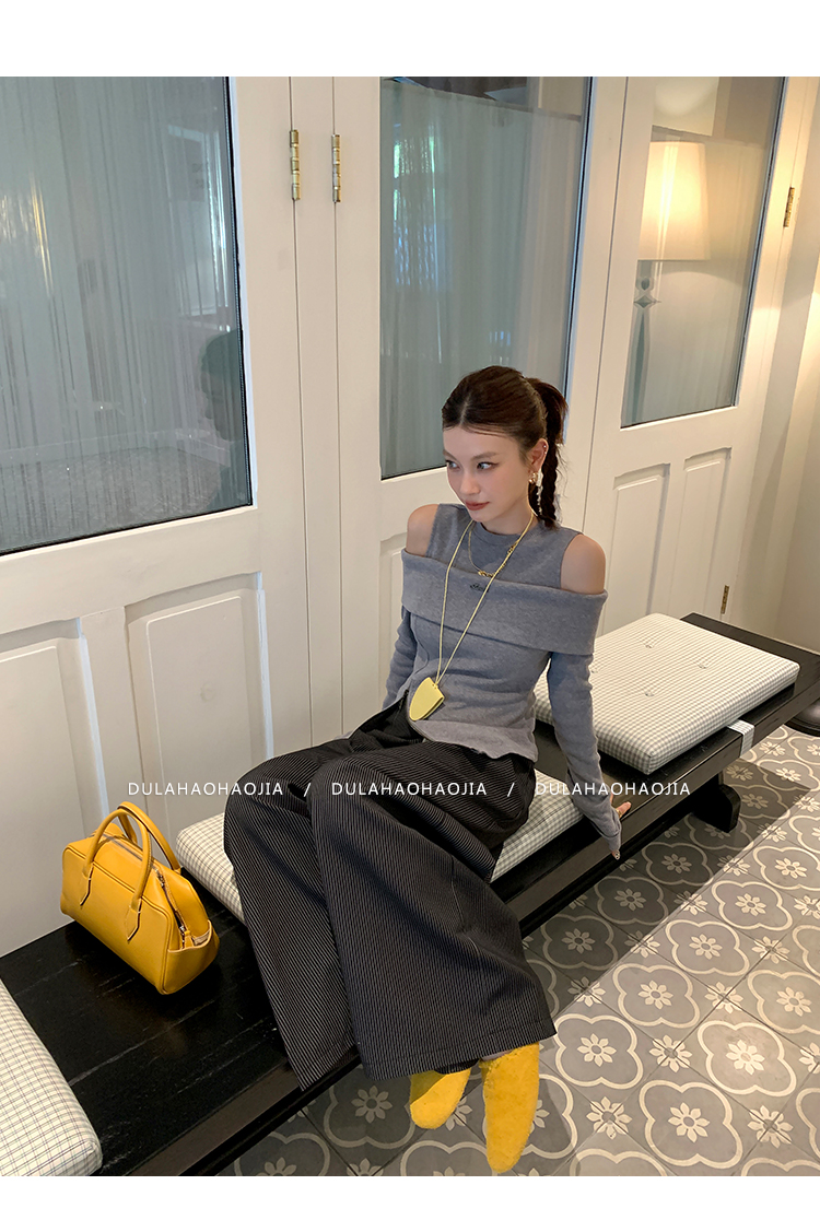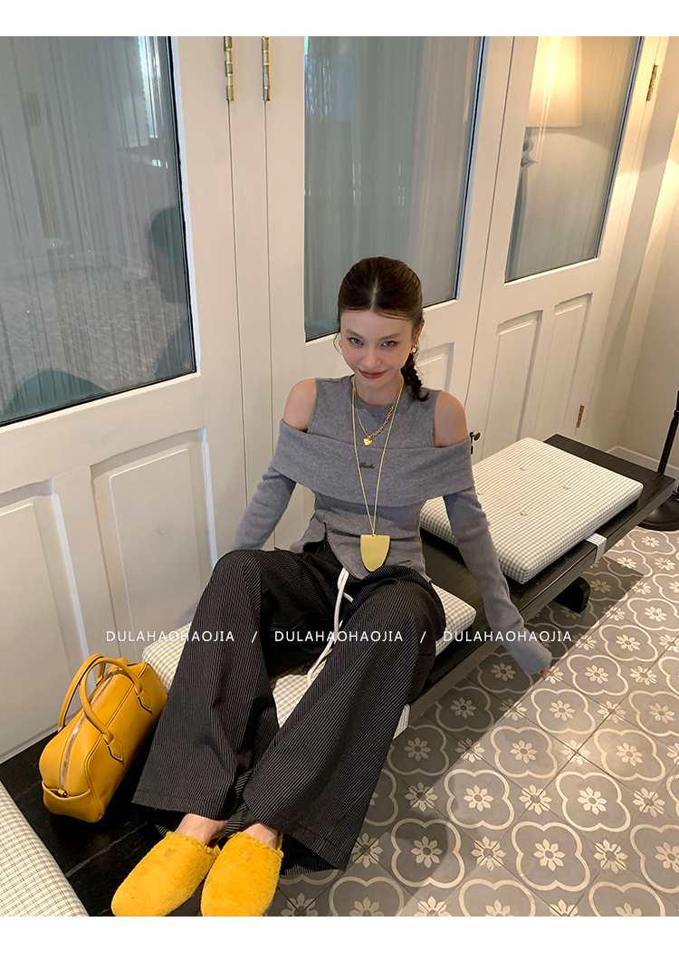DULA Designed striped slim-fit off-the-shoulder split T-shirt