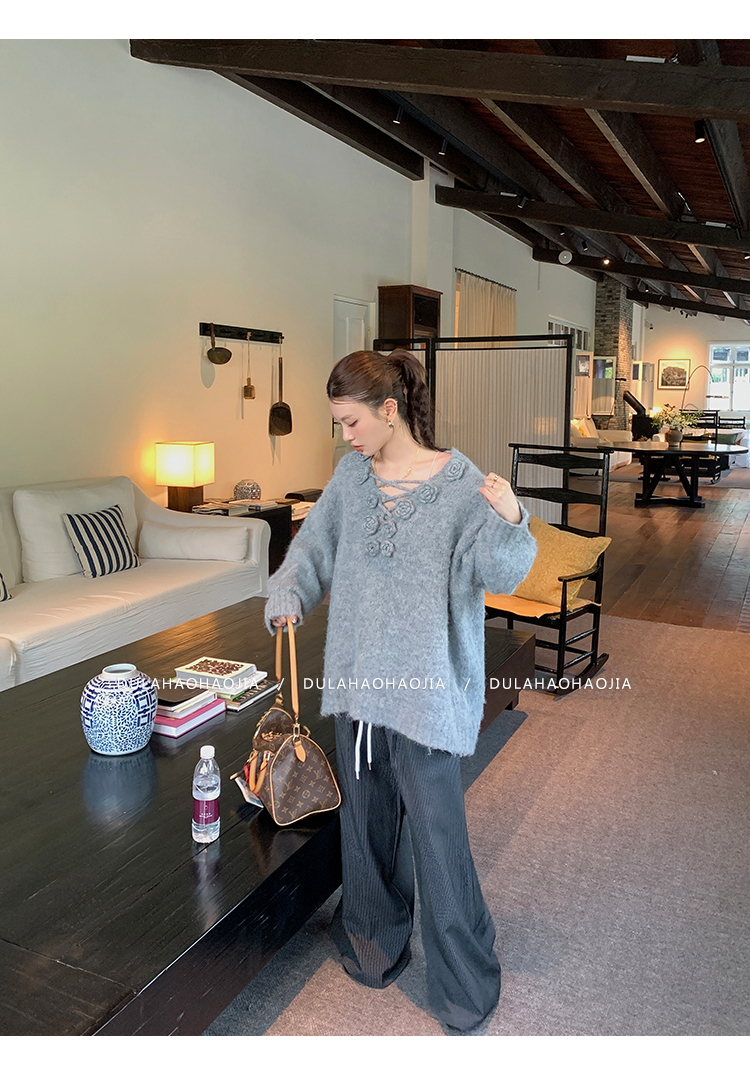 DULA striped wide-leg suit drawstrings pants