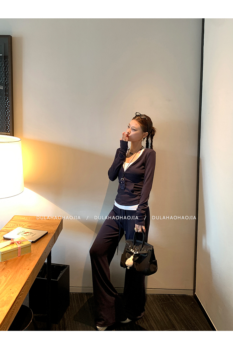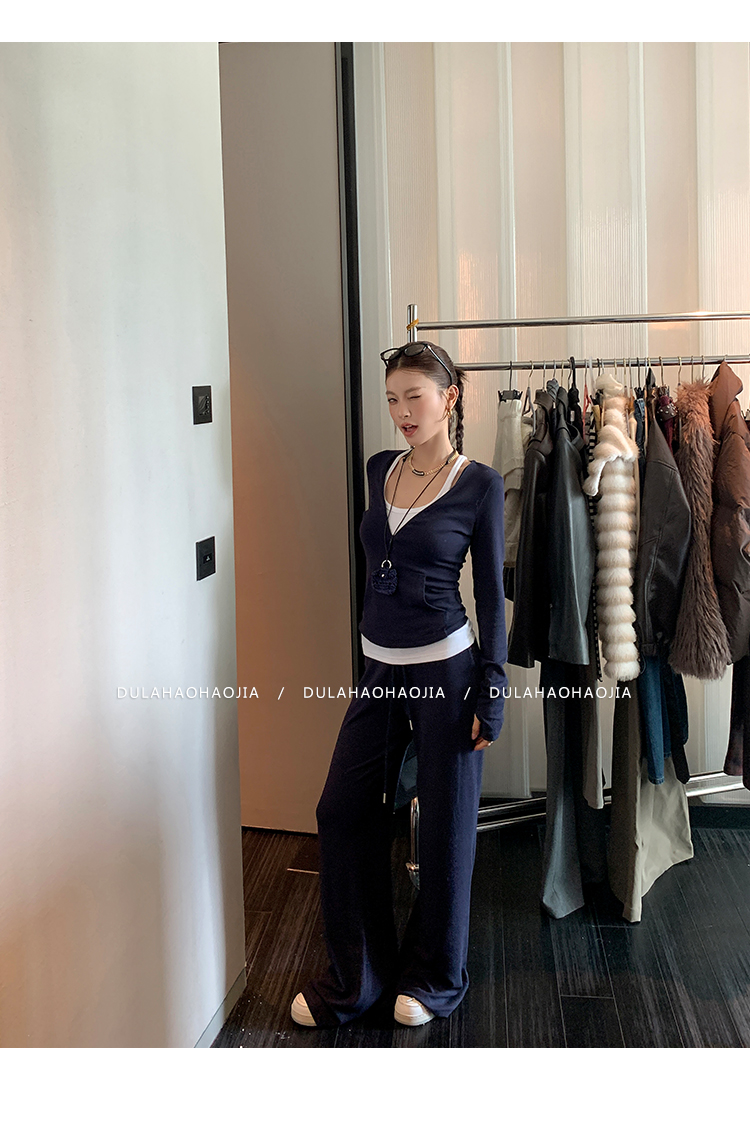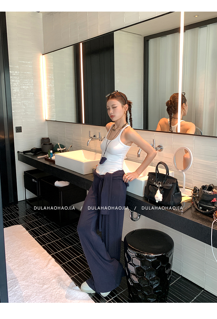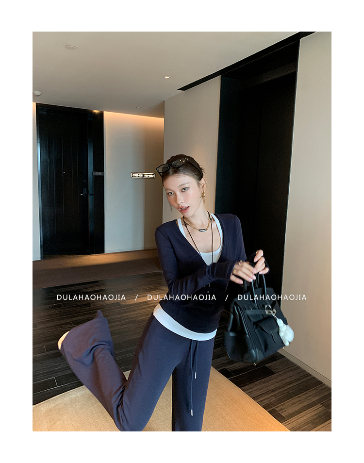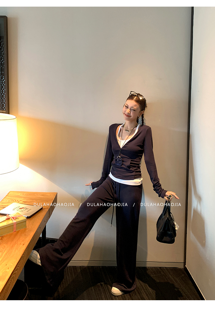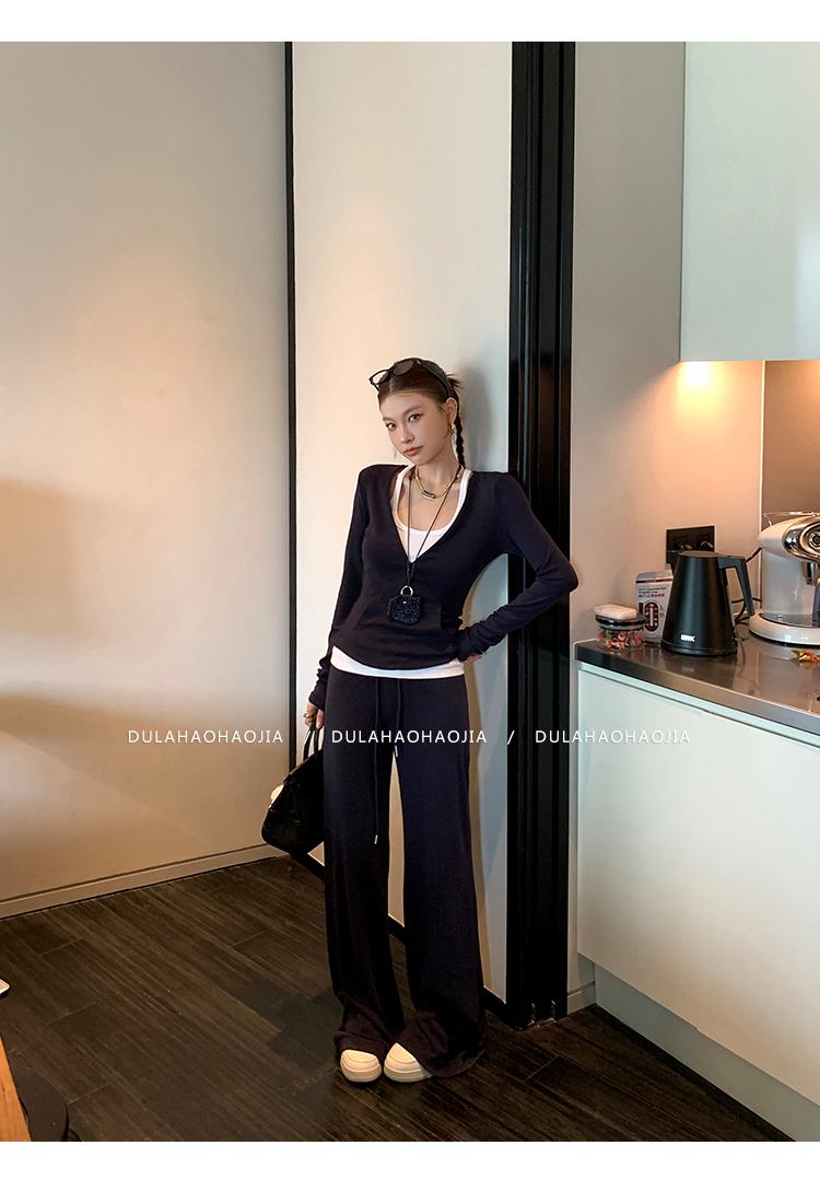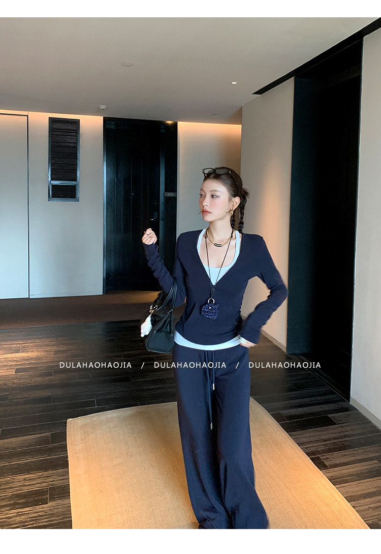 DULA V-neck T-shirt + vest + wide-leg pants three-piece set