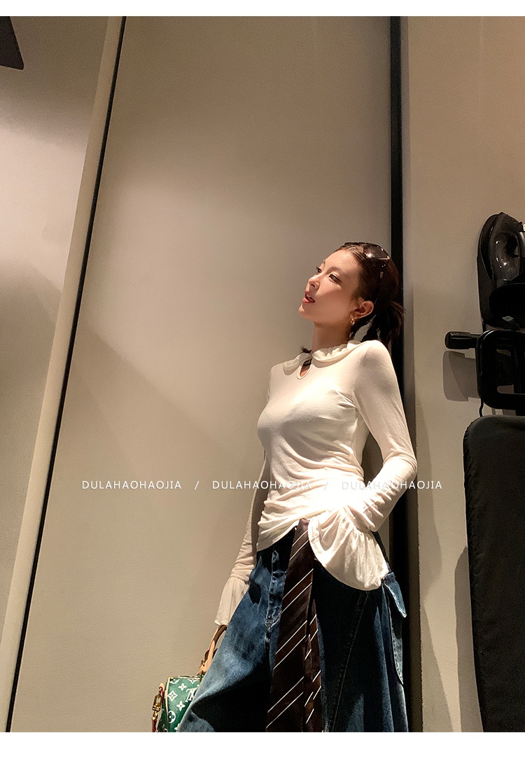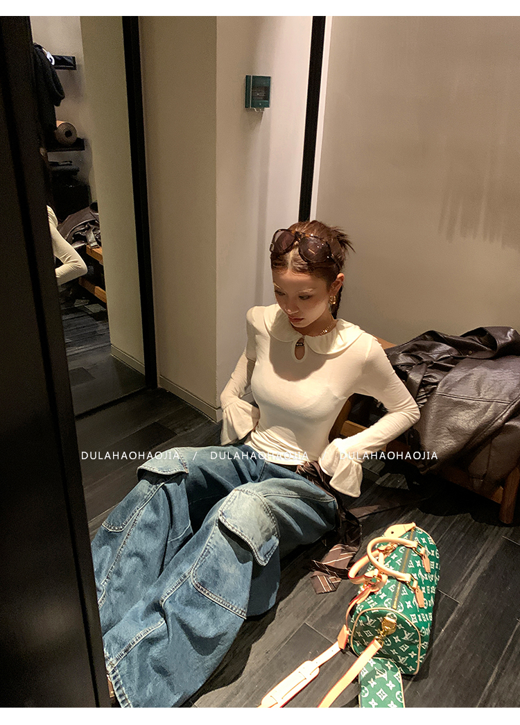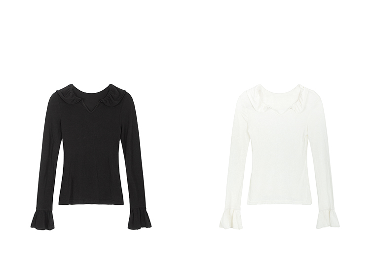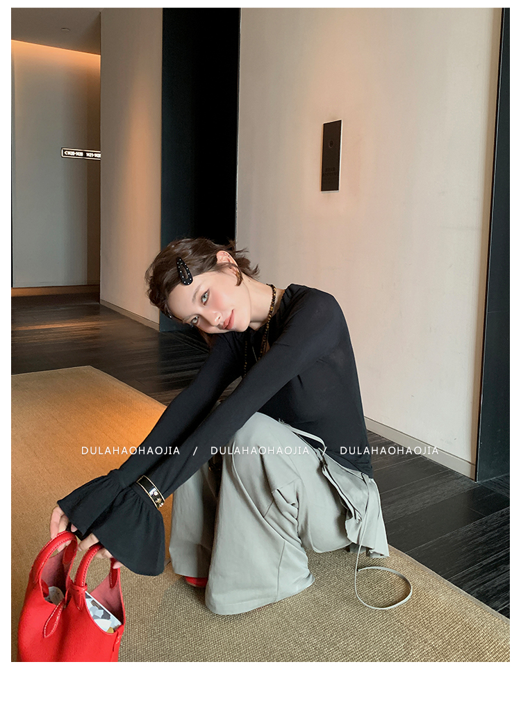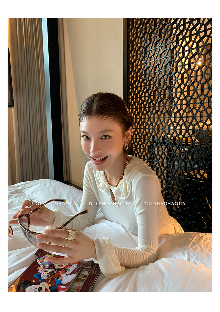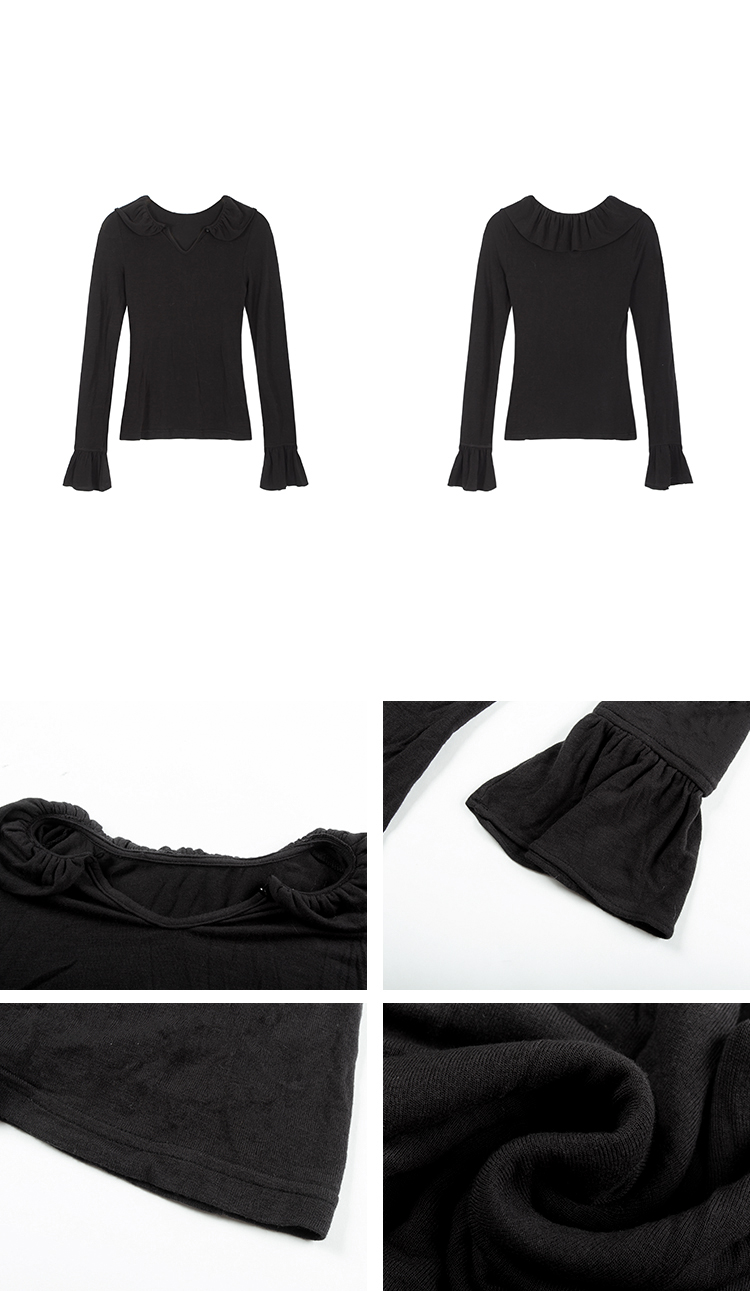 DULA doll collar slim bottoming shirt trumpet sleeve T-shirt