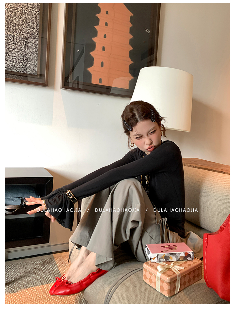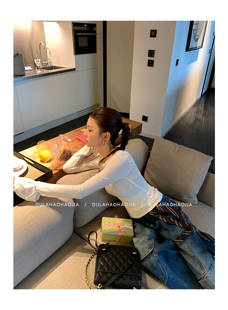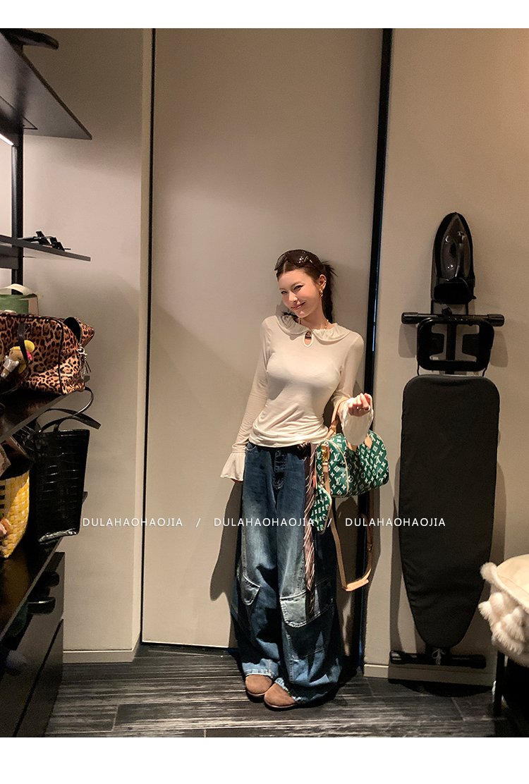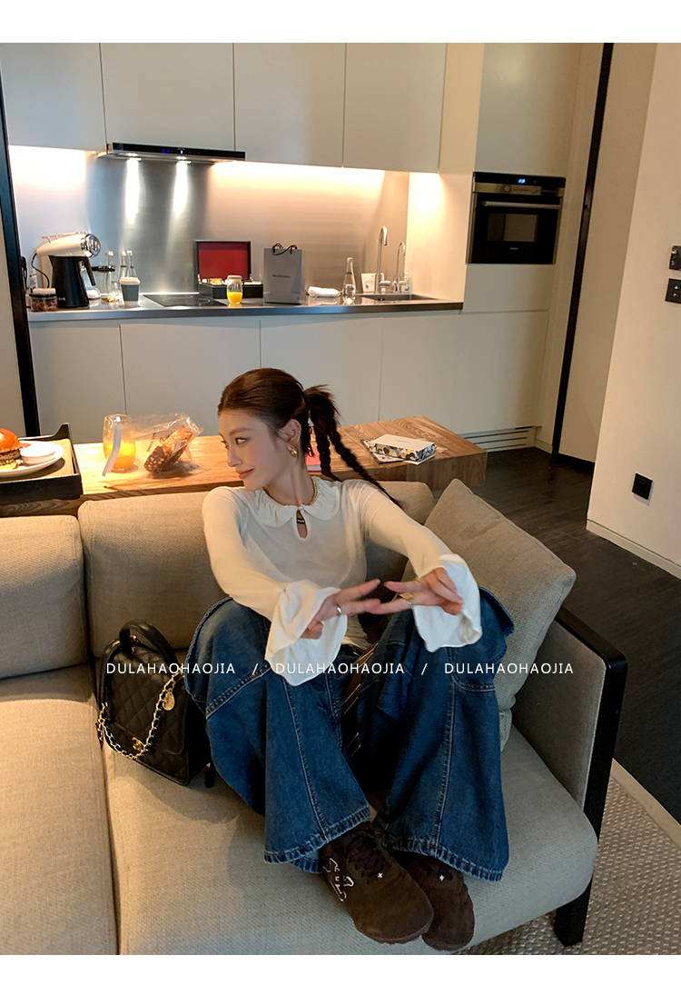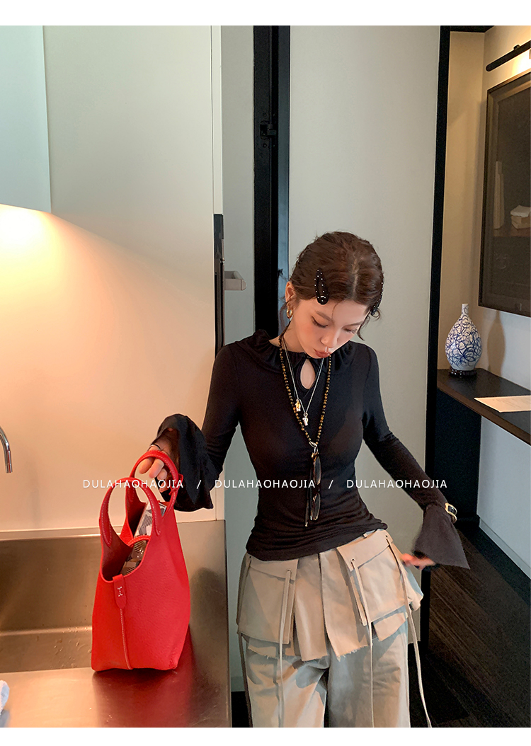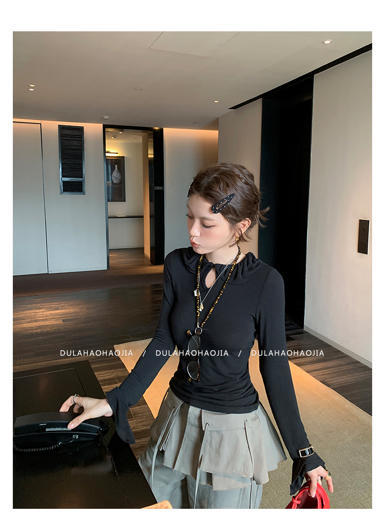 DULA doll collar slim bottoming shirt trumpet sleeve T-shirt