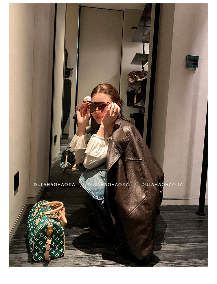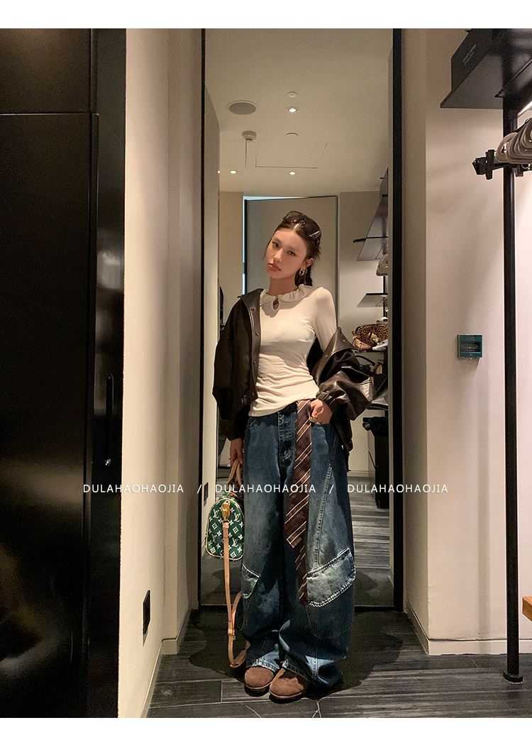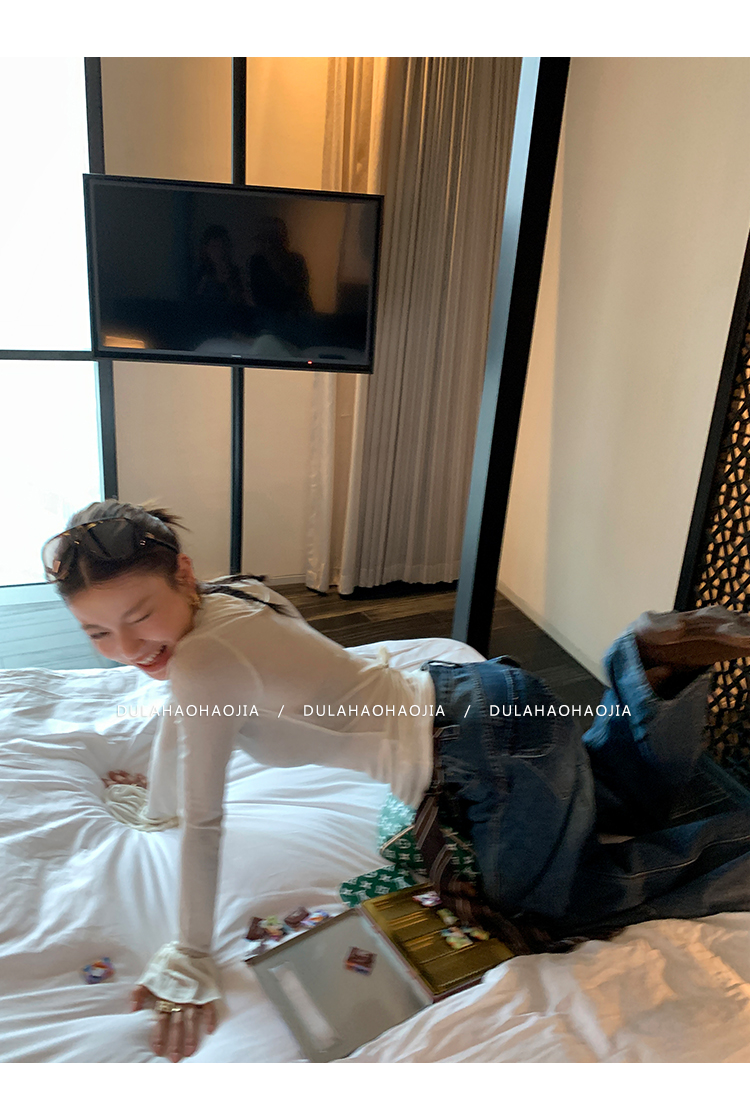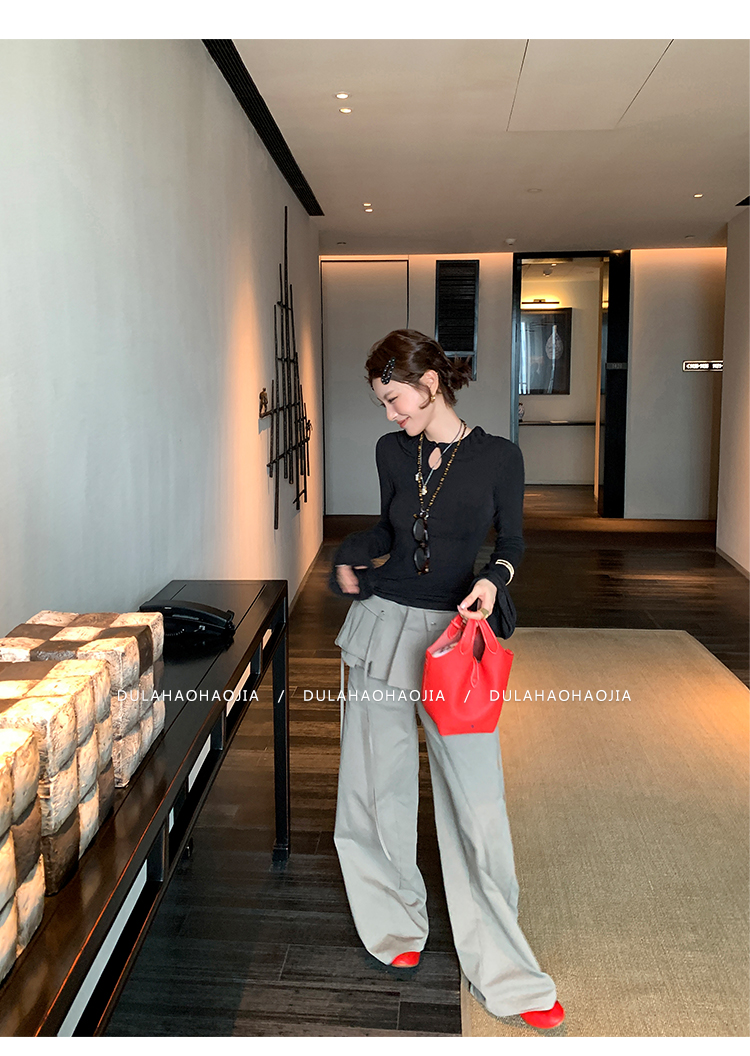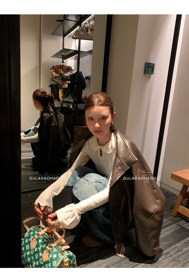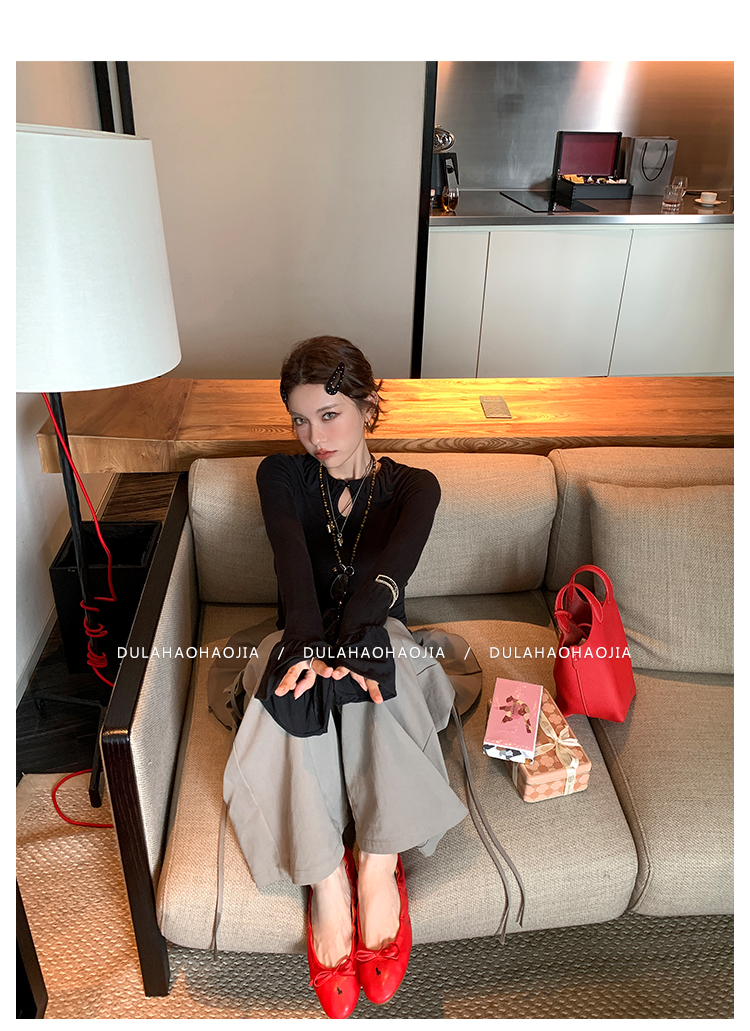 DULA doll collar slim bottoming shirt trumpet sleeve T-shirt