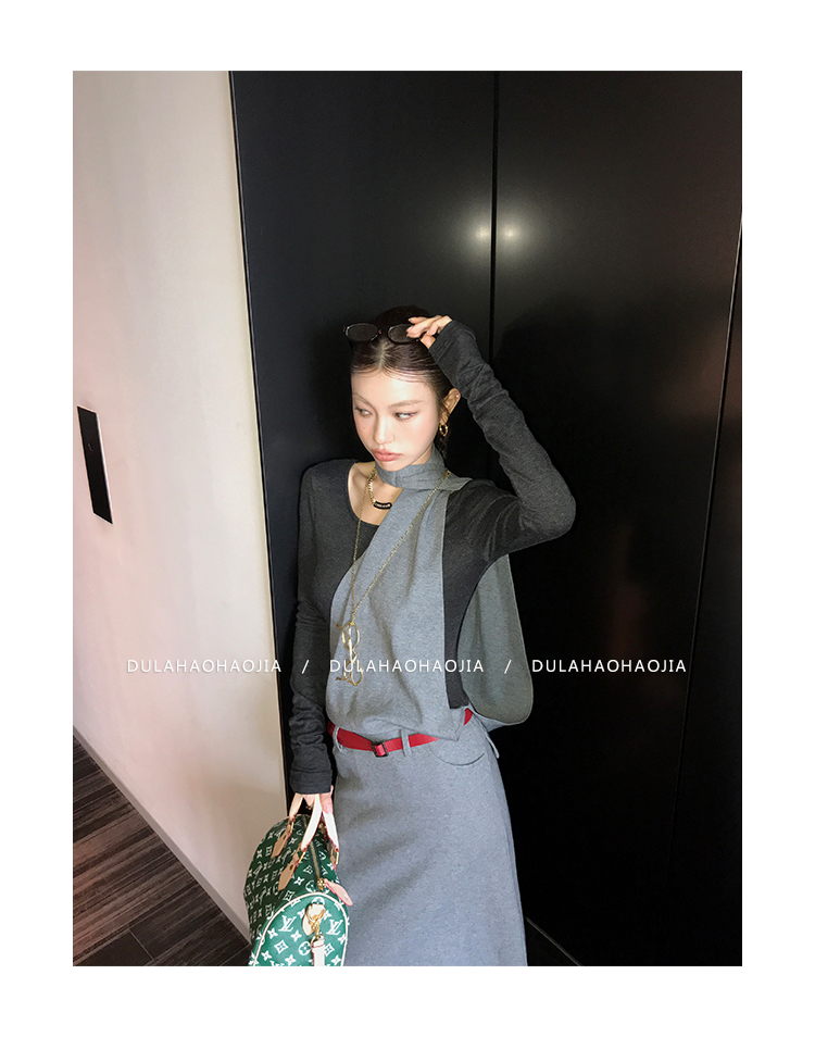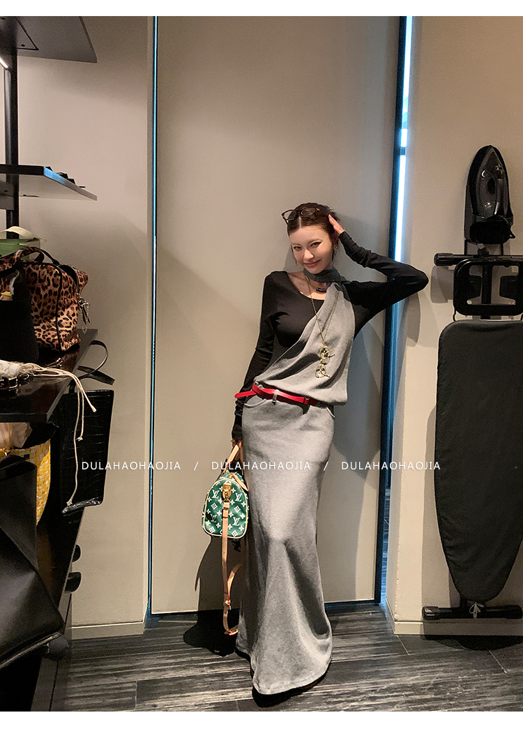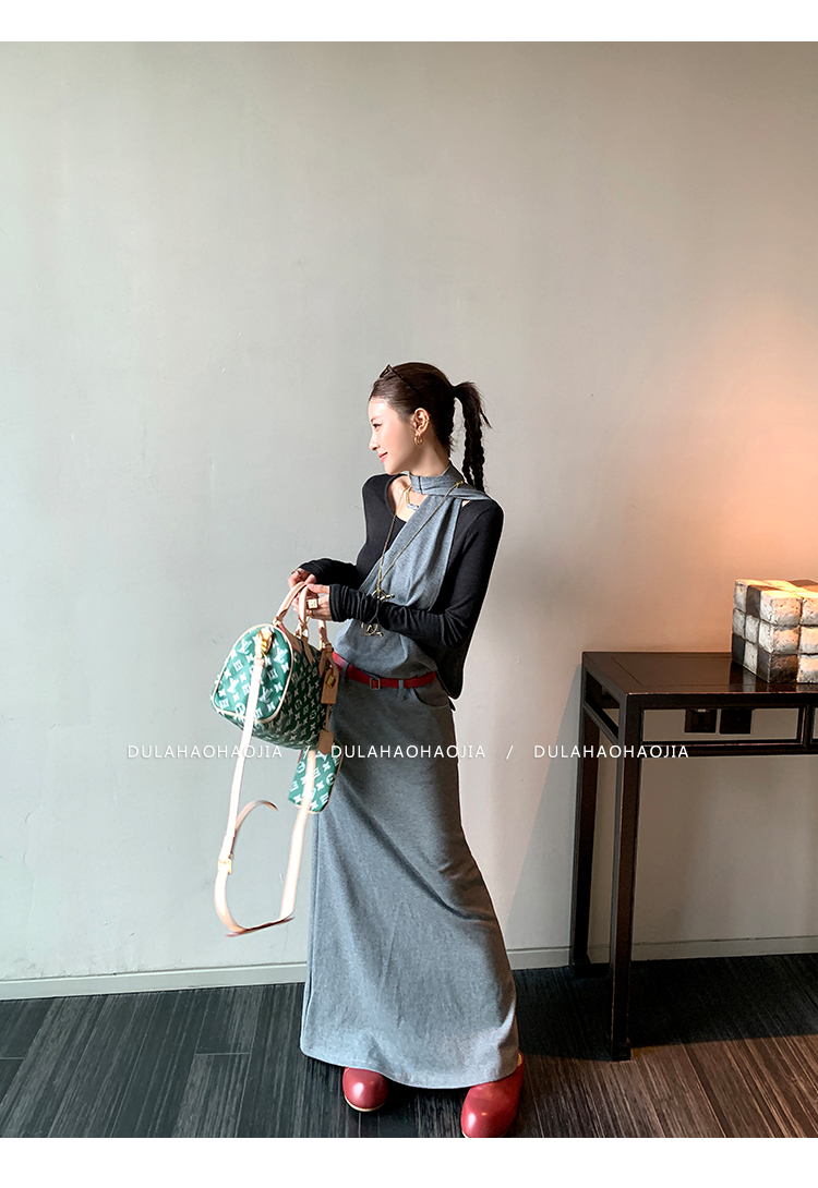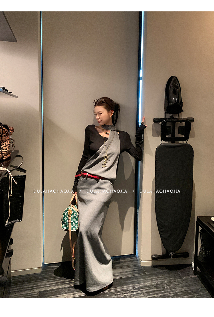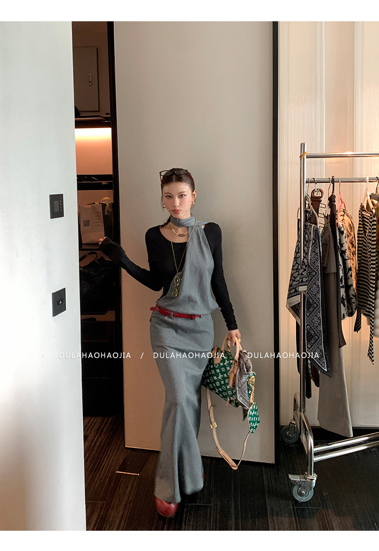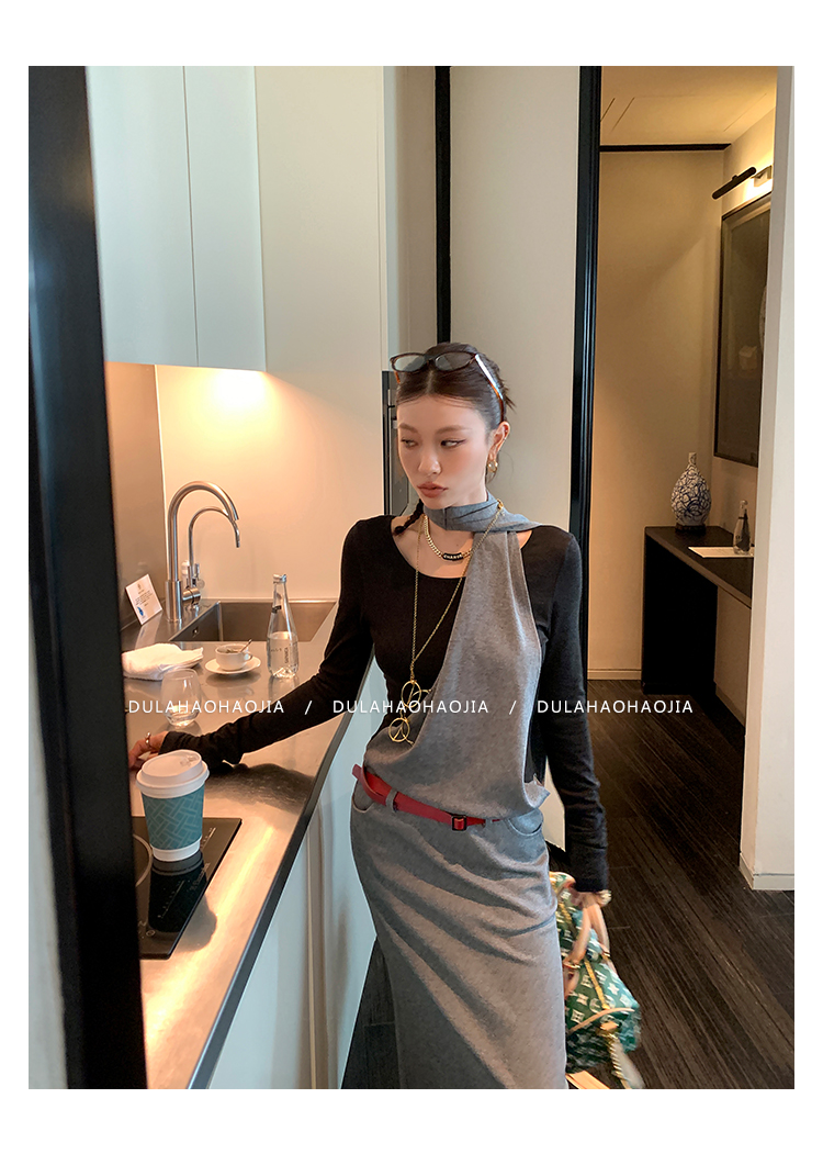 DULA midnight points fake two-piece halter dress
