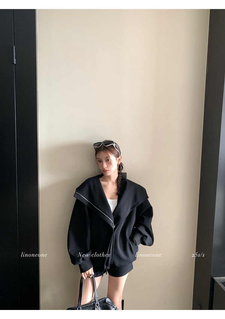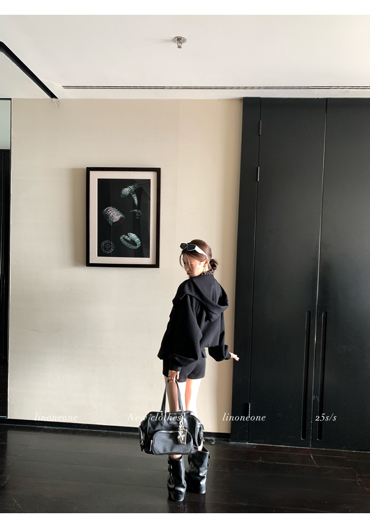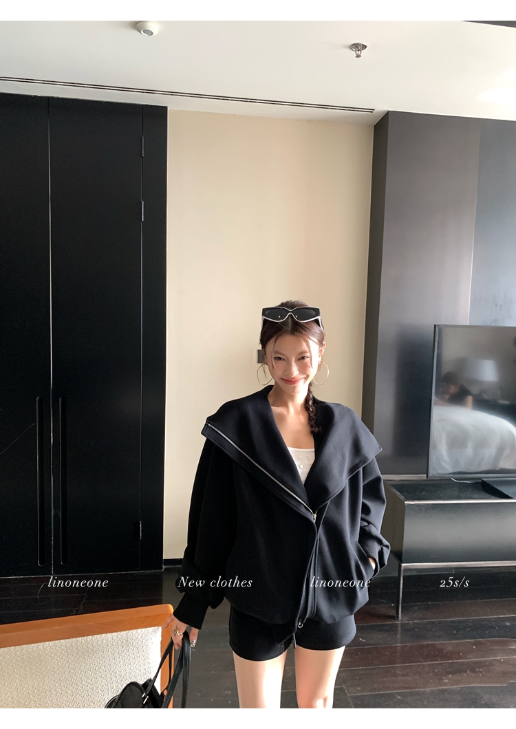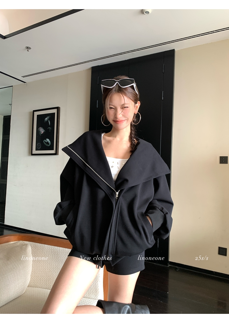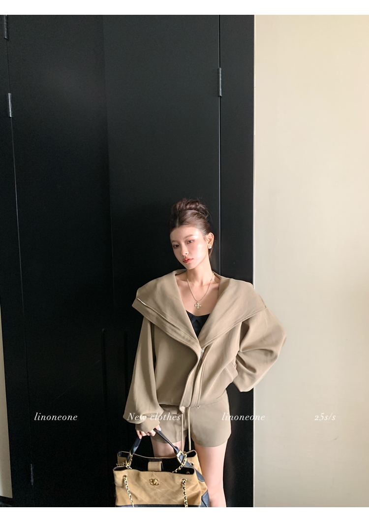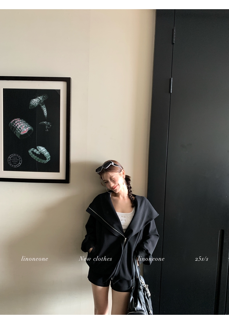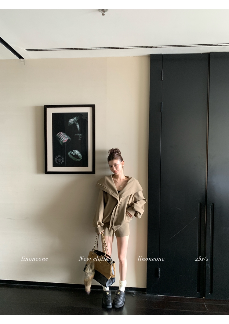 LIN Casual Loose Hooded Sweatshirt Cardigan Jacket Drawstring Shorts Set