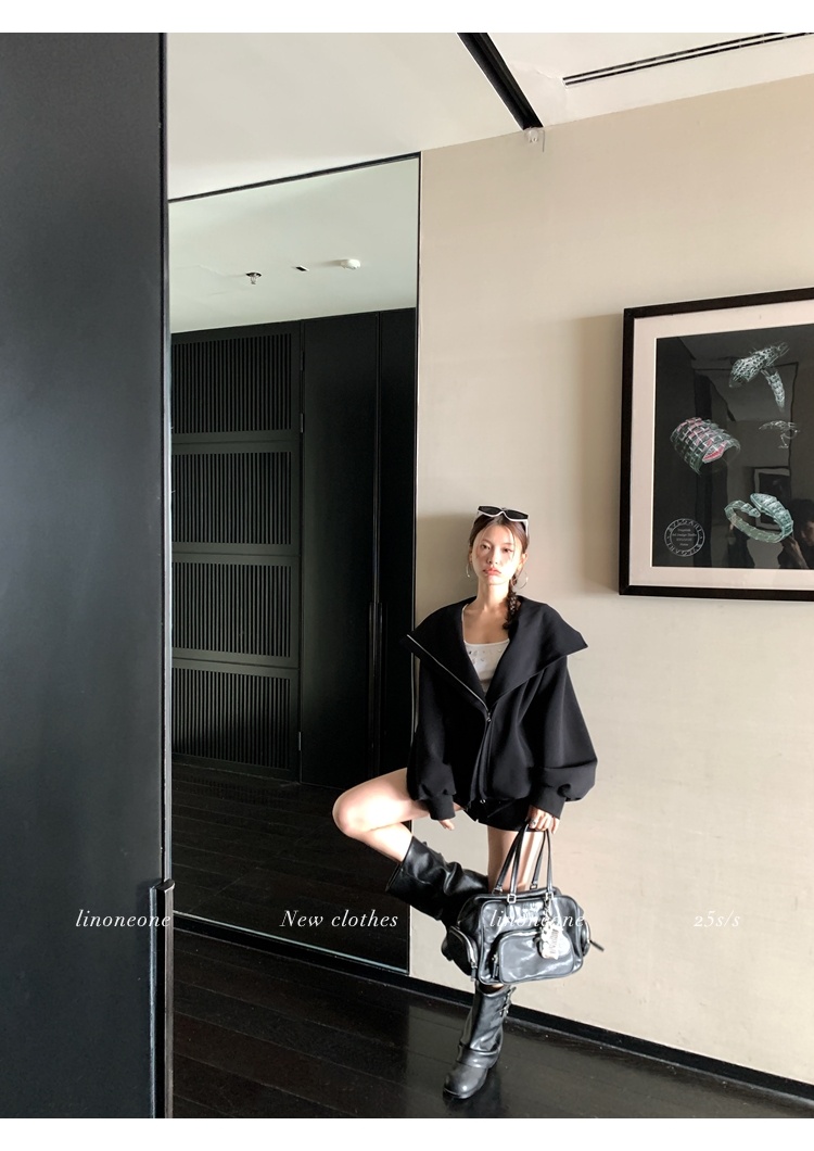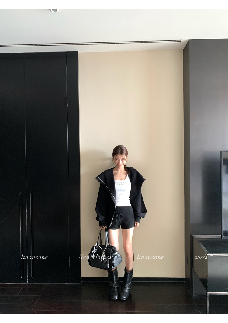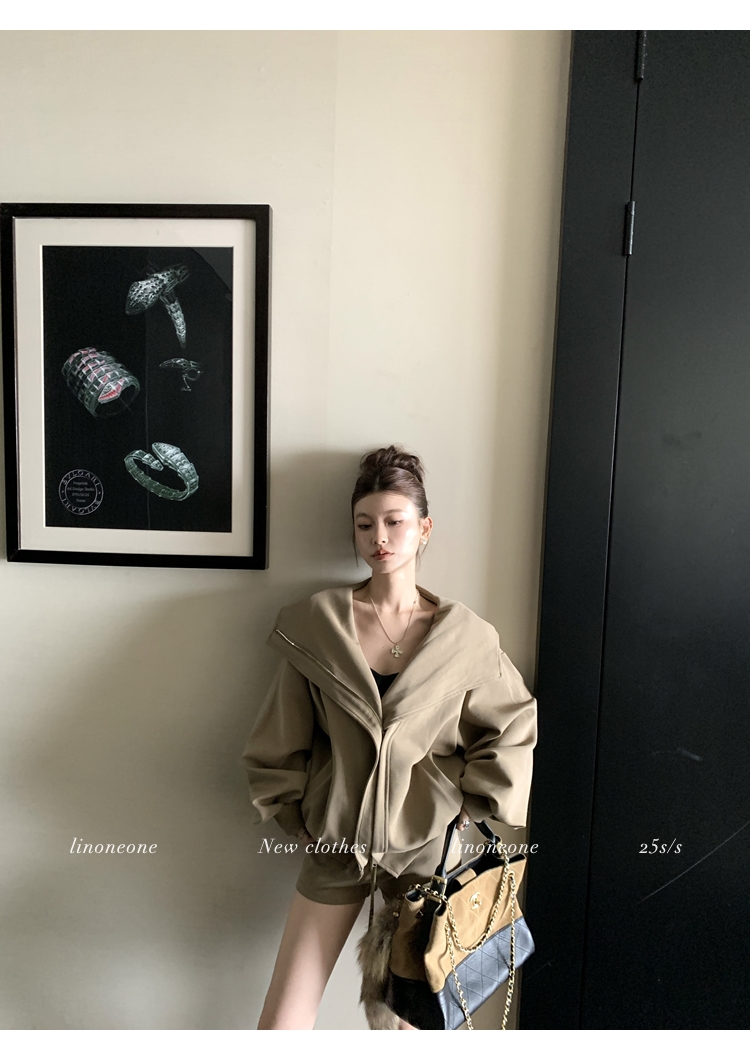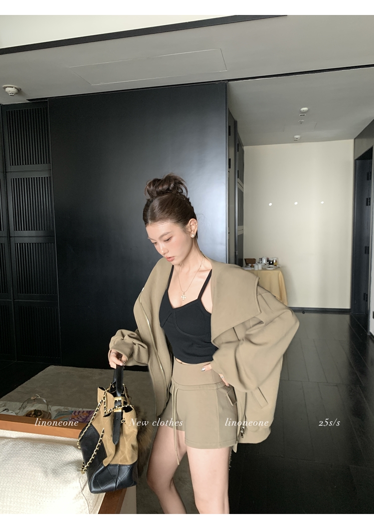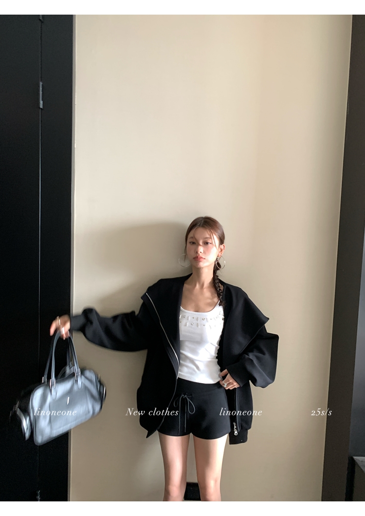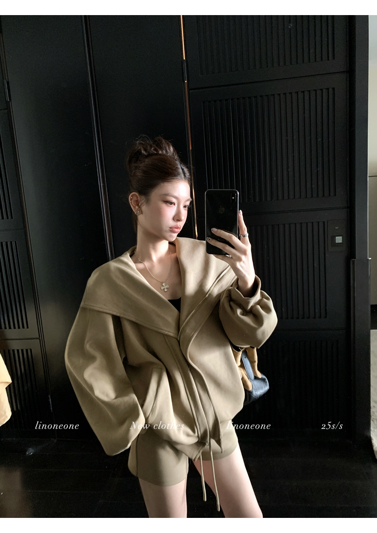 LIN Casual Loose Hooded Sweatshirt Cardigan Jacket Drawstring Shorts Set