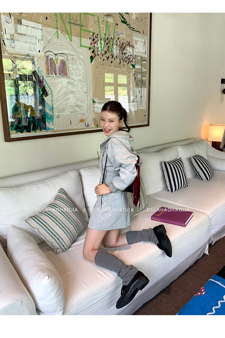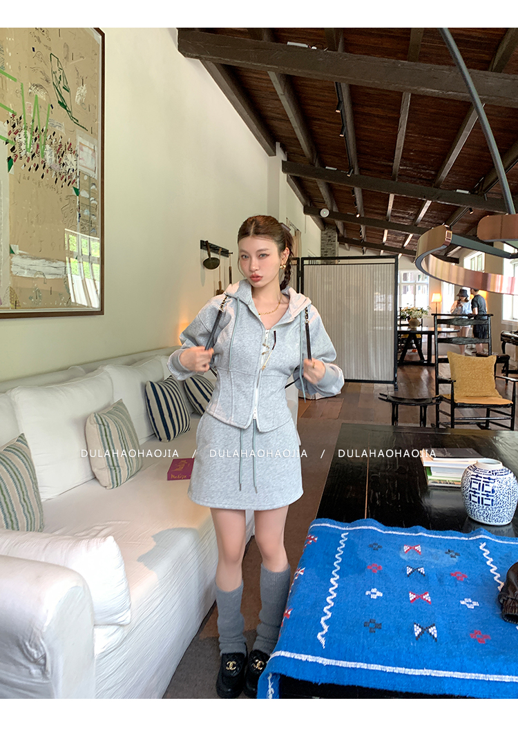 DULA Berlin Chronicle Gray Fleece Hoodie + Miniskirt Set