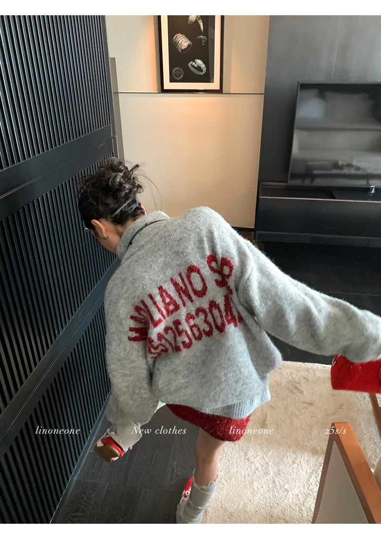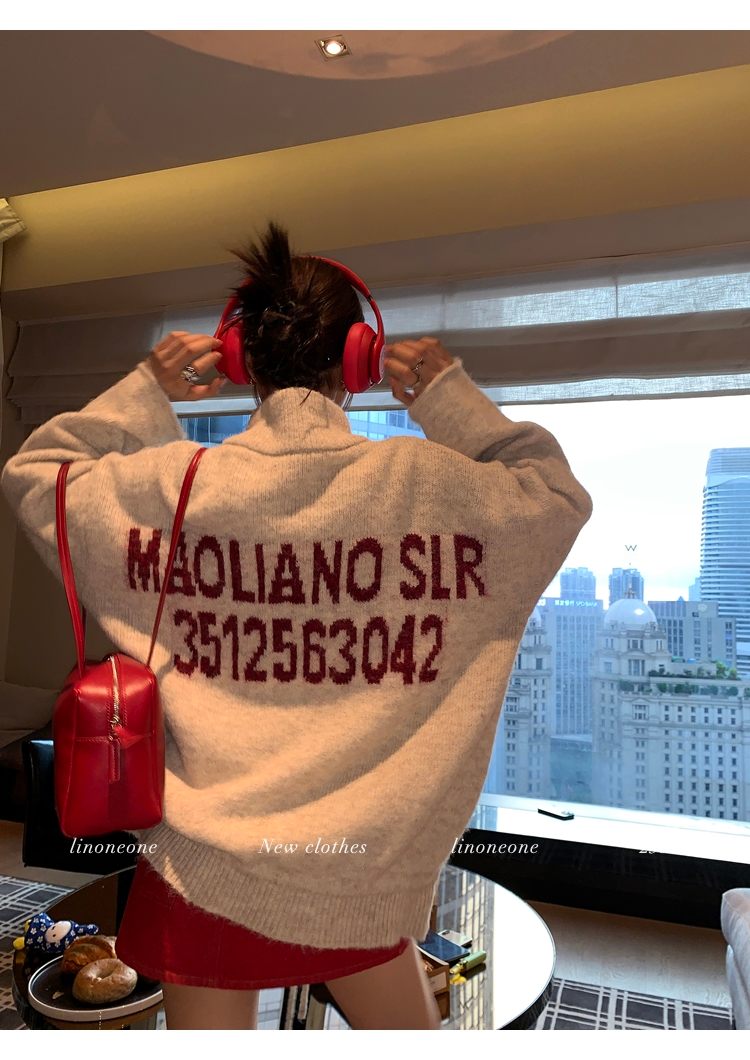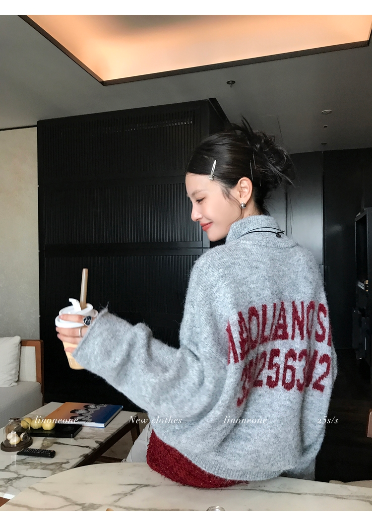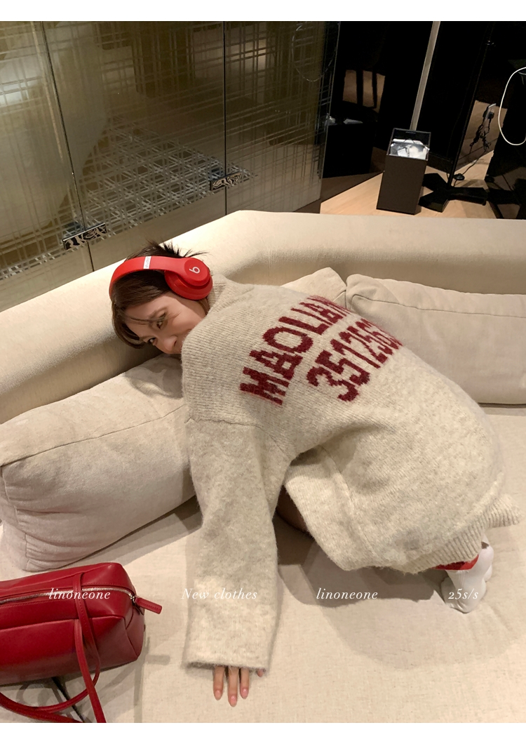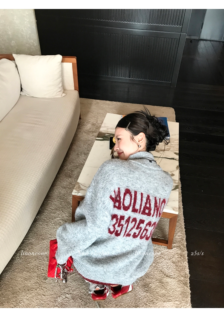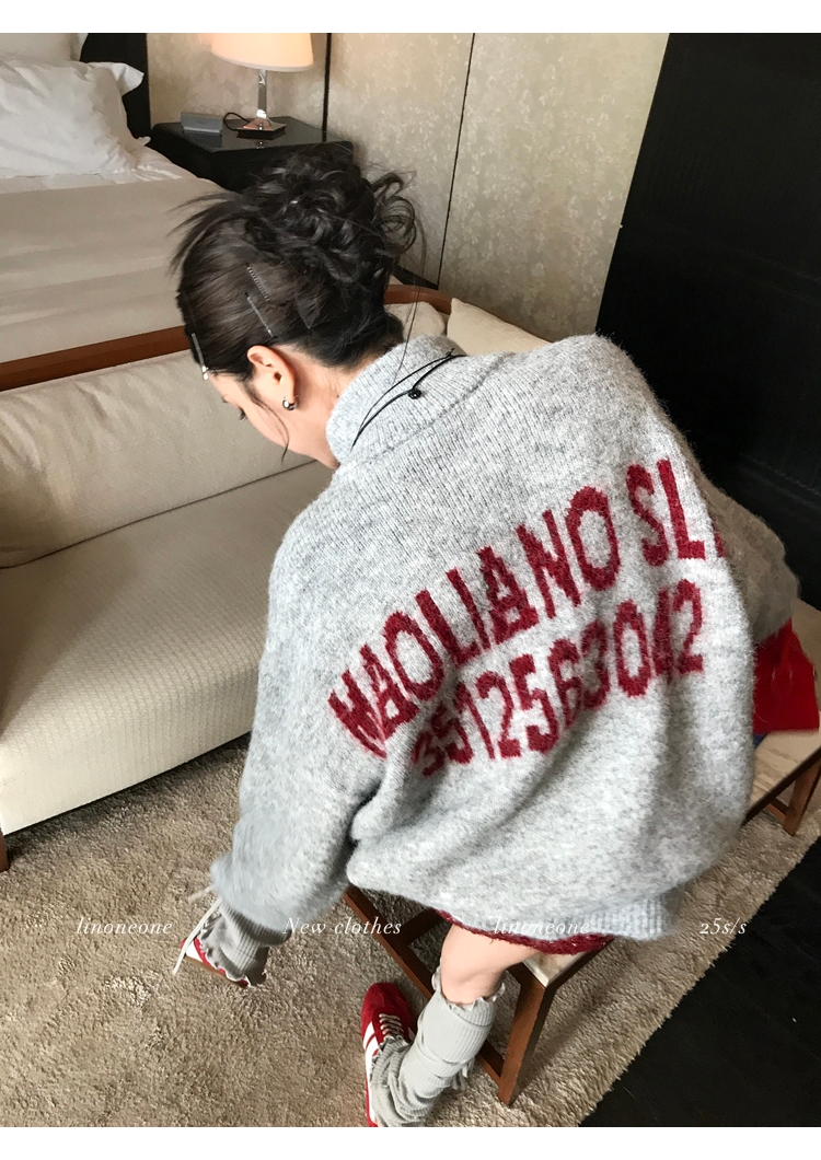 LIN contrast color letter drawstring loose lazy pullover jacketNEW
