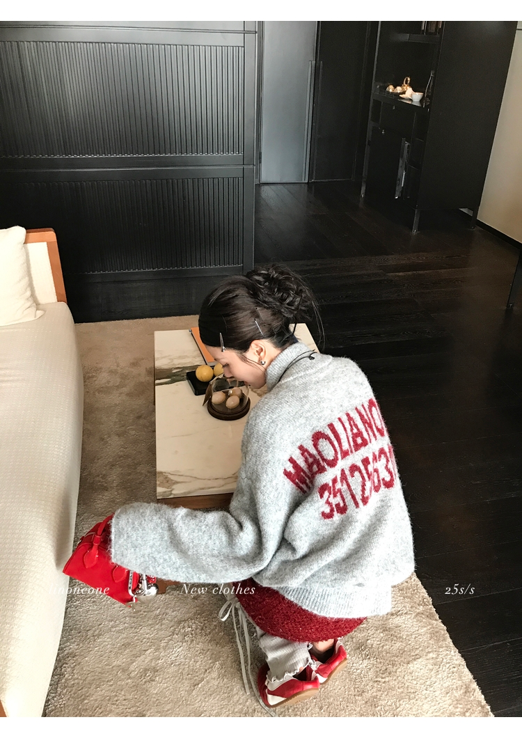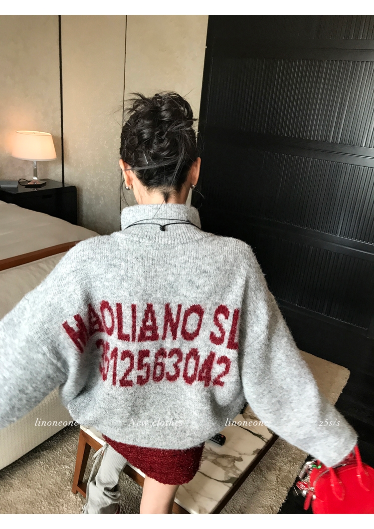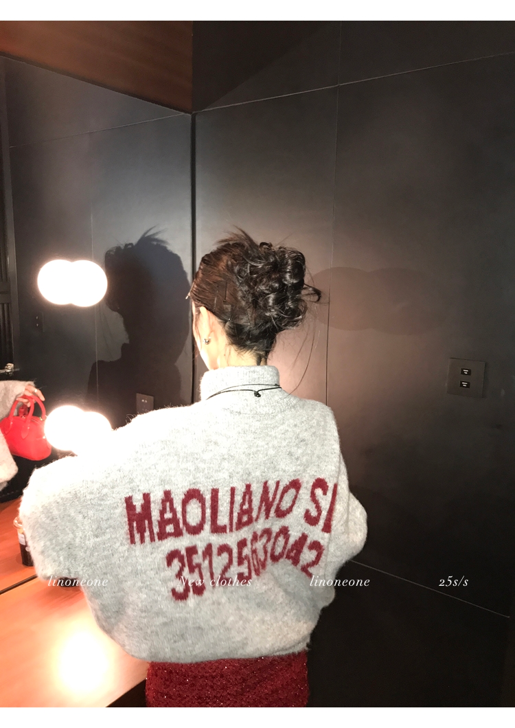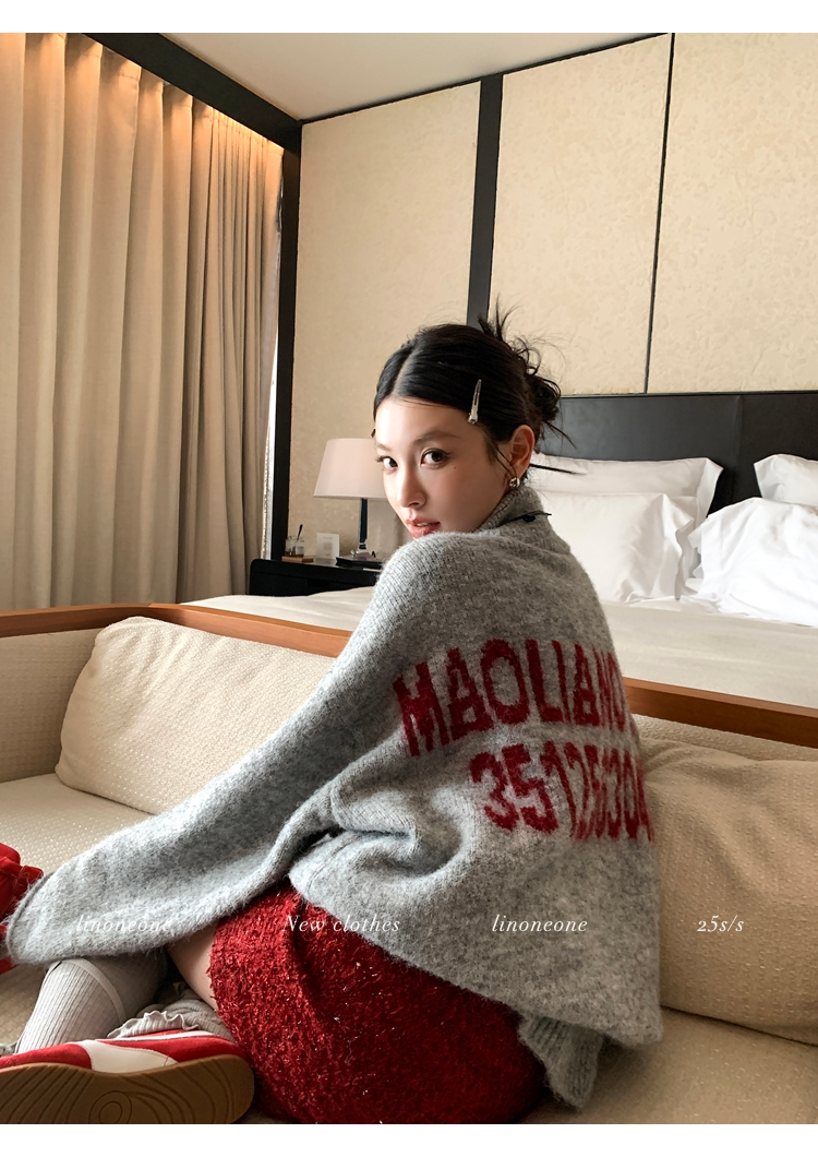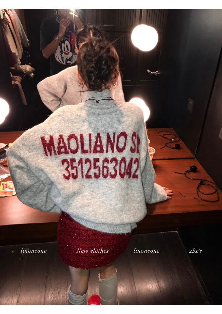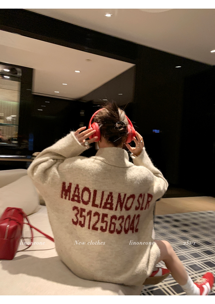 LIN contrast color letter drawstring loose lazy pullover jacketNEW