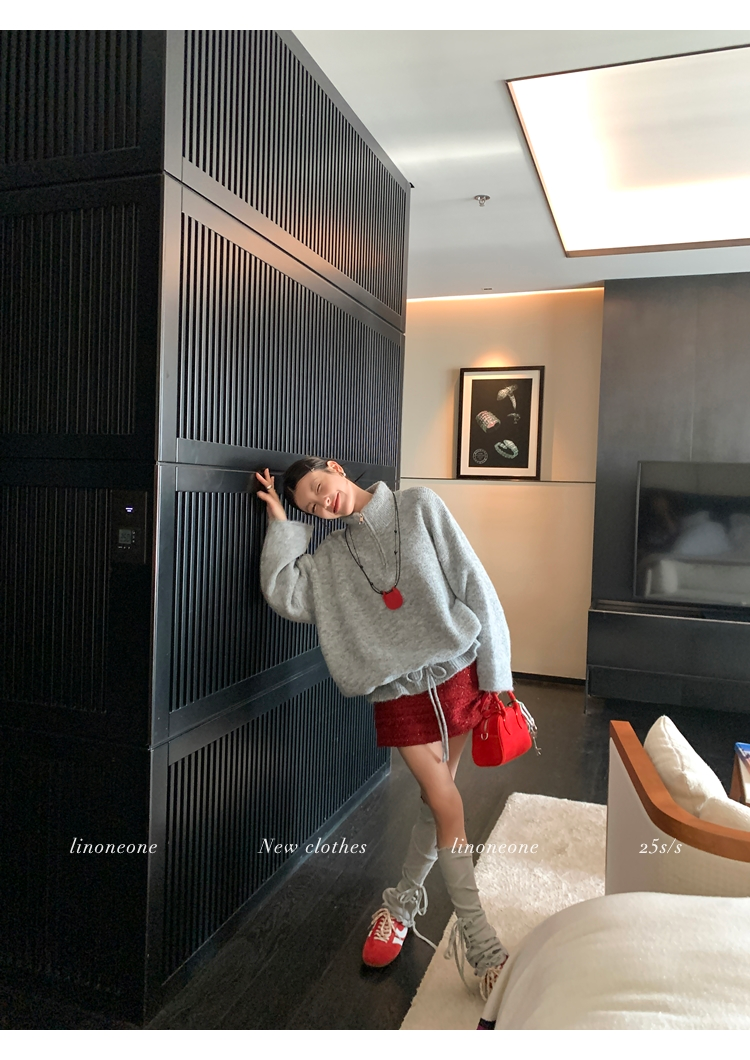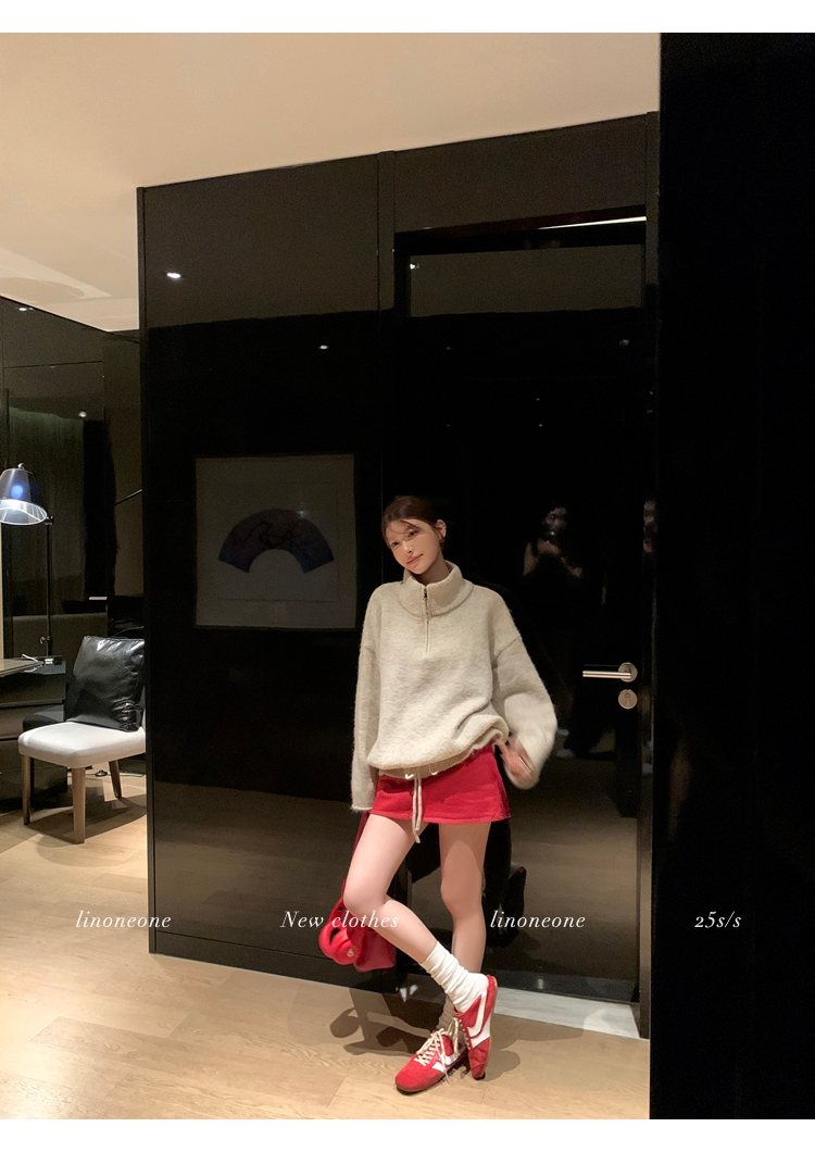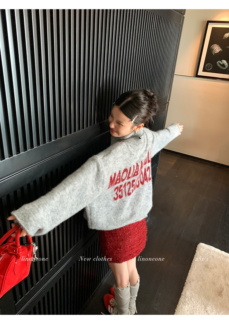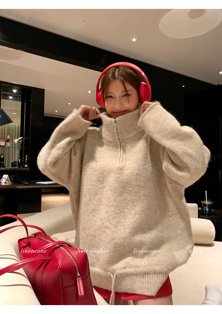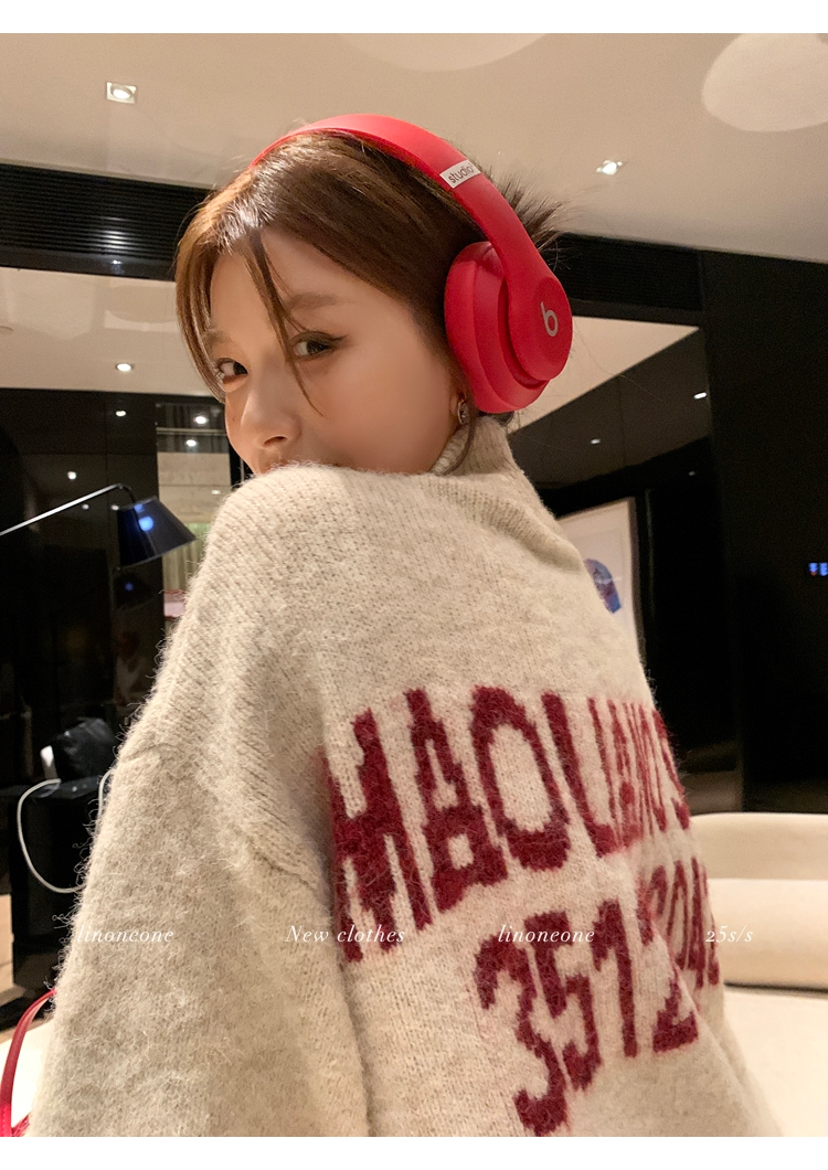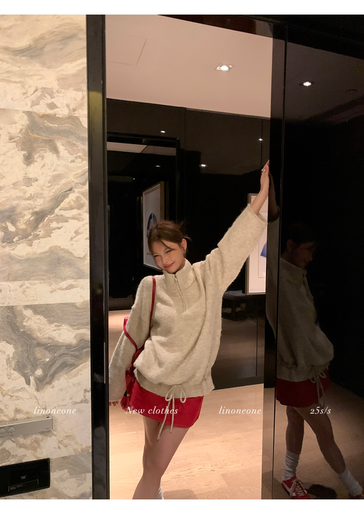 LIN contrast color letter drawstring loose lazy pullover jacketNEW
