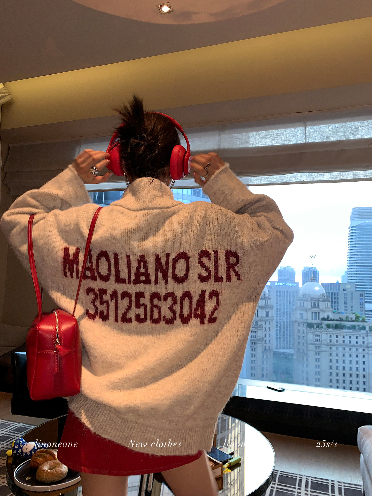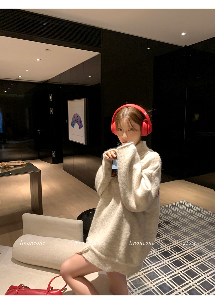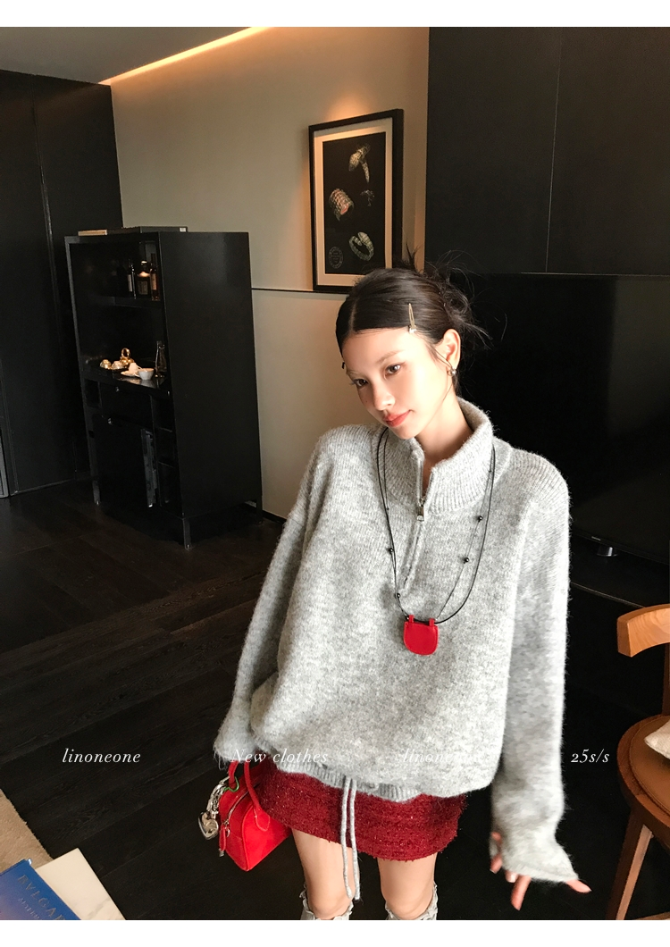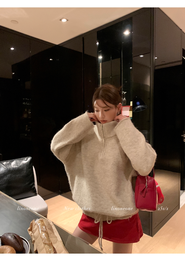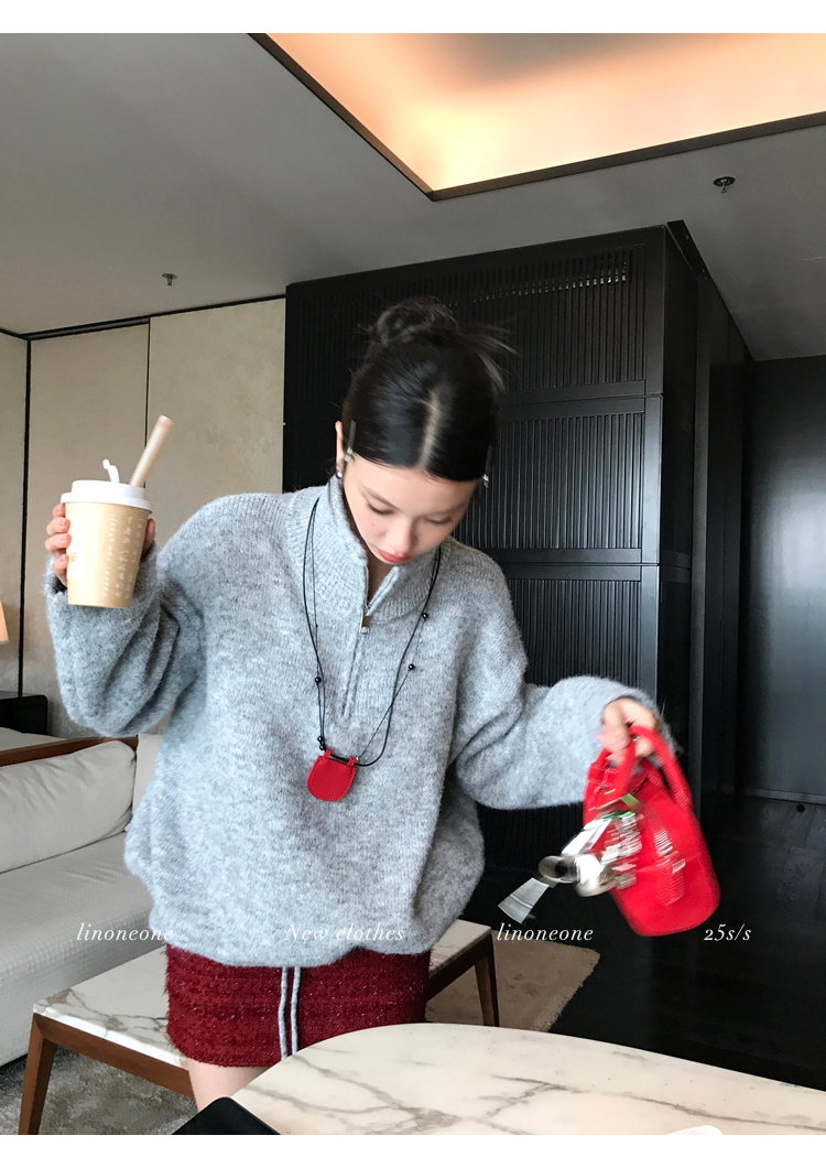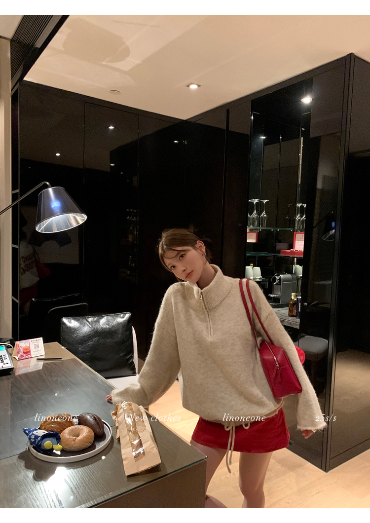 LIN contrast color letter drawstring loose lazy pullover jacketNEW