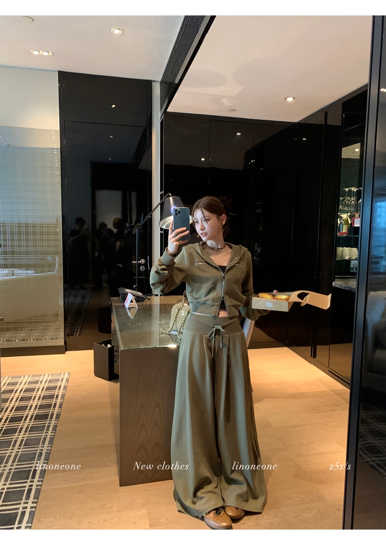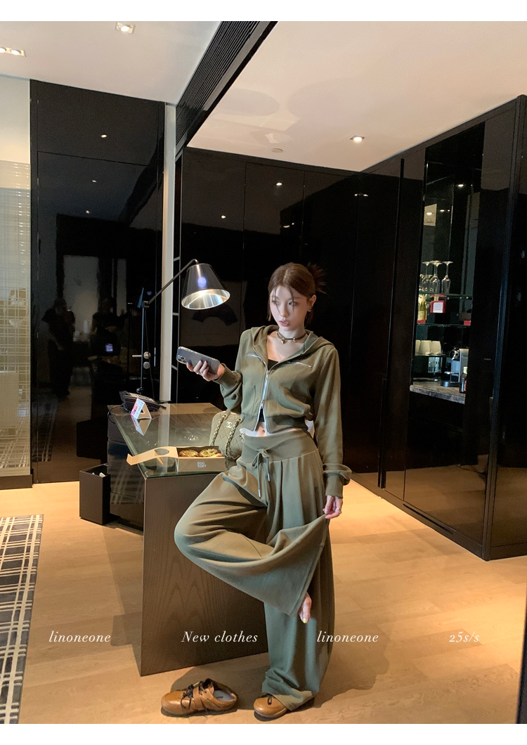 LIN Relaxed Matcha Army Green Hooded Jacket / Pants Set