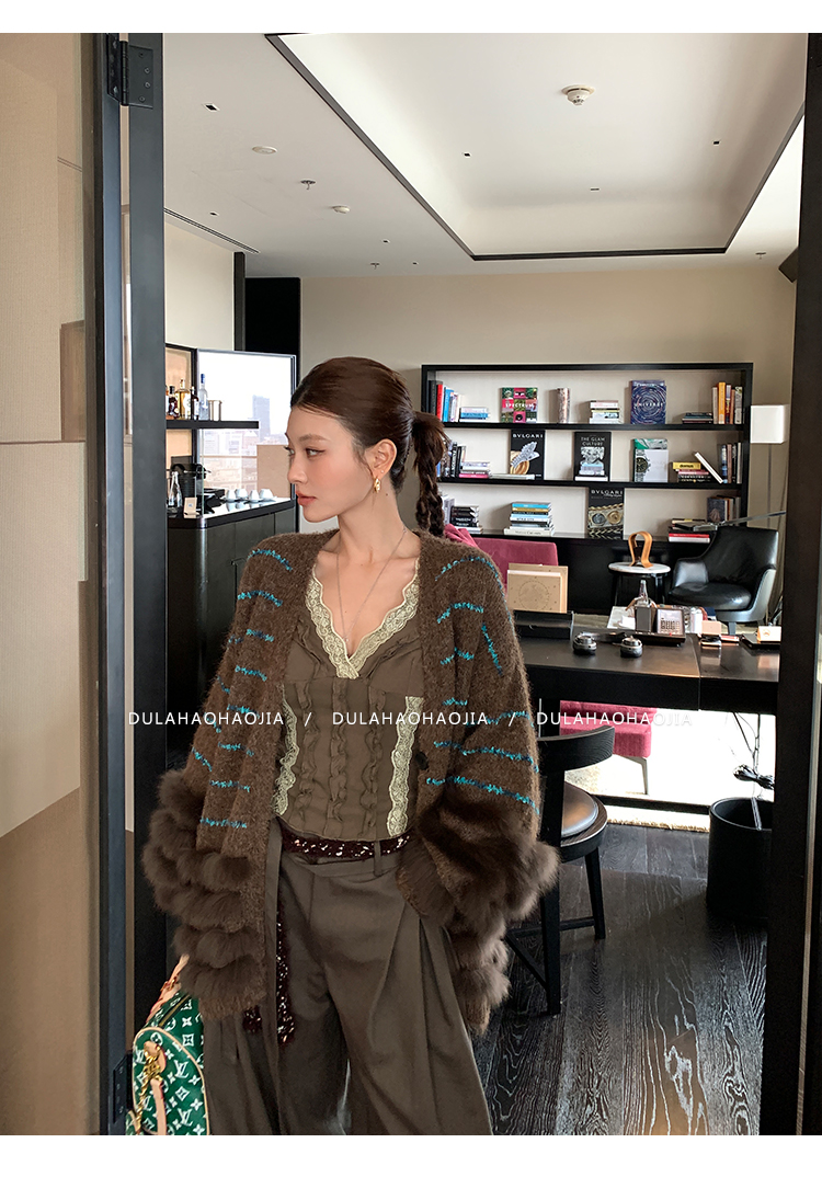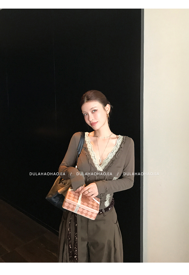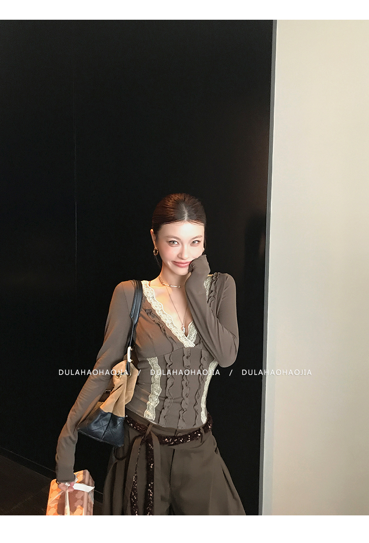DULA Lace V-neck Bottom long sleeves T-shirt
