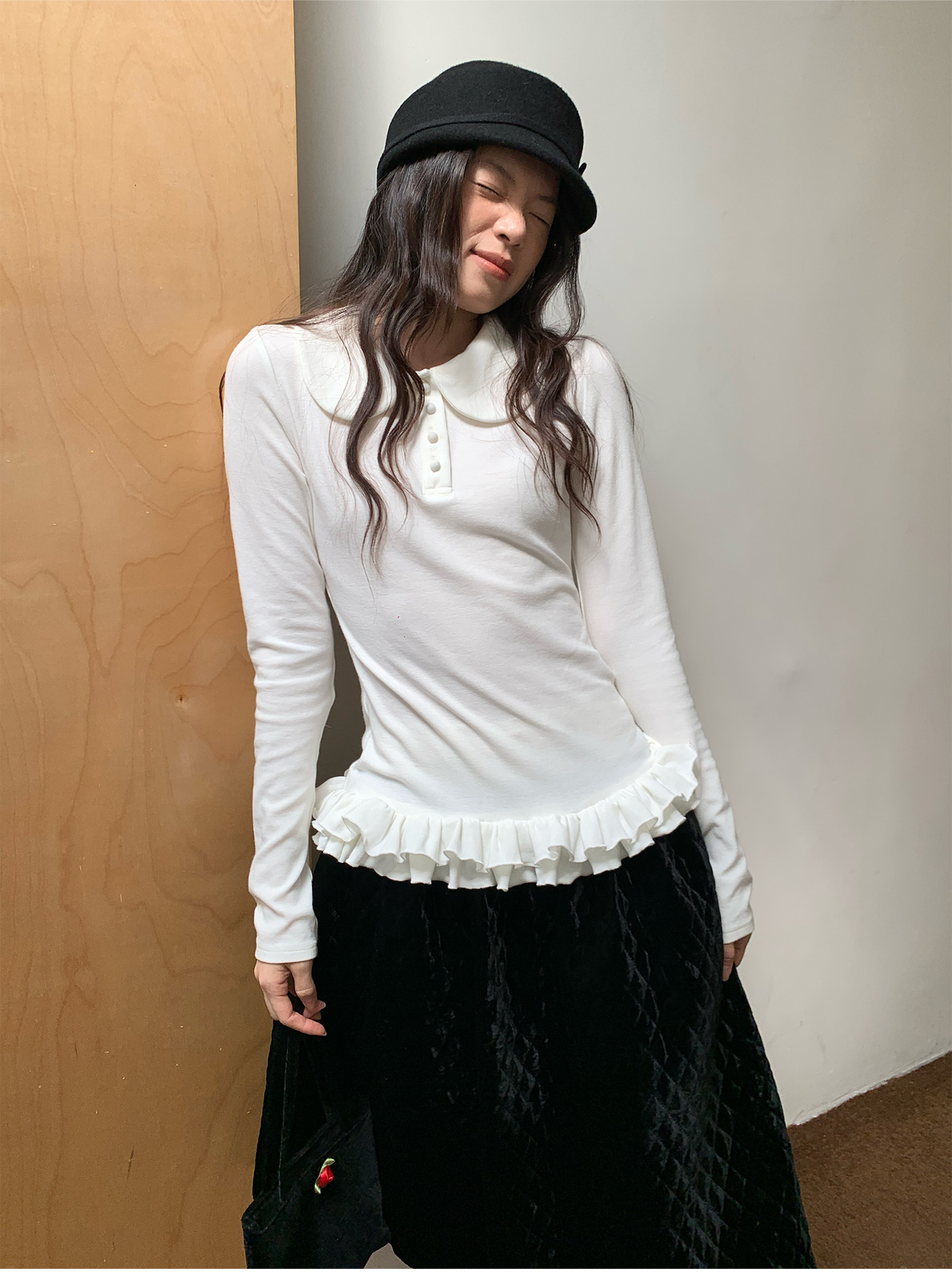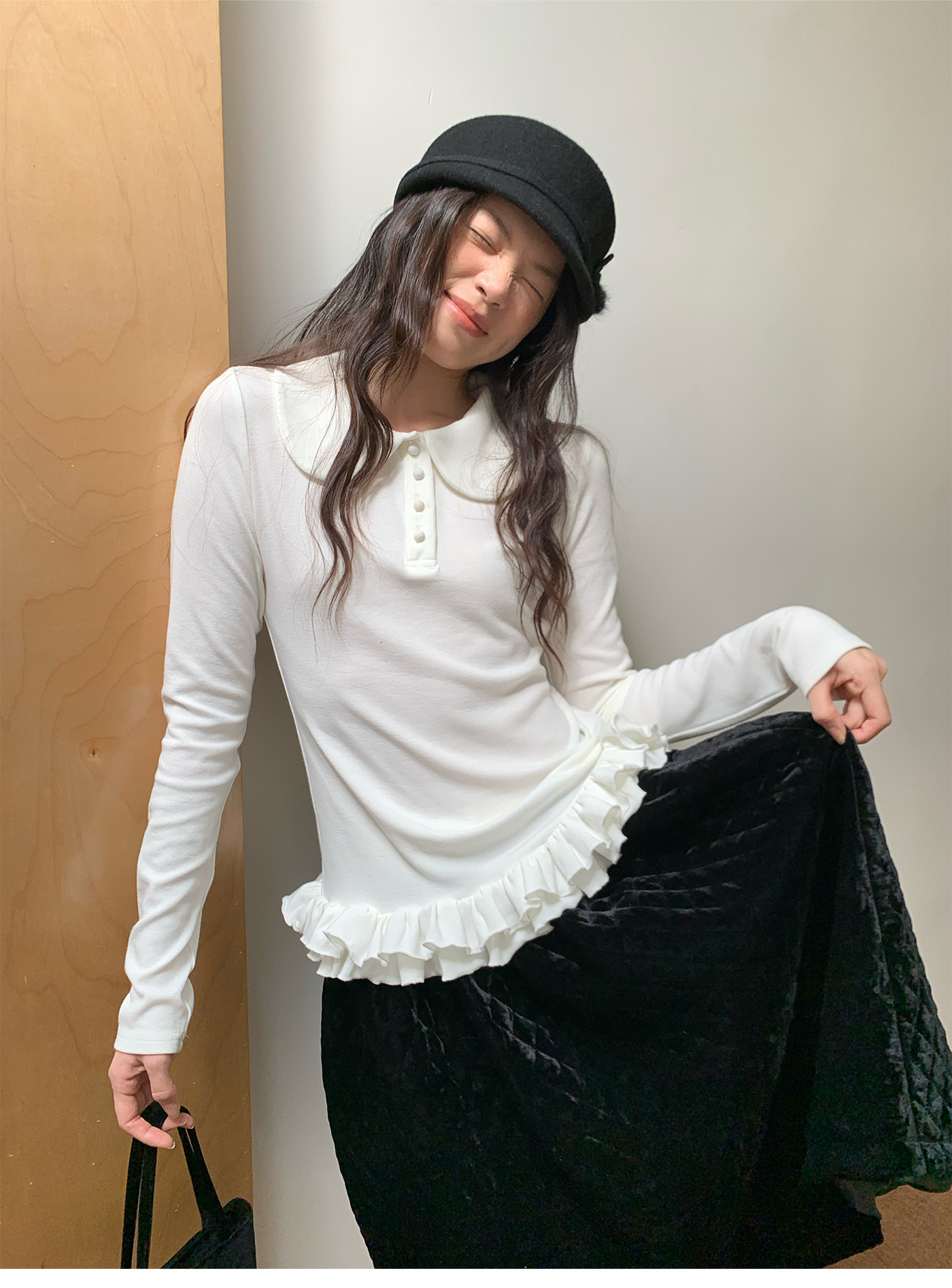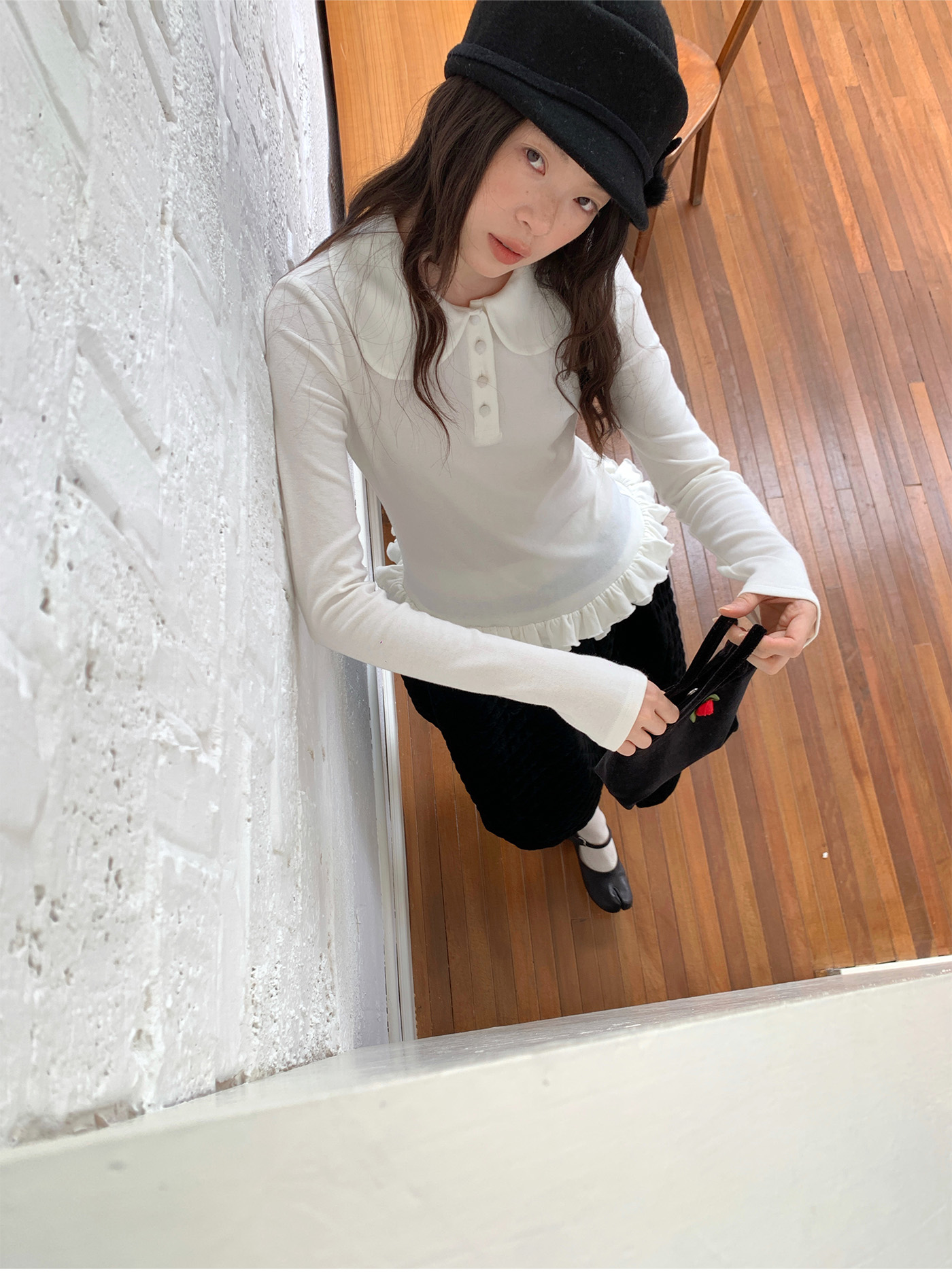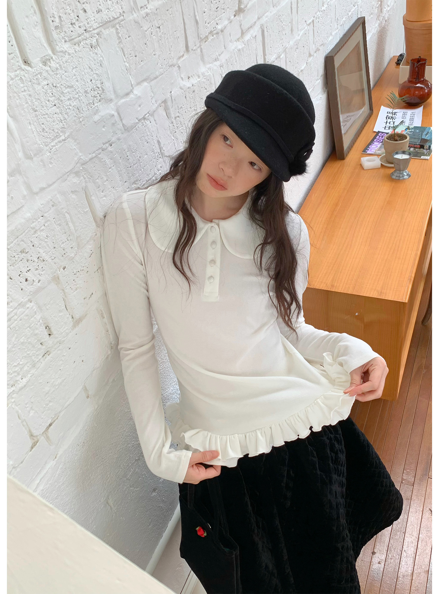 SOO White Peter Pan Collar Lace Long-Sleeve Knit Top