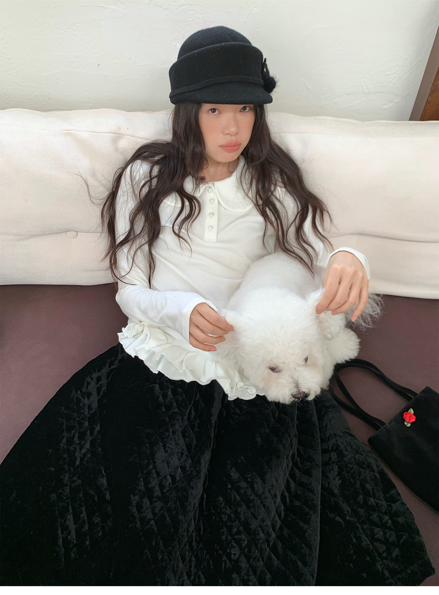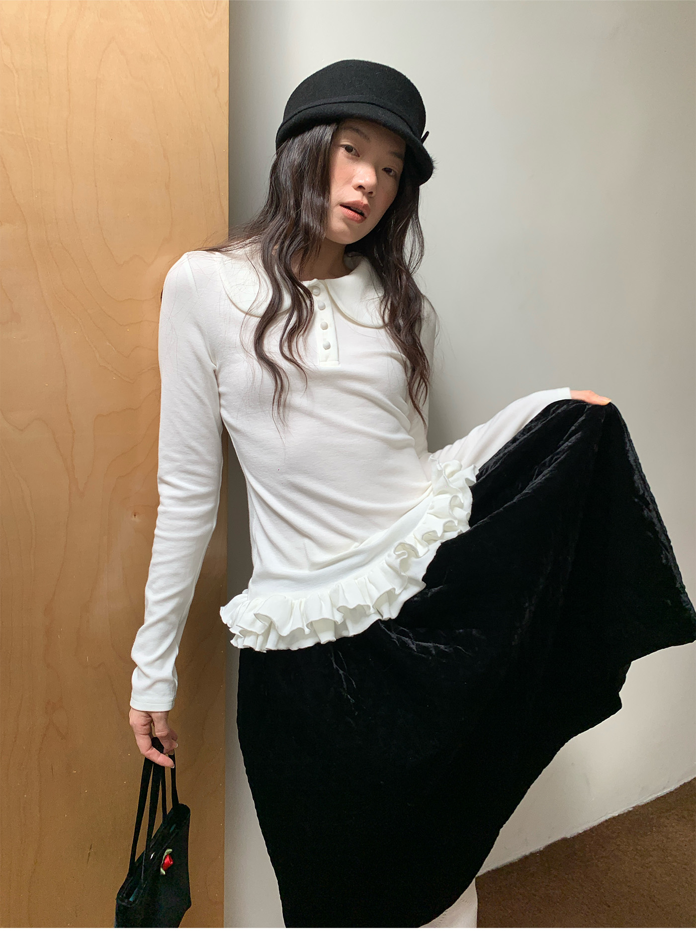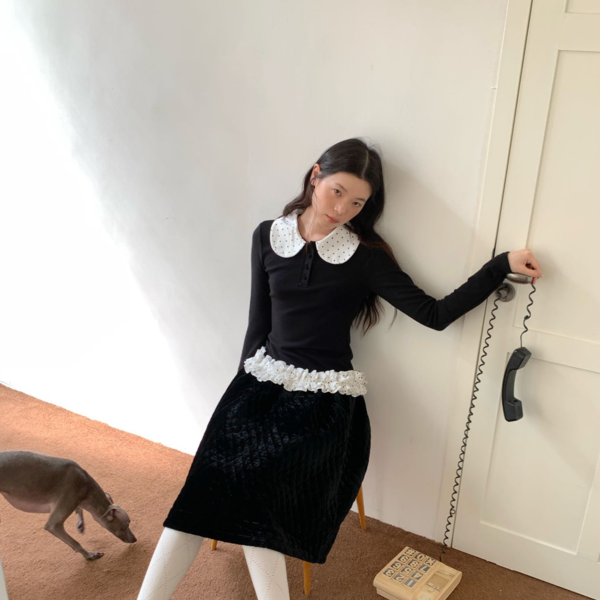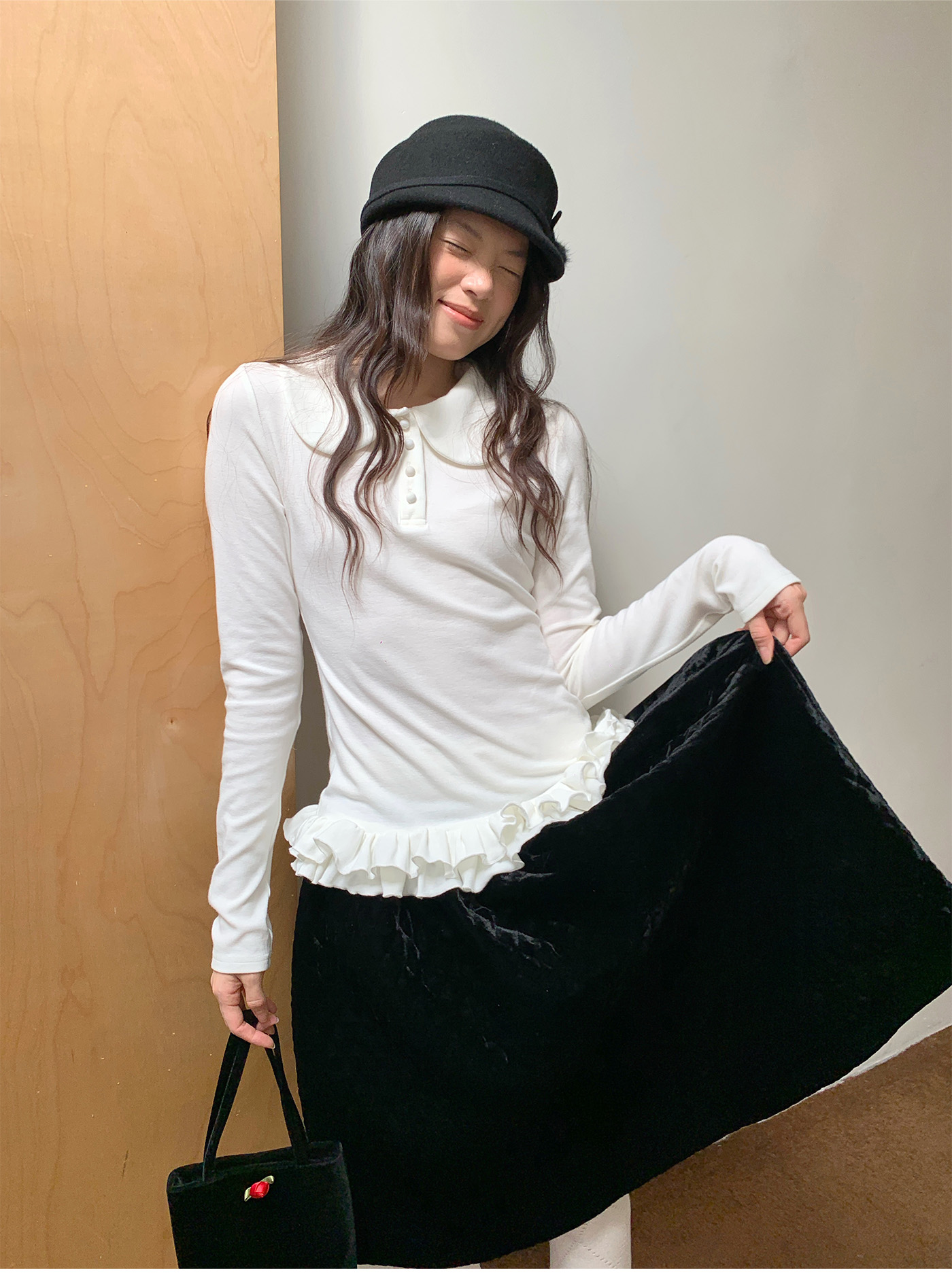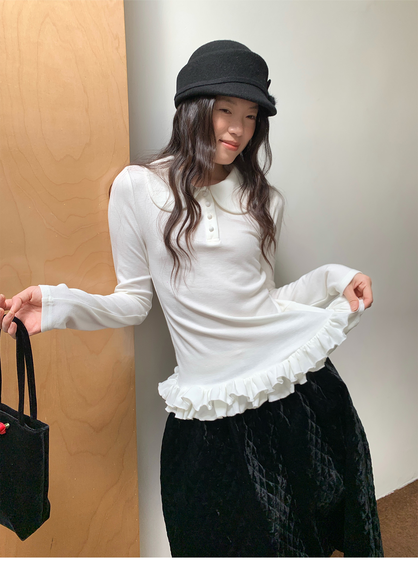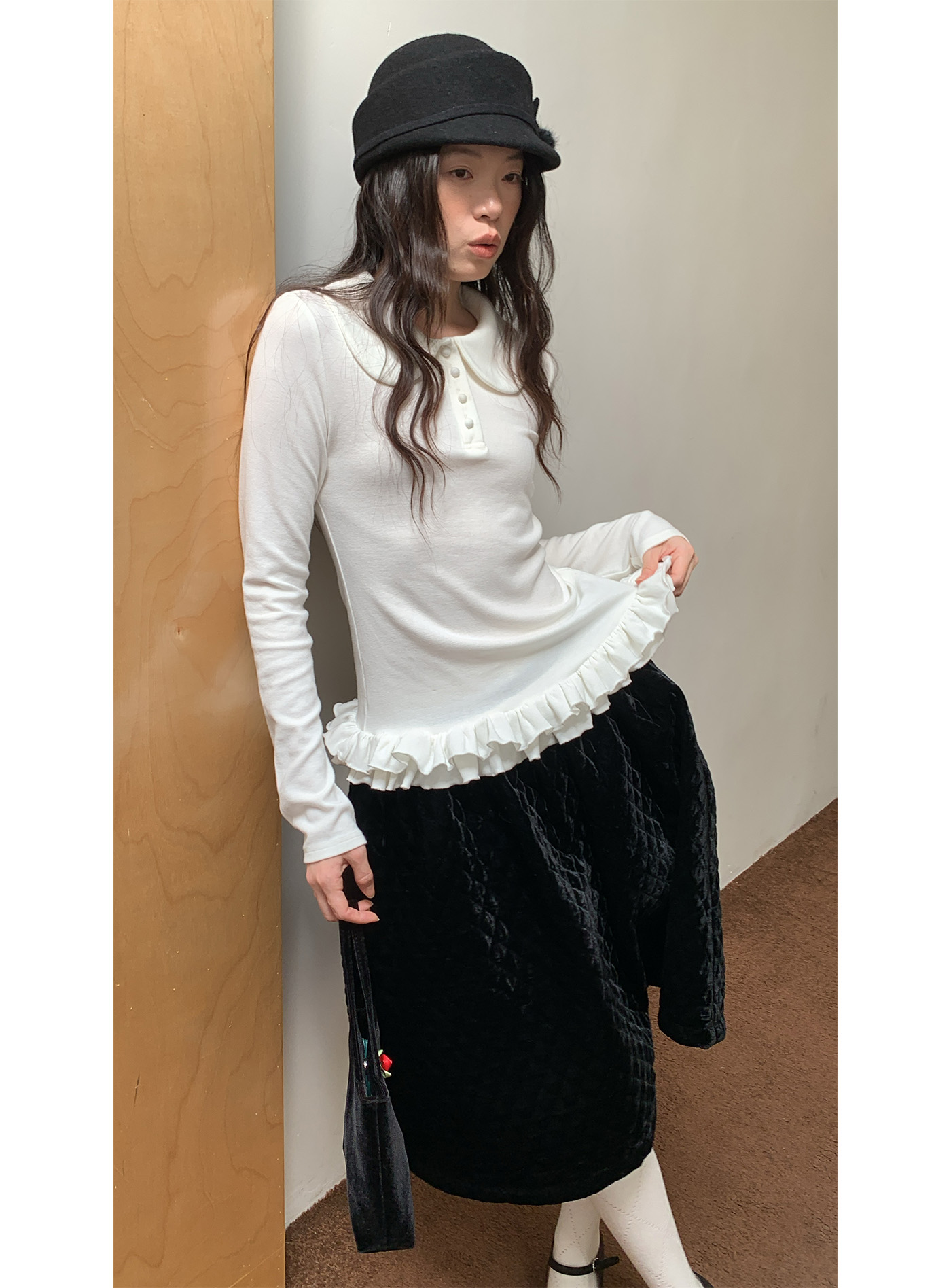 SOO White Peter Pan Collar Lace Long-Sleeve Knit Top