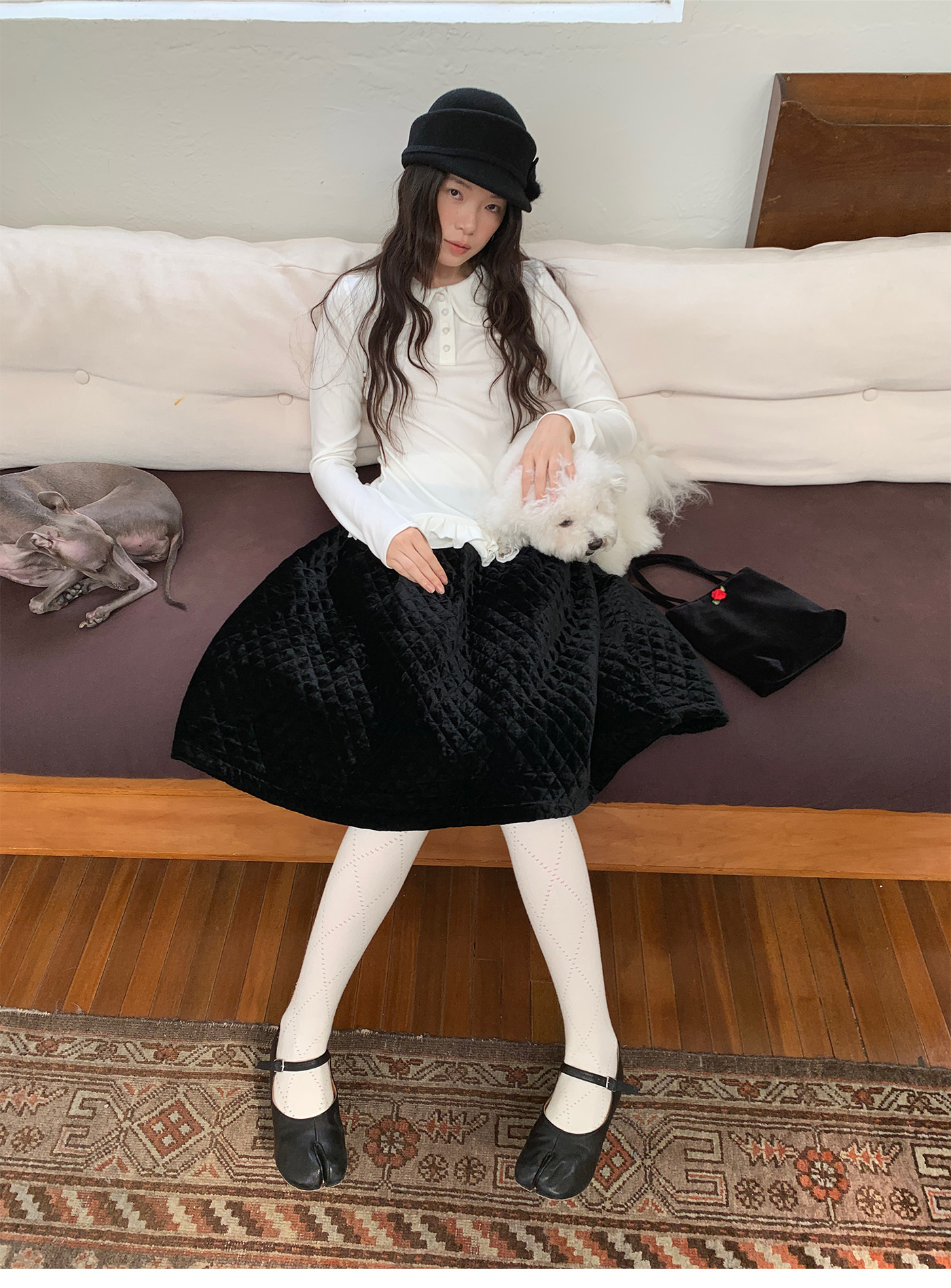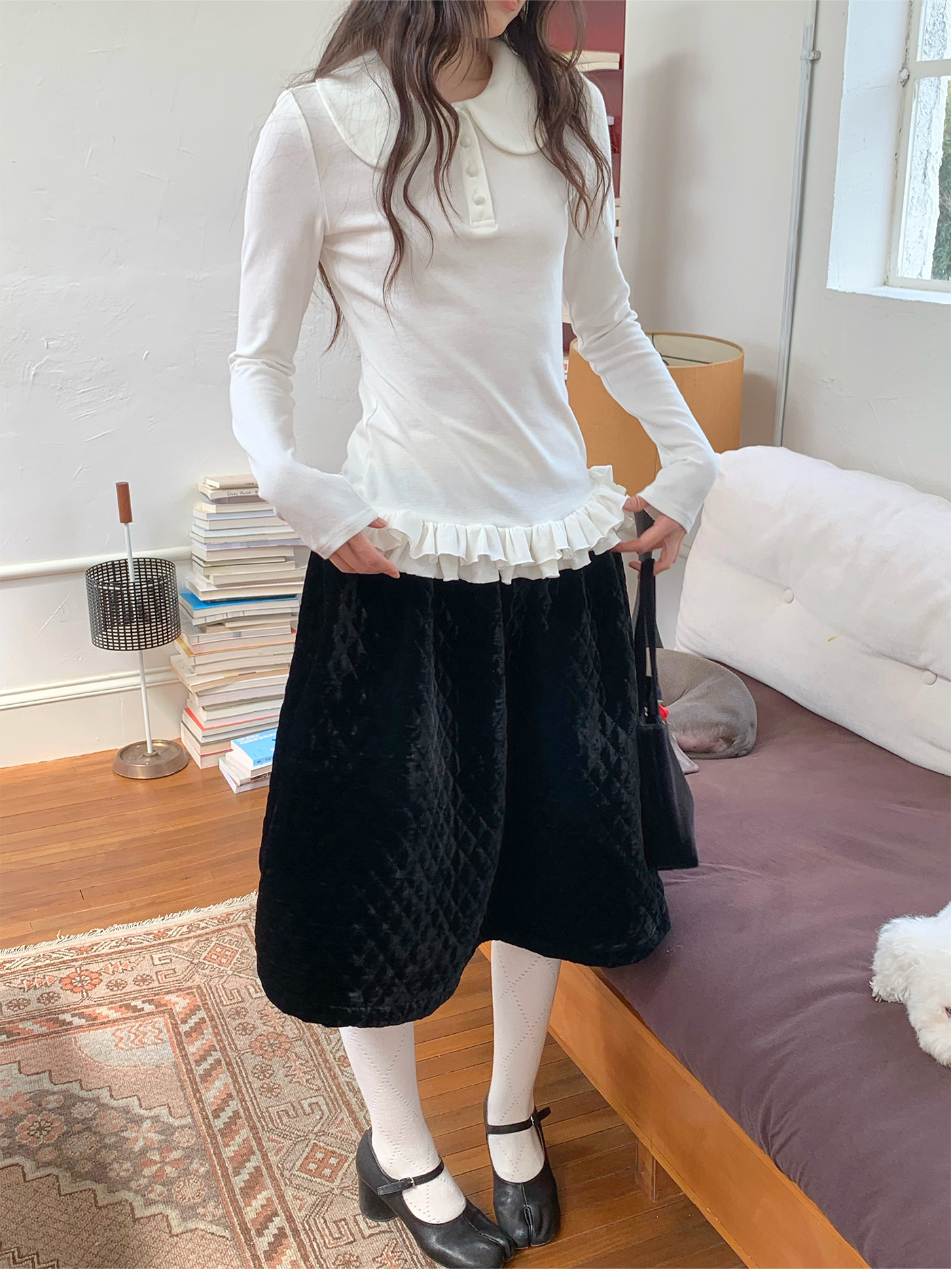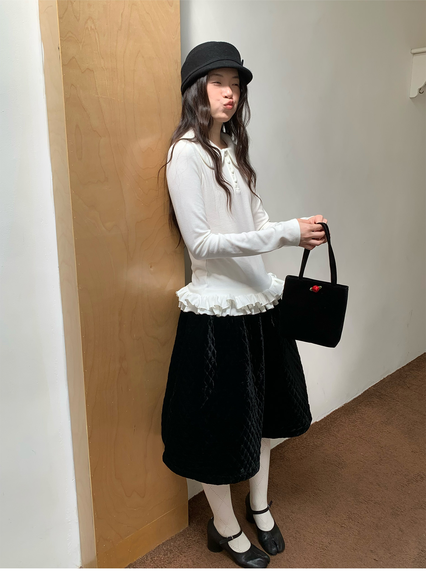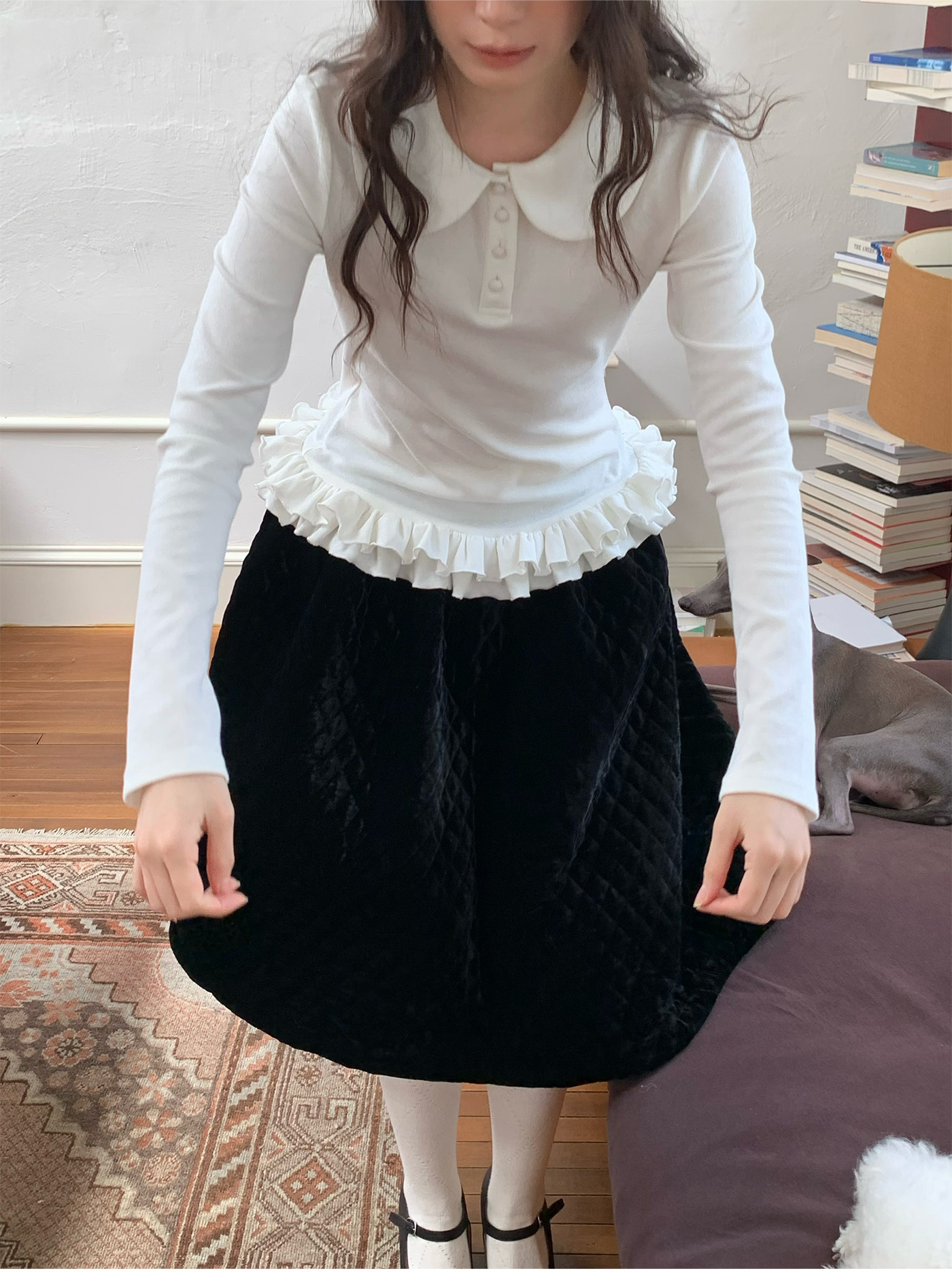 SOO White Peter Pan Collar Lace Long-Sleeve Knit Top