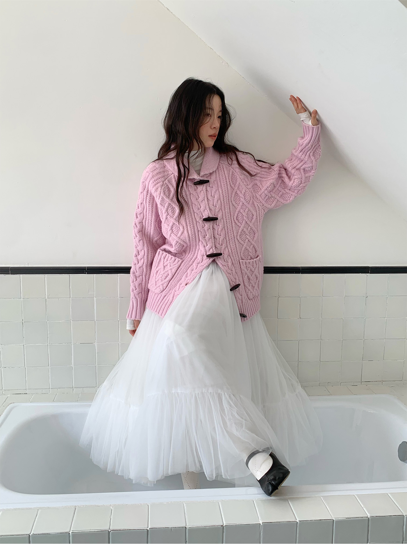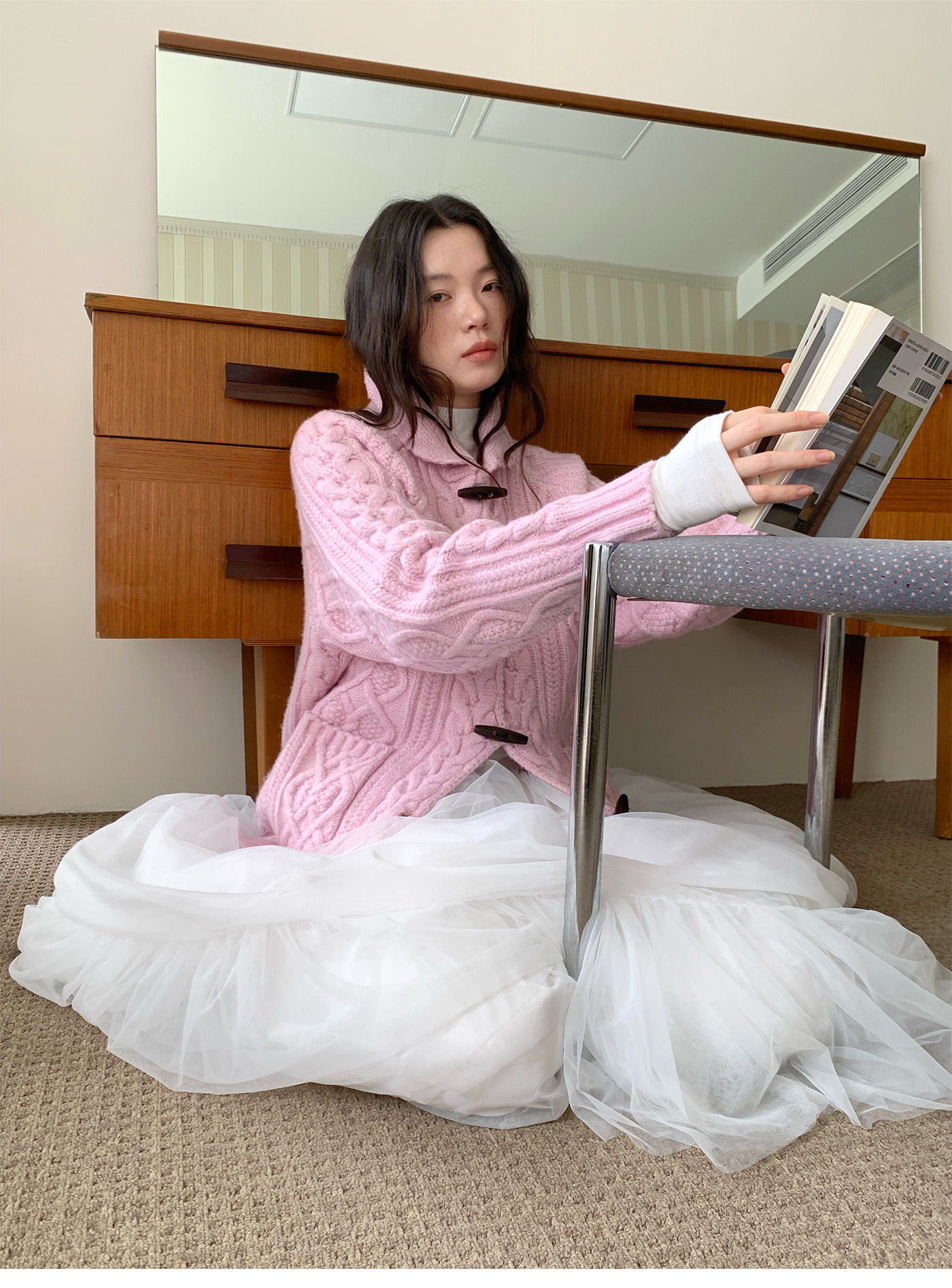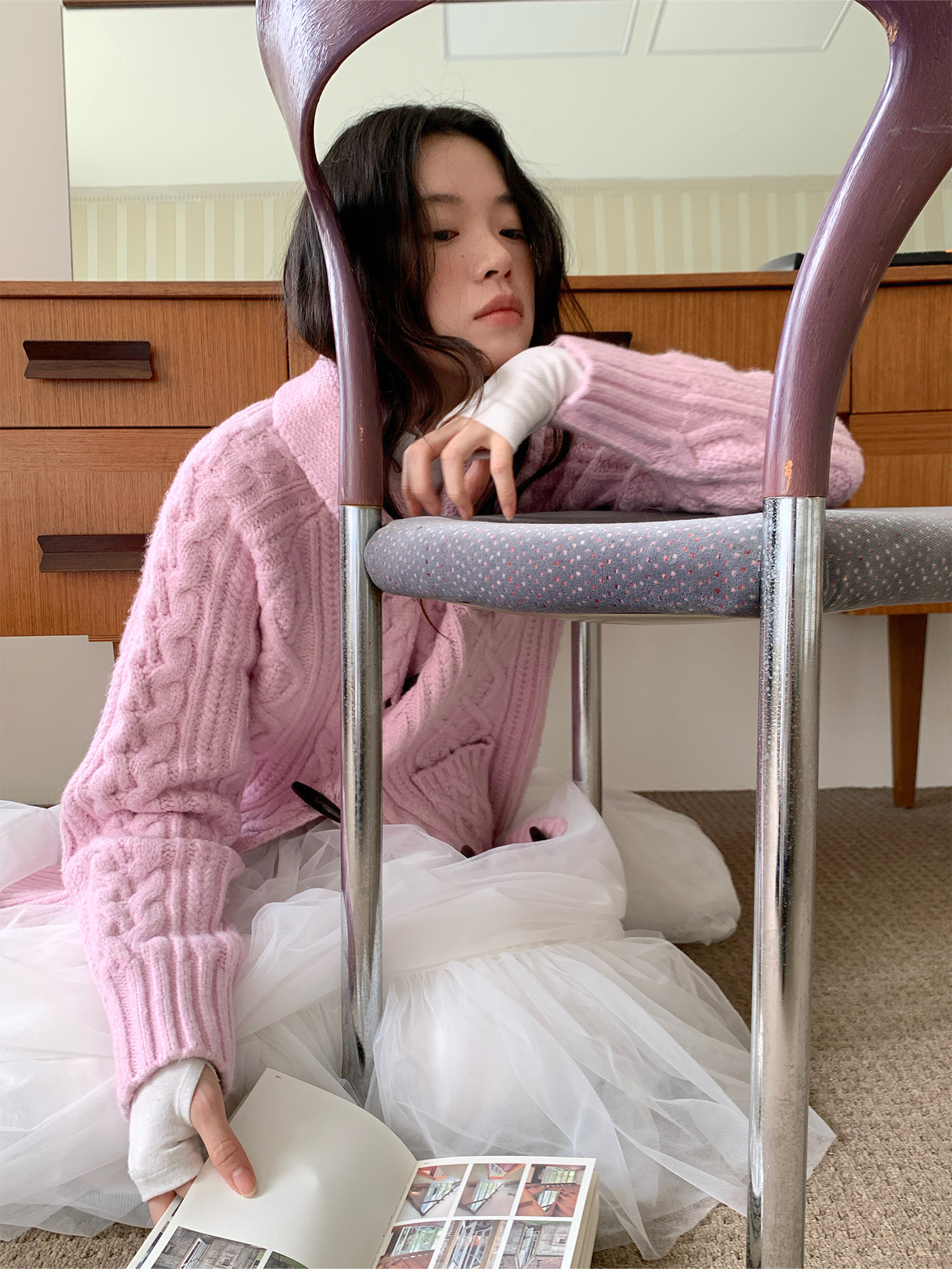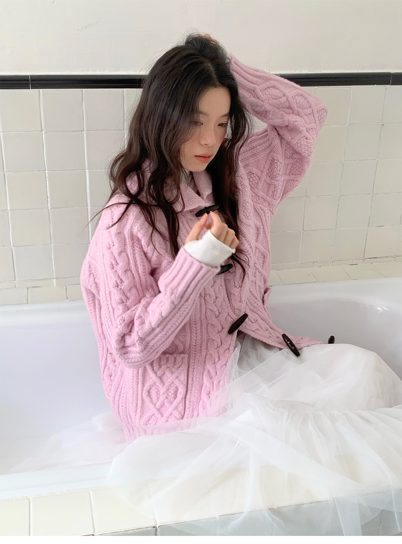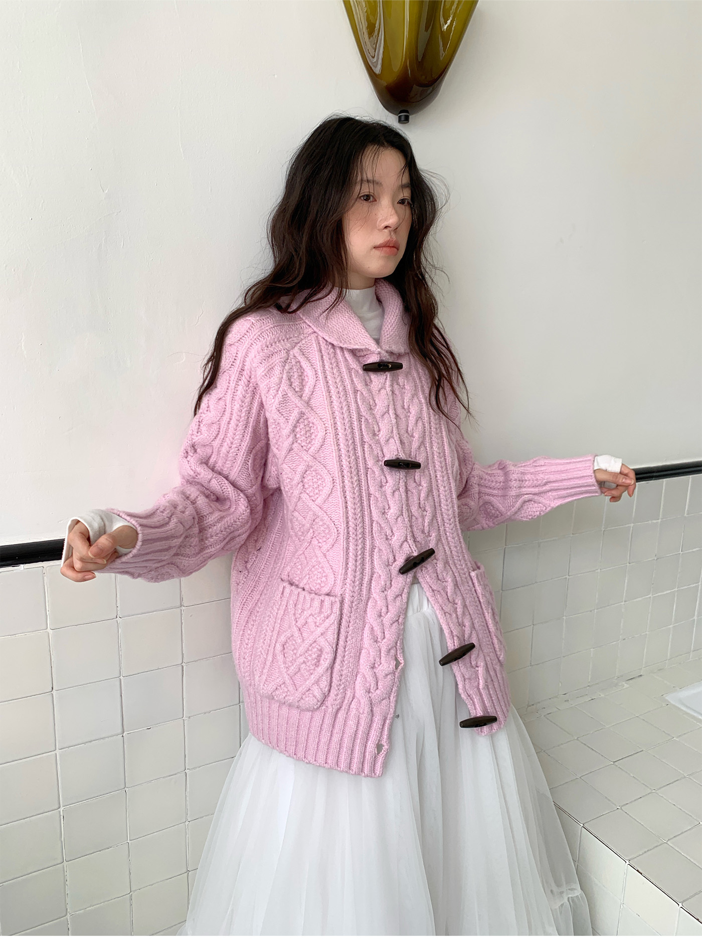 SOO Small Collar Cable Knit Purple Horn Button Sweater Cardigan
