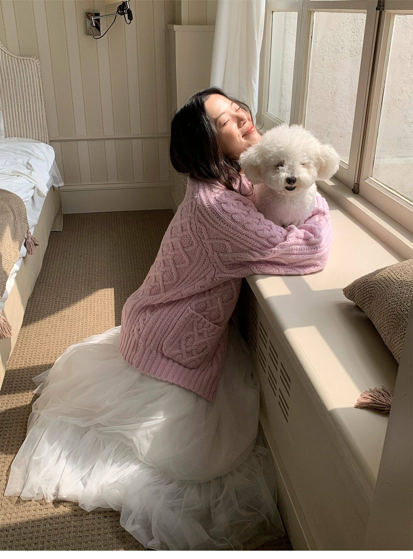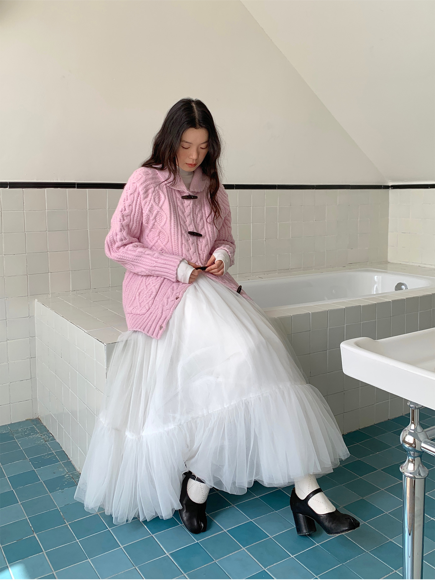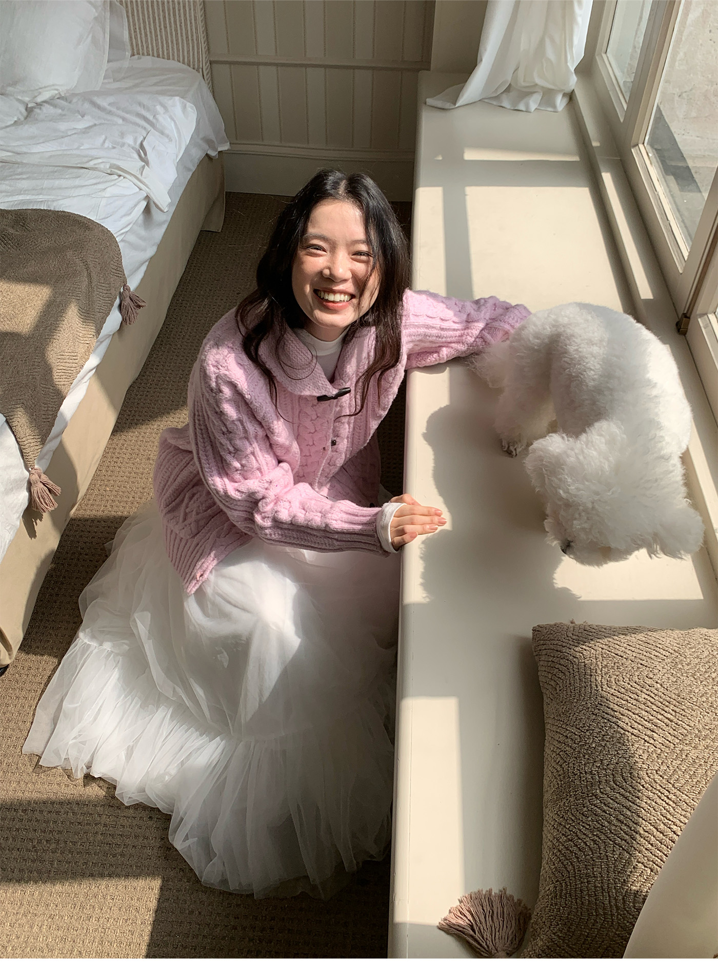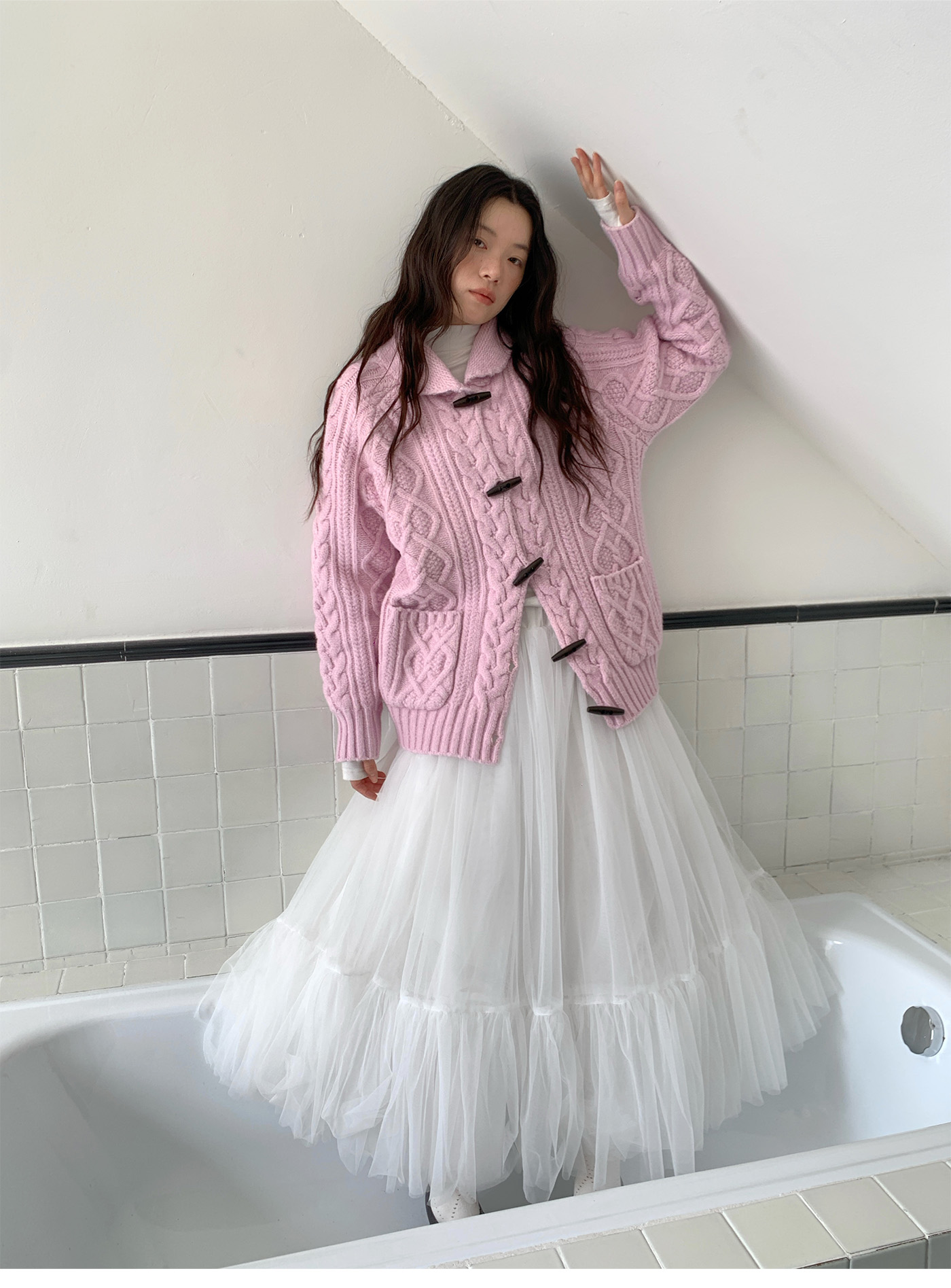 SOO Small Collar Cable Knit Purple Horn Button Sweater Cardigan