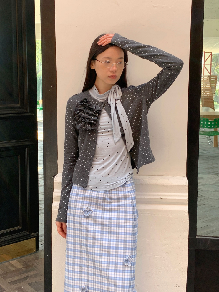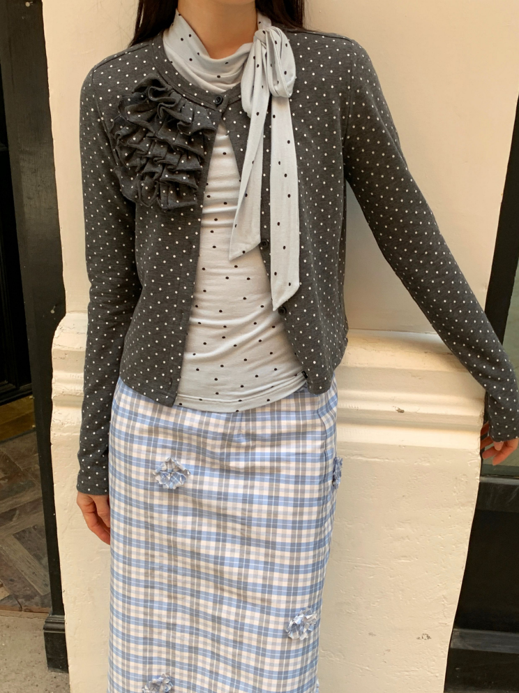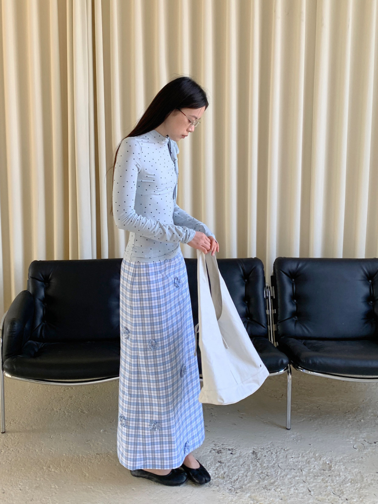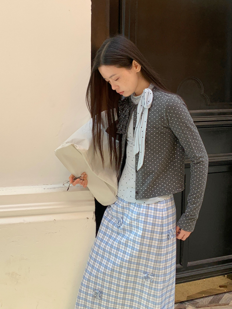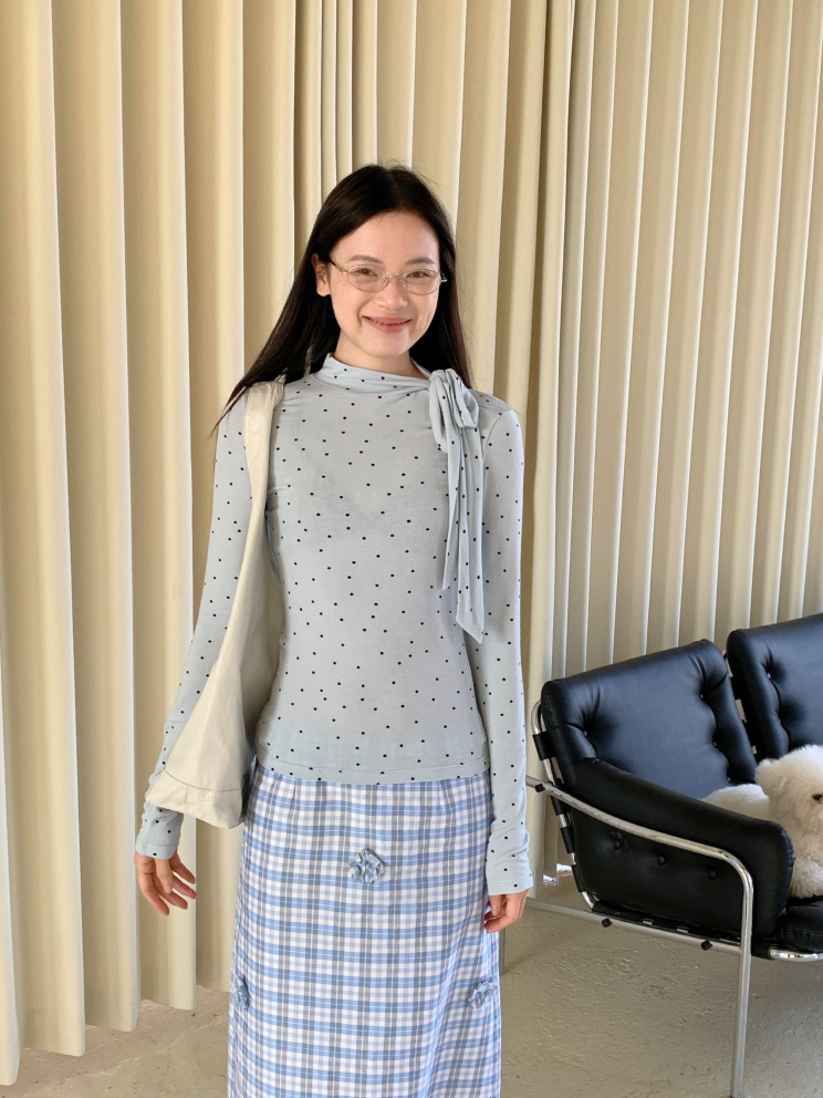 SOO Blue Polka Dot Tie-Waist Slimming Cute Elastic Fit Top