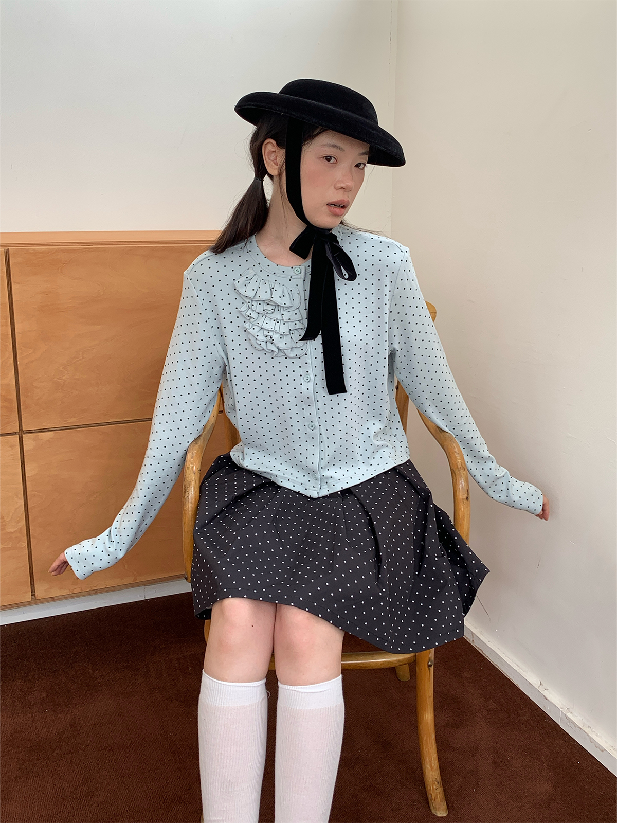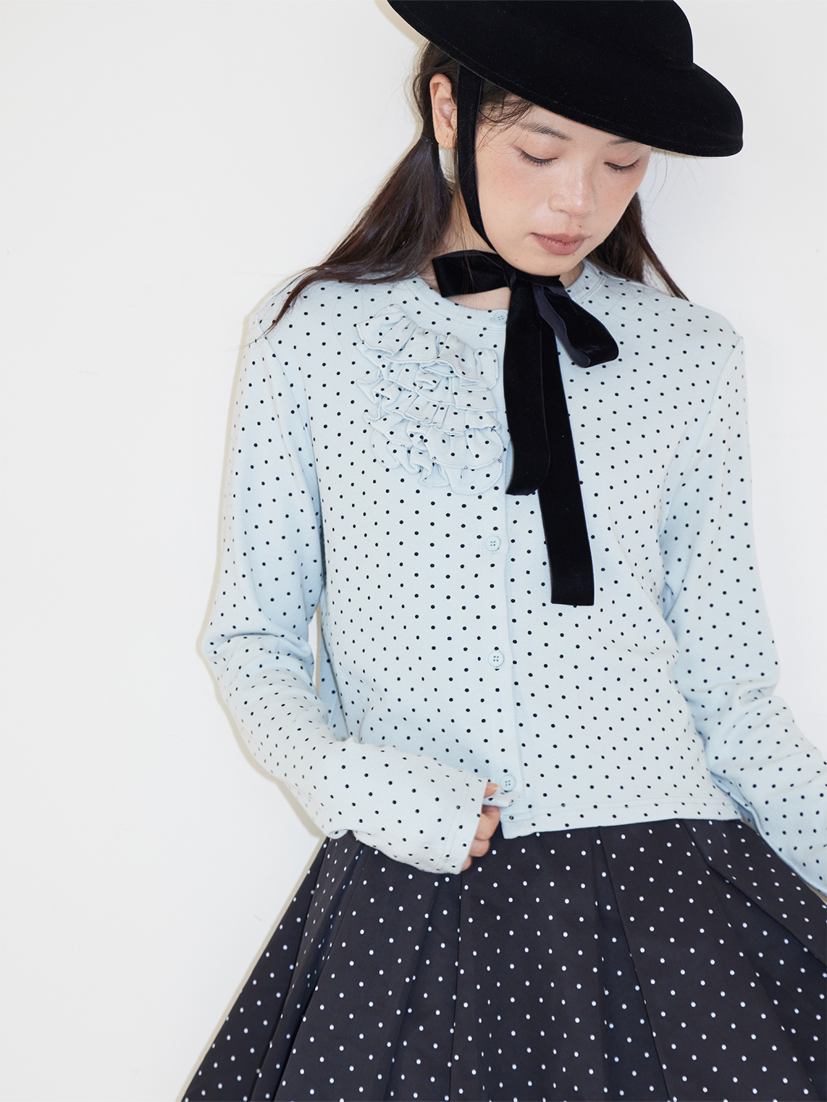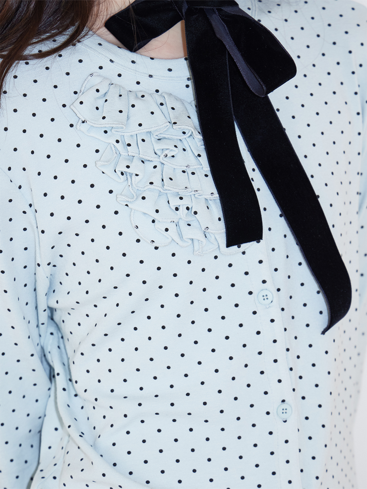 SOO Light Blue Multi-Layer Lace Polka Dot Knit Cardigan