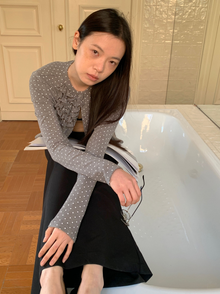 SOO Light Gray Multi-Layer Lace Polka Dot Knit Cardigan