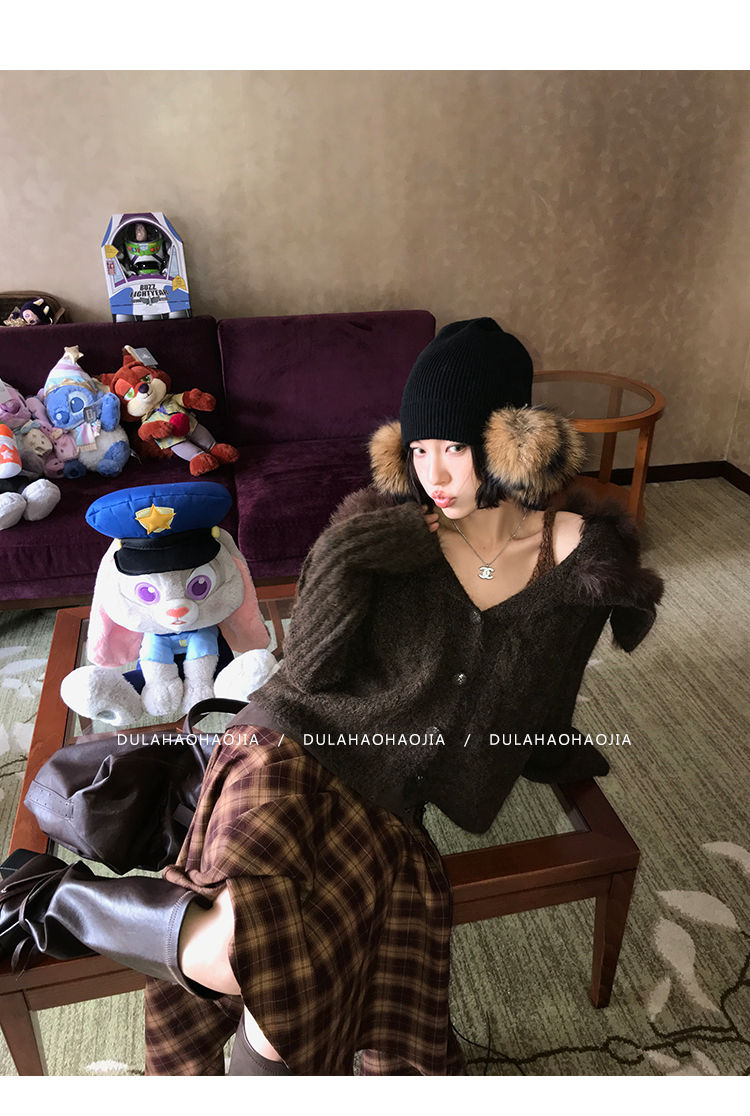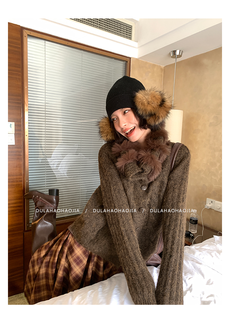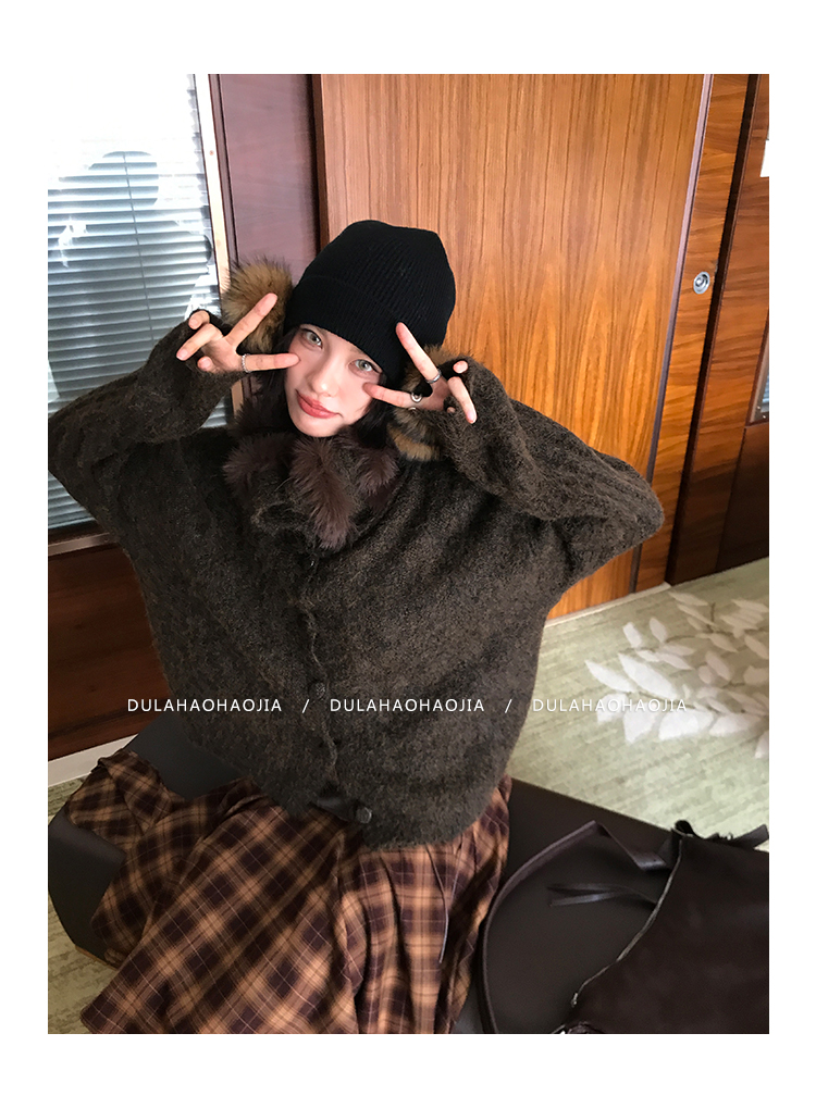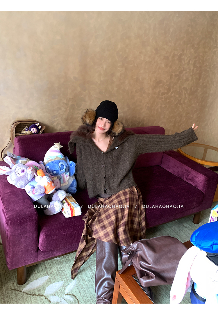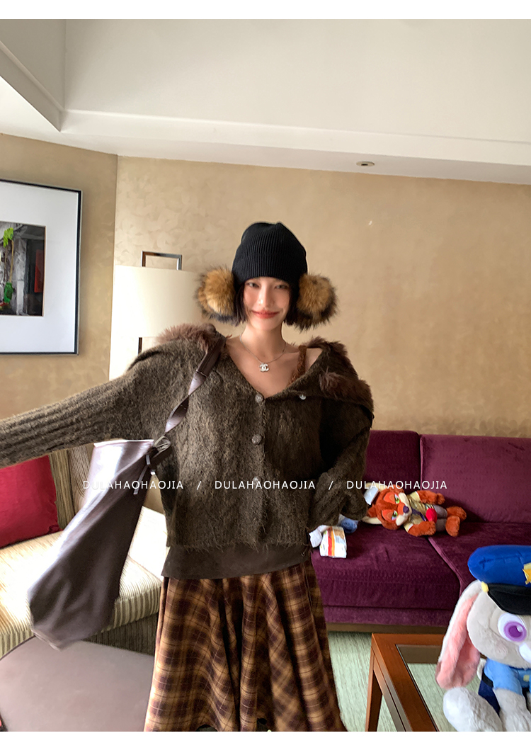 DULA Sydney Diary Furry Oversized Collar Cardigan Sweater