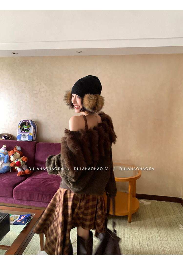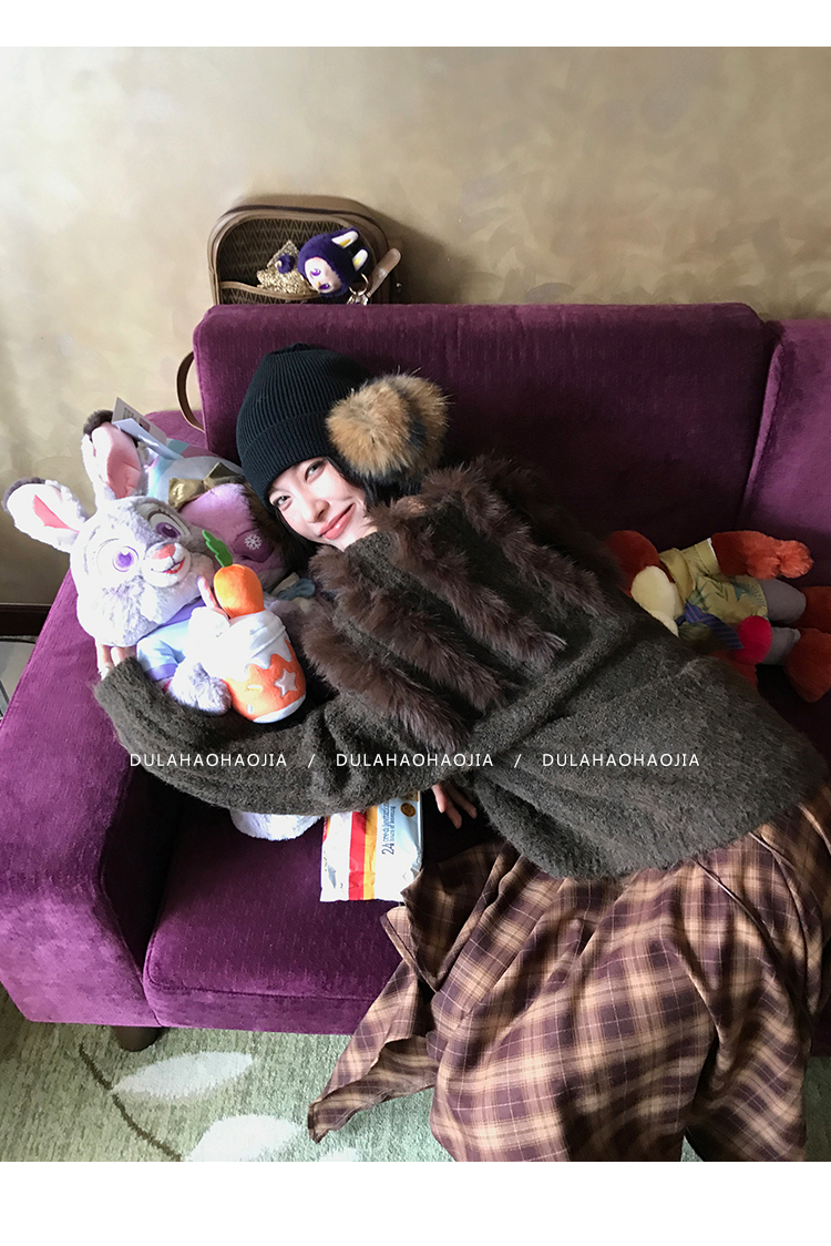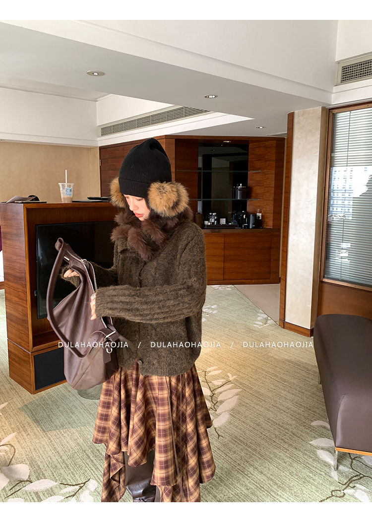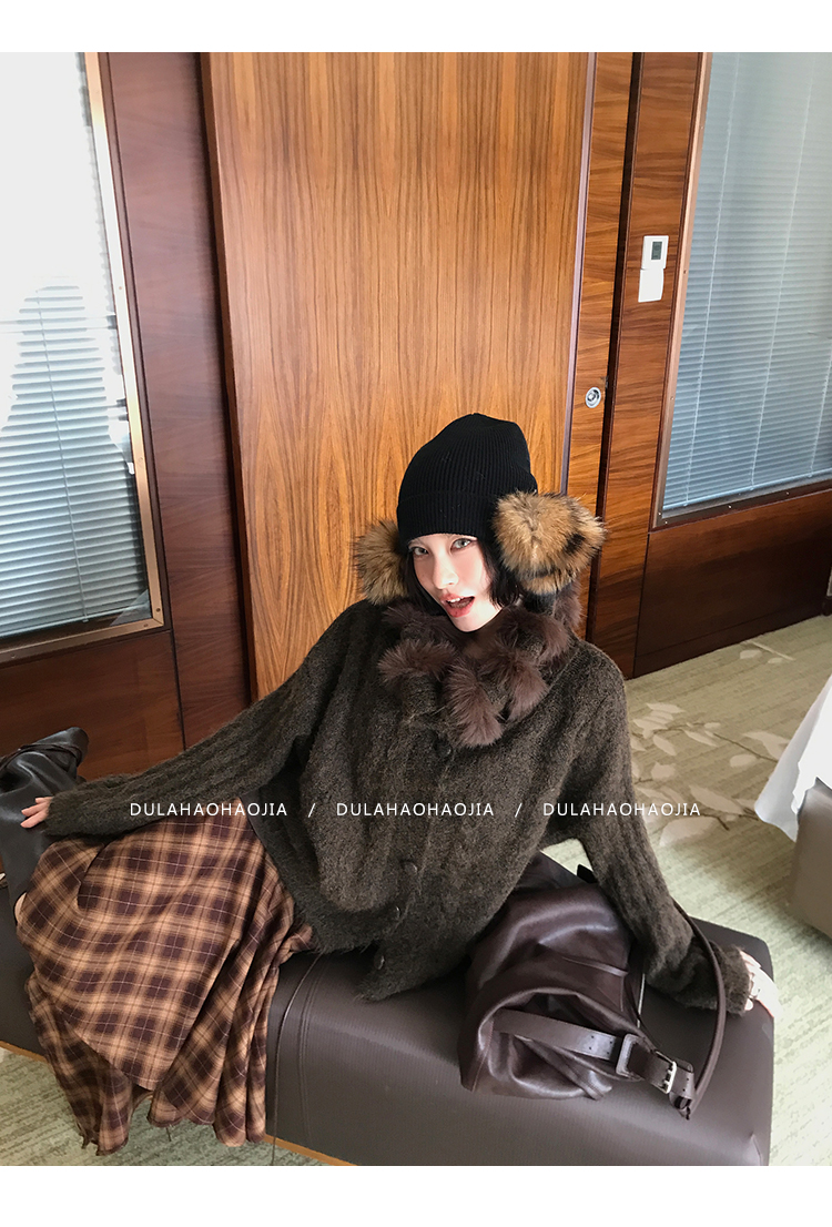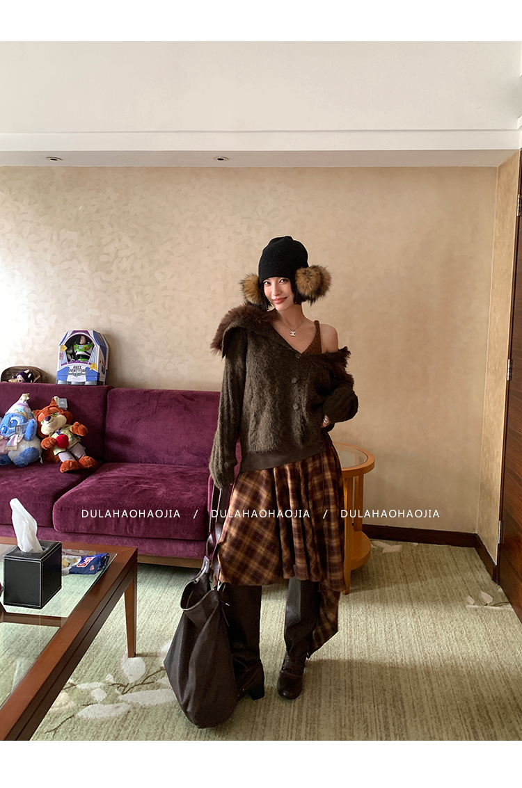 DULA Sydney Diary Furry Oversized Collar Cardigan Sweater