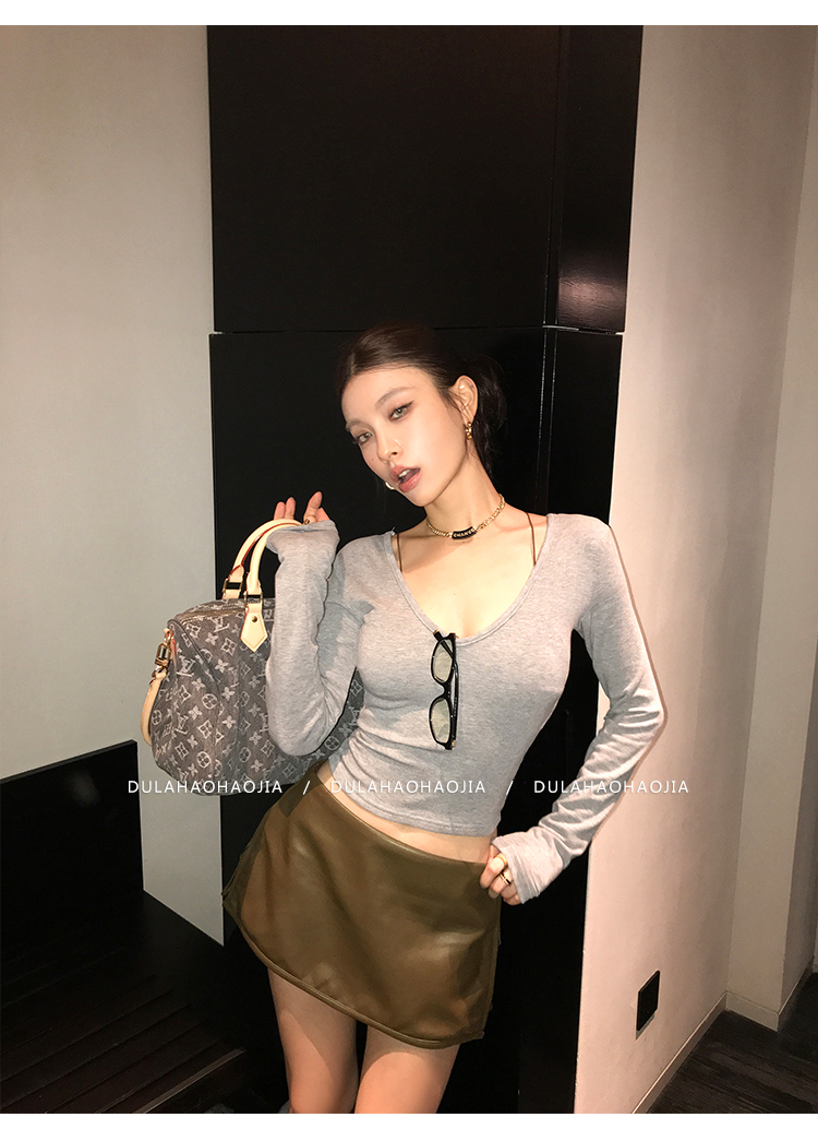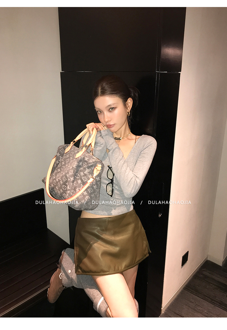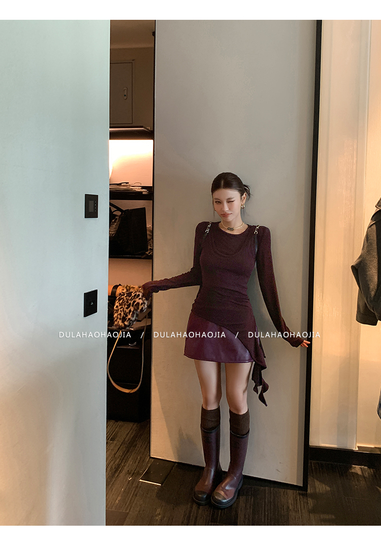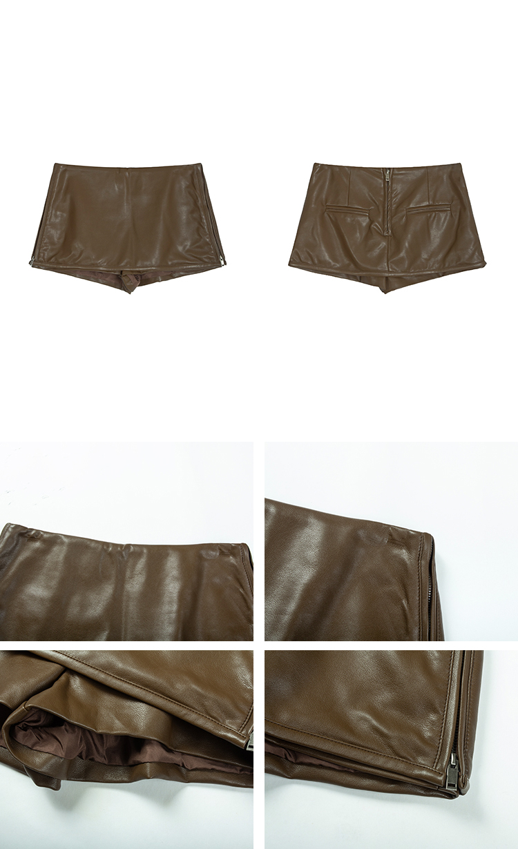 DULA UK Region Leg-Length Beauty PU Leather Short Skirt Pants