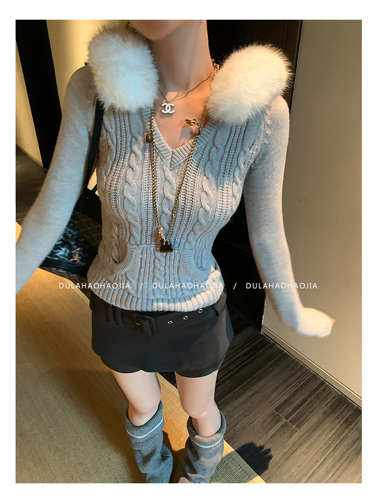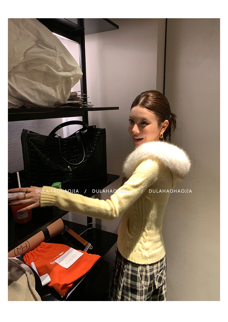 DULA Snow-Topped Muffin Detachable Fur Collar Hooded Sweater