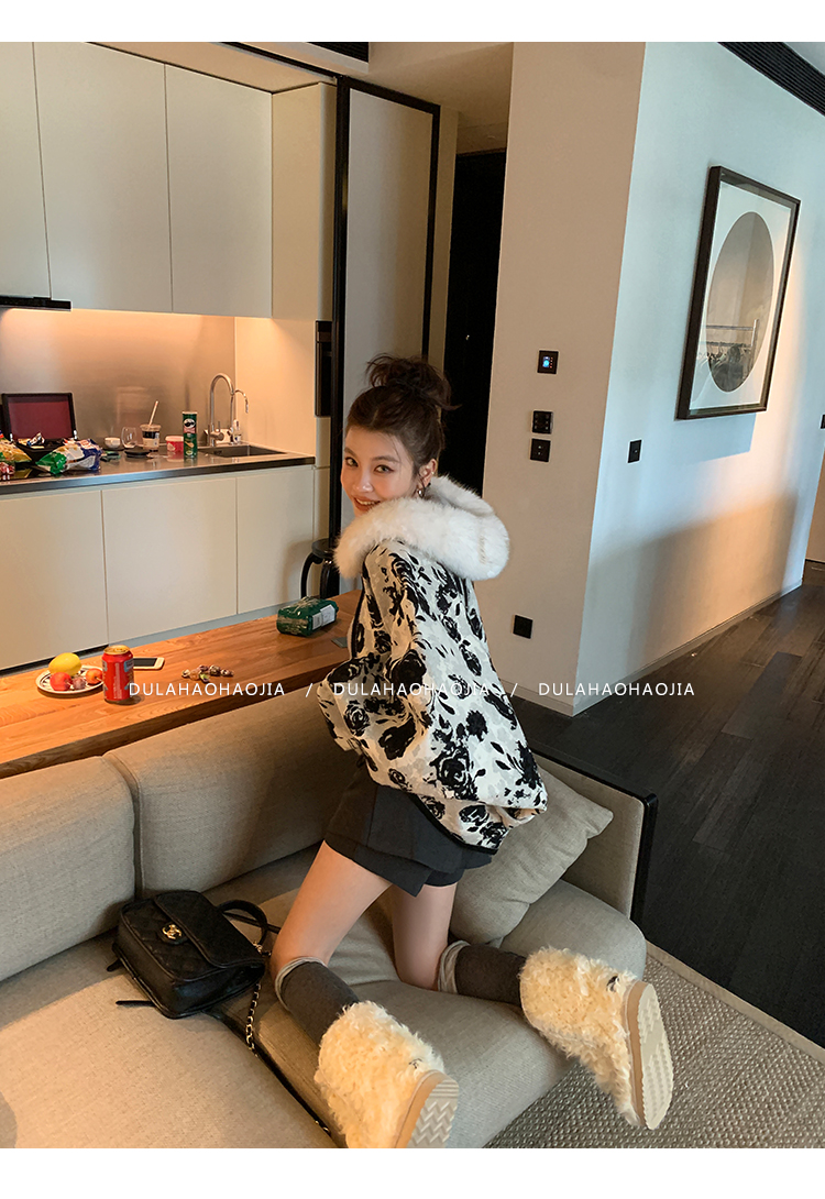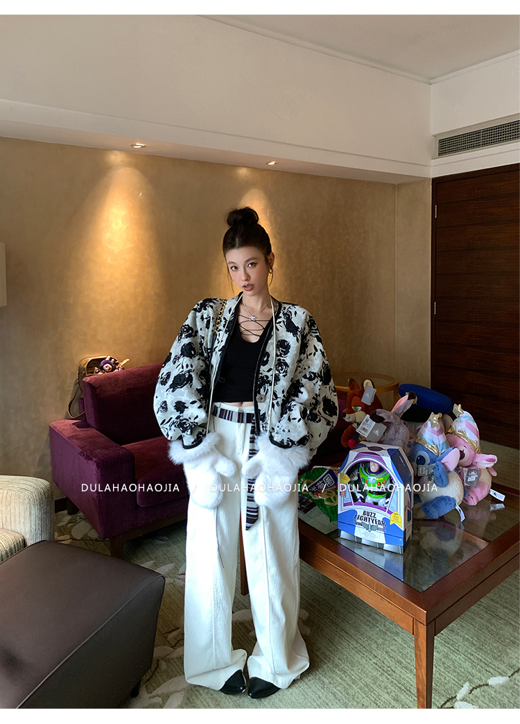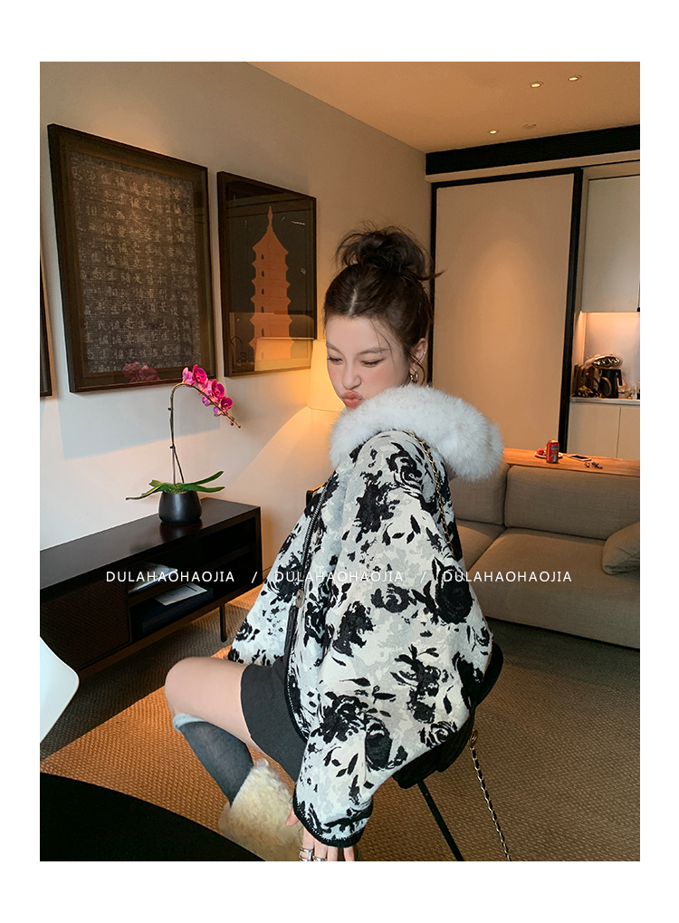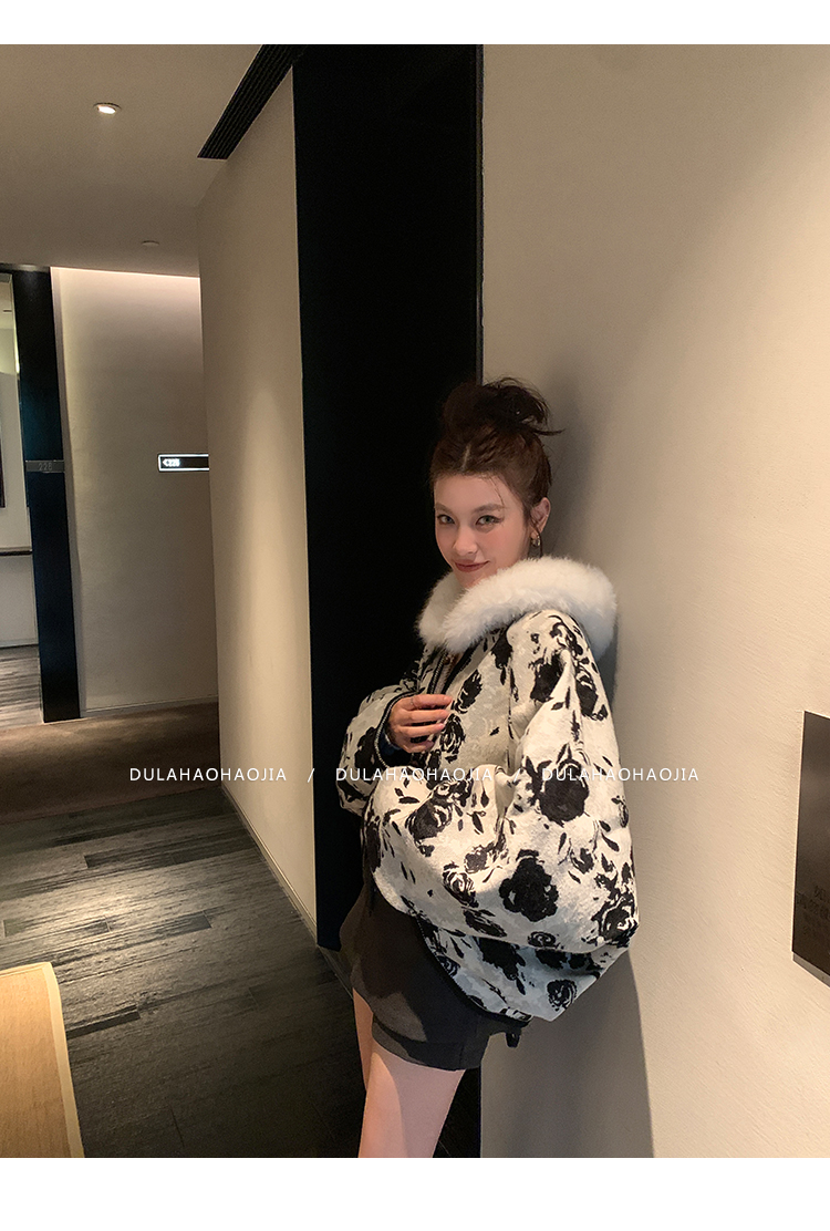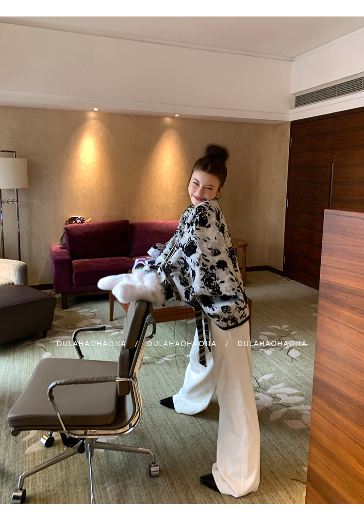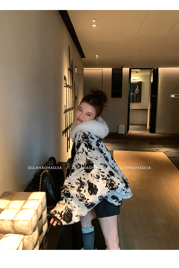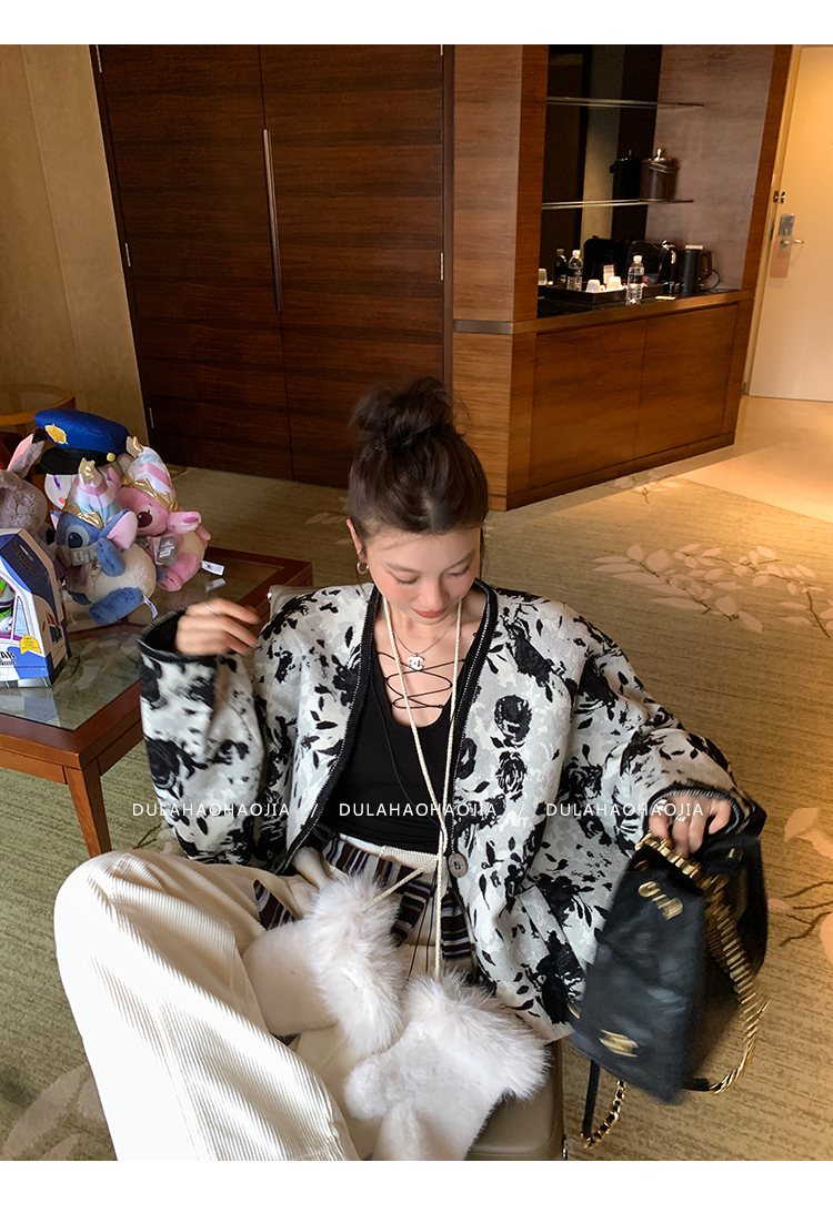 DULA Walking Grass Planter Jacquard Cape Wool Coat