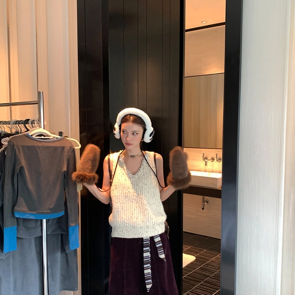 DULA Art Holiday Lazy Striped Pullover Fur Collar SweatshirtNEW