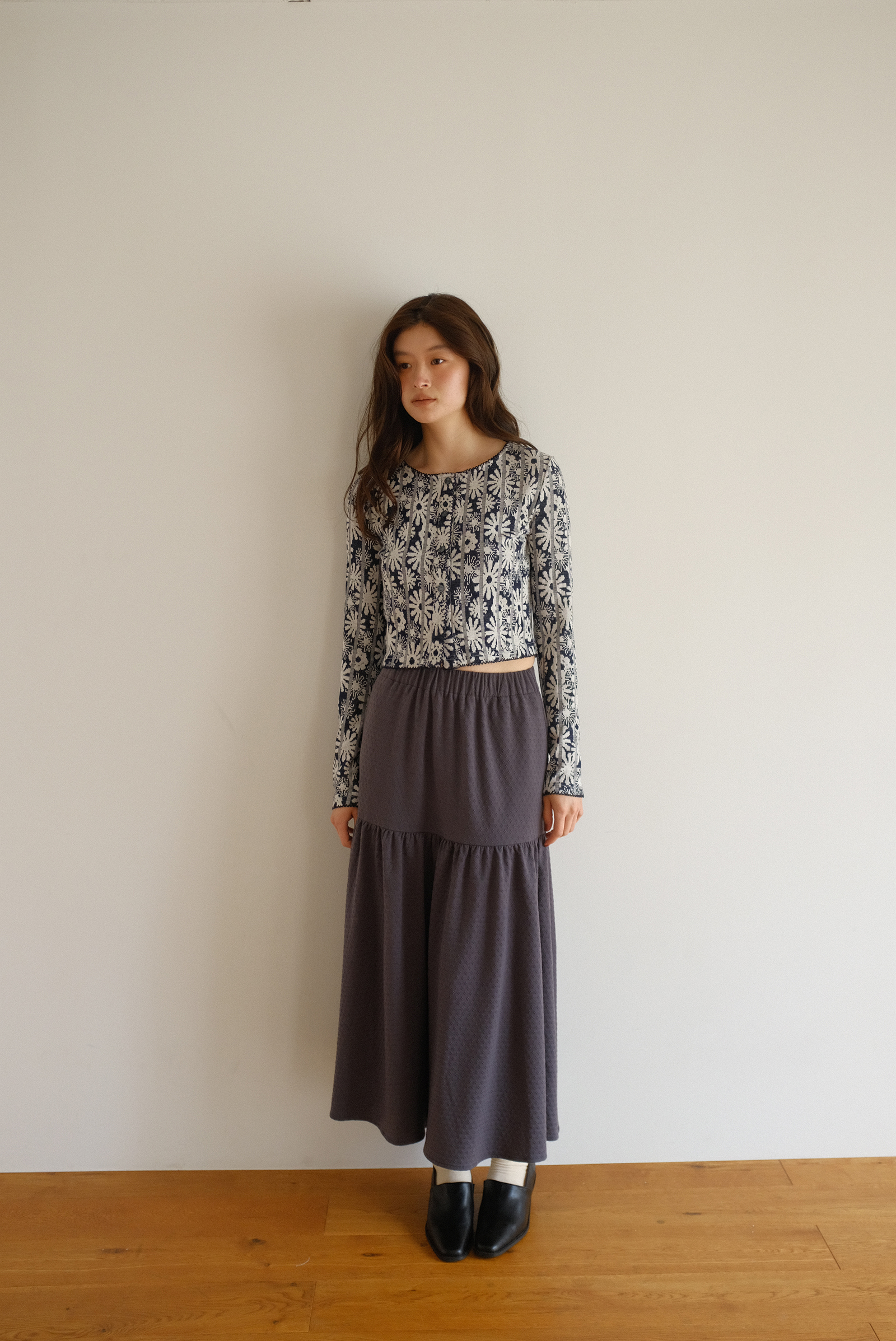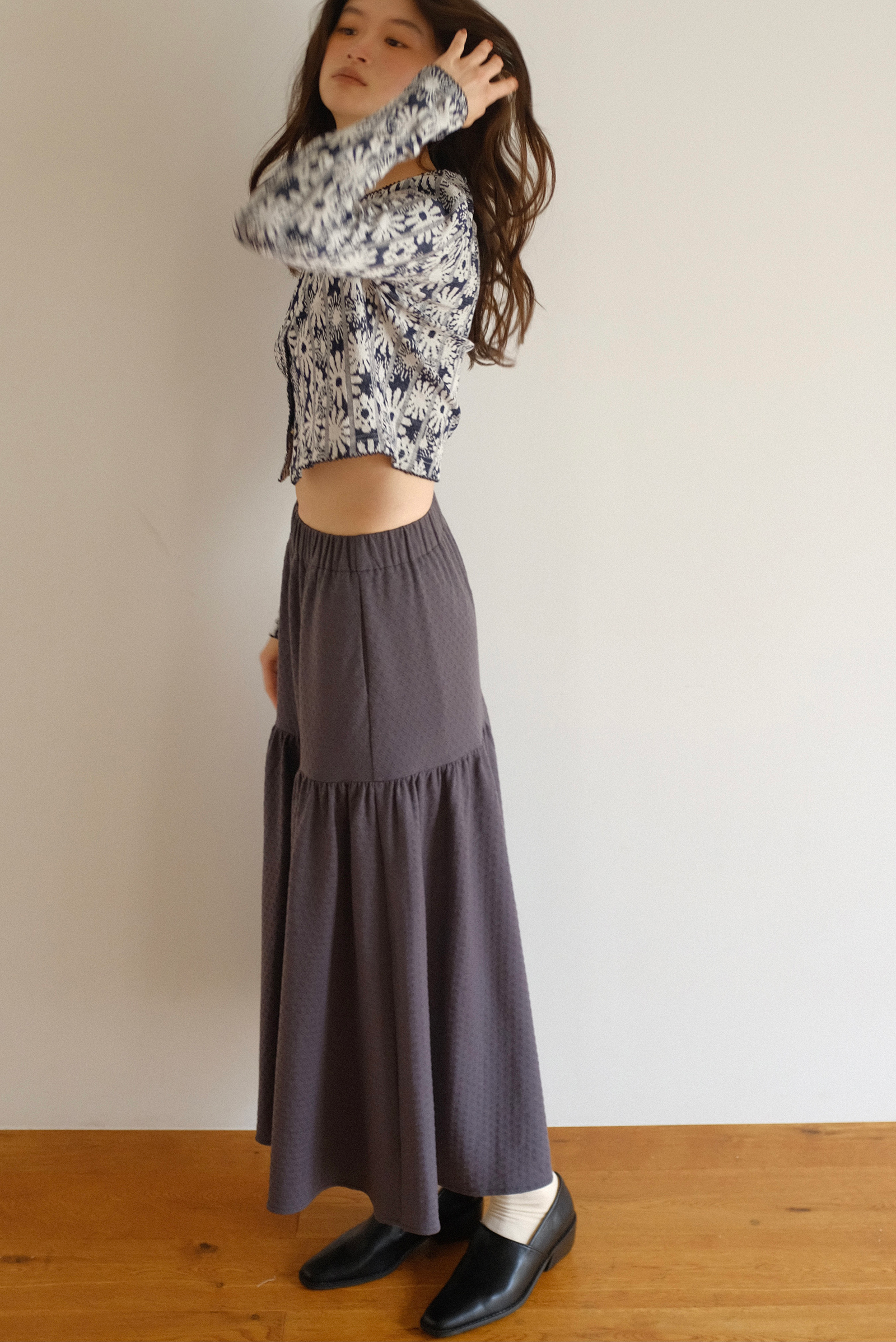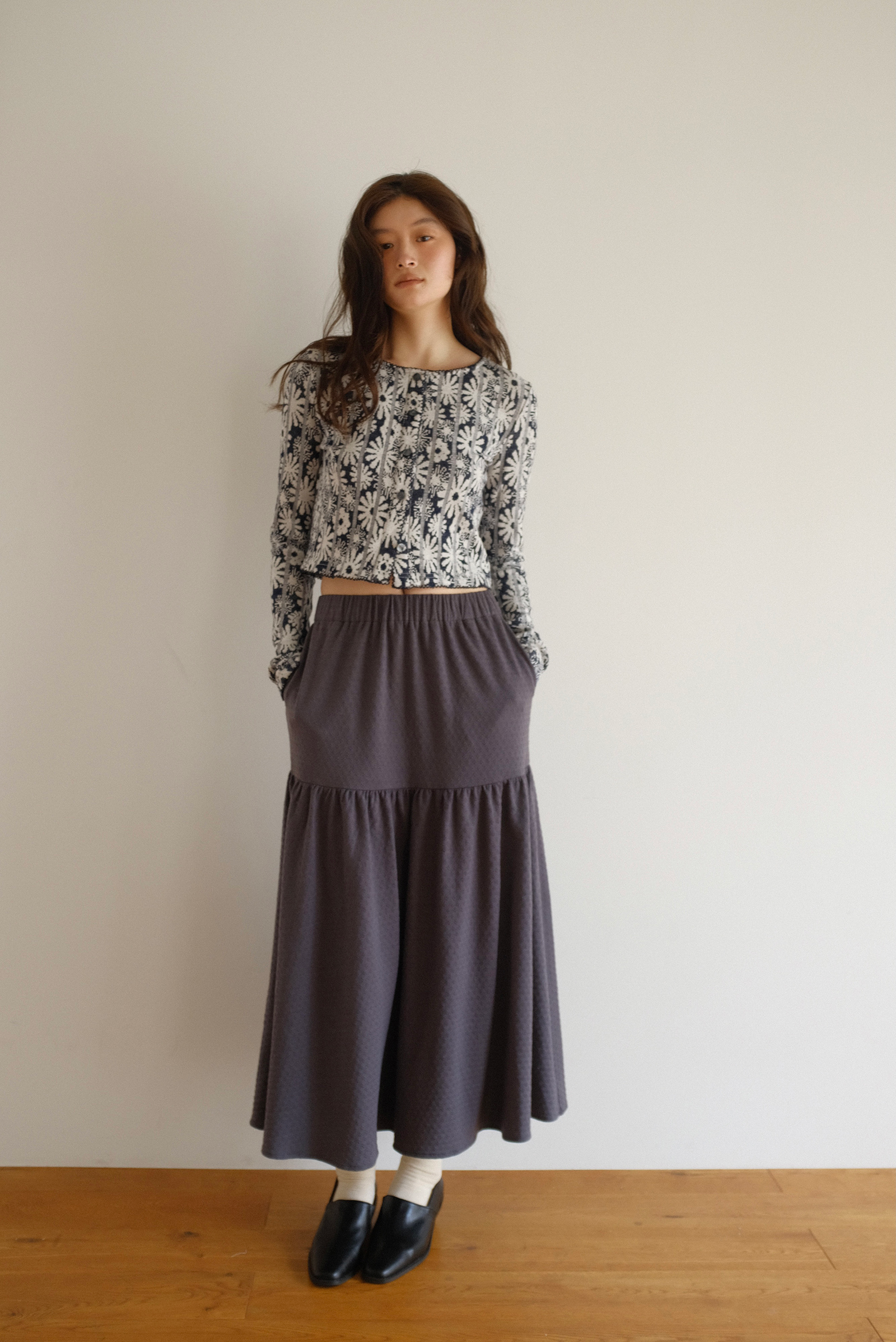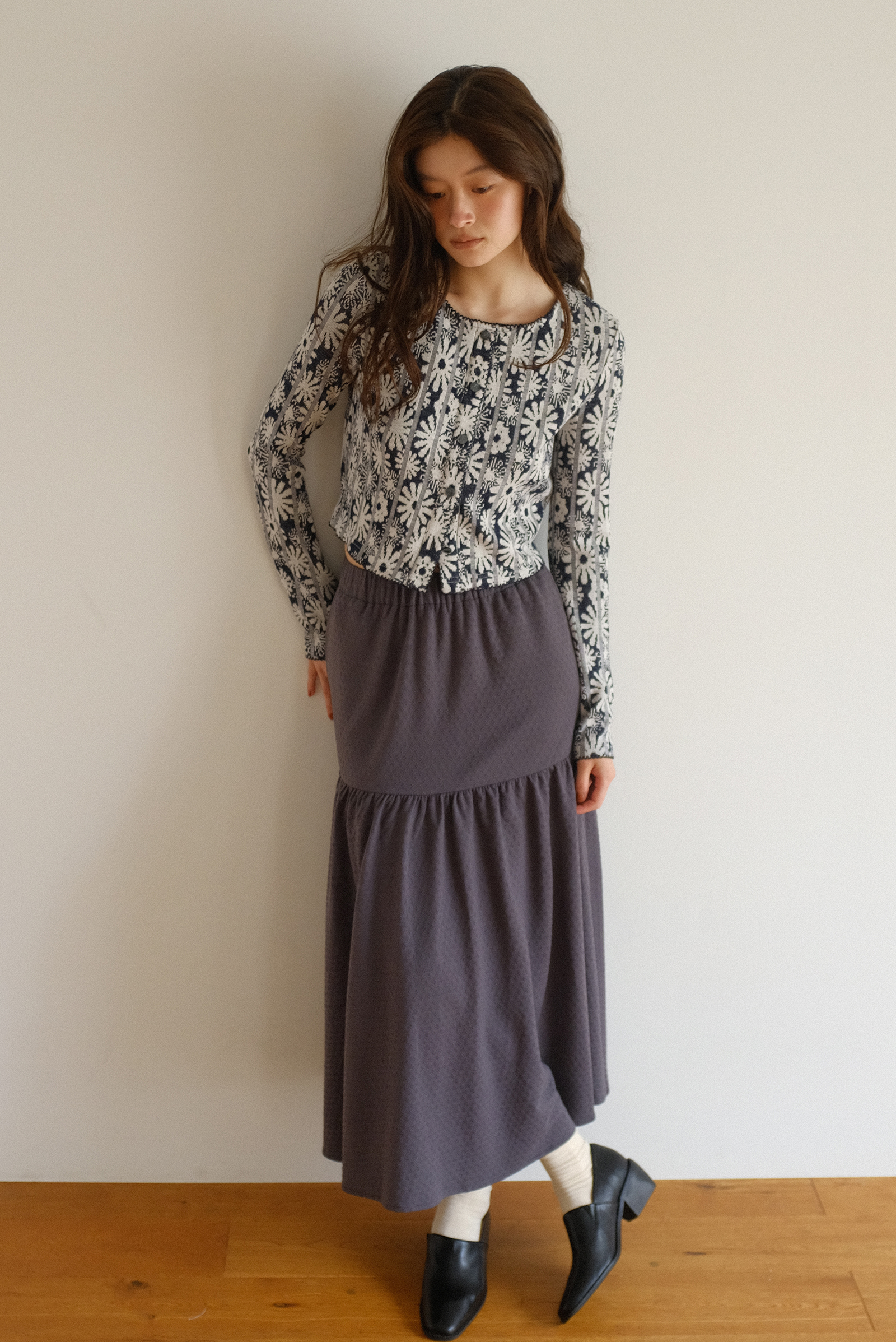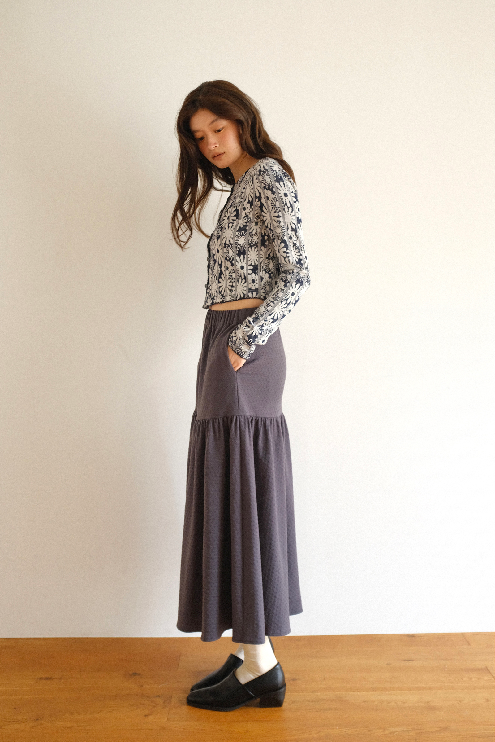 DEER Retro Knit Jacquard Midi Skirt A-line Long Skirt
