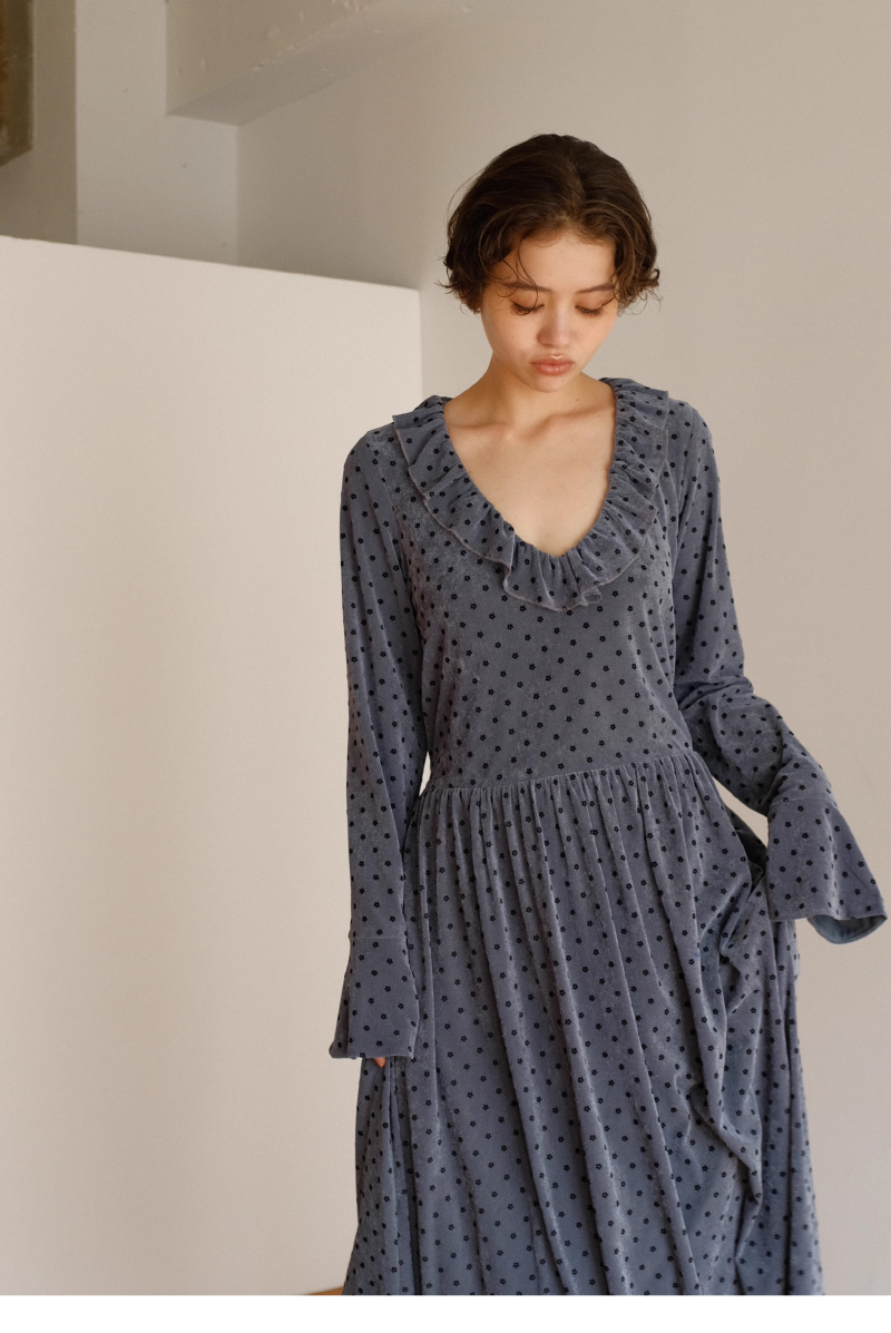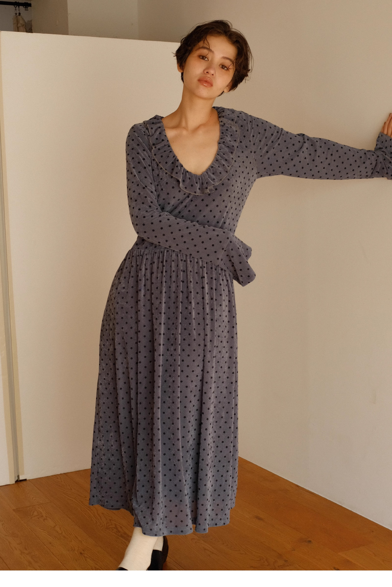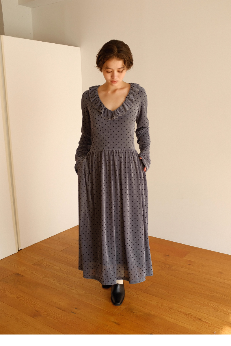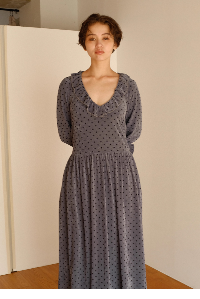 DEER Polka Dot Ruffles V-Neck Long Dress