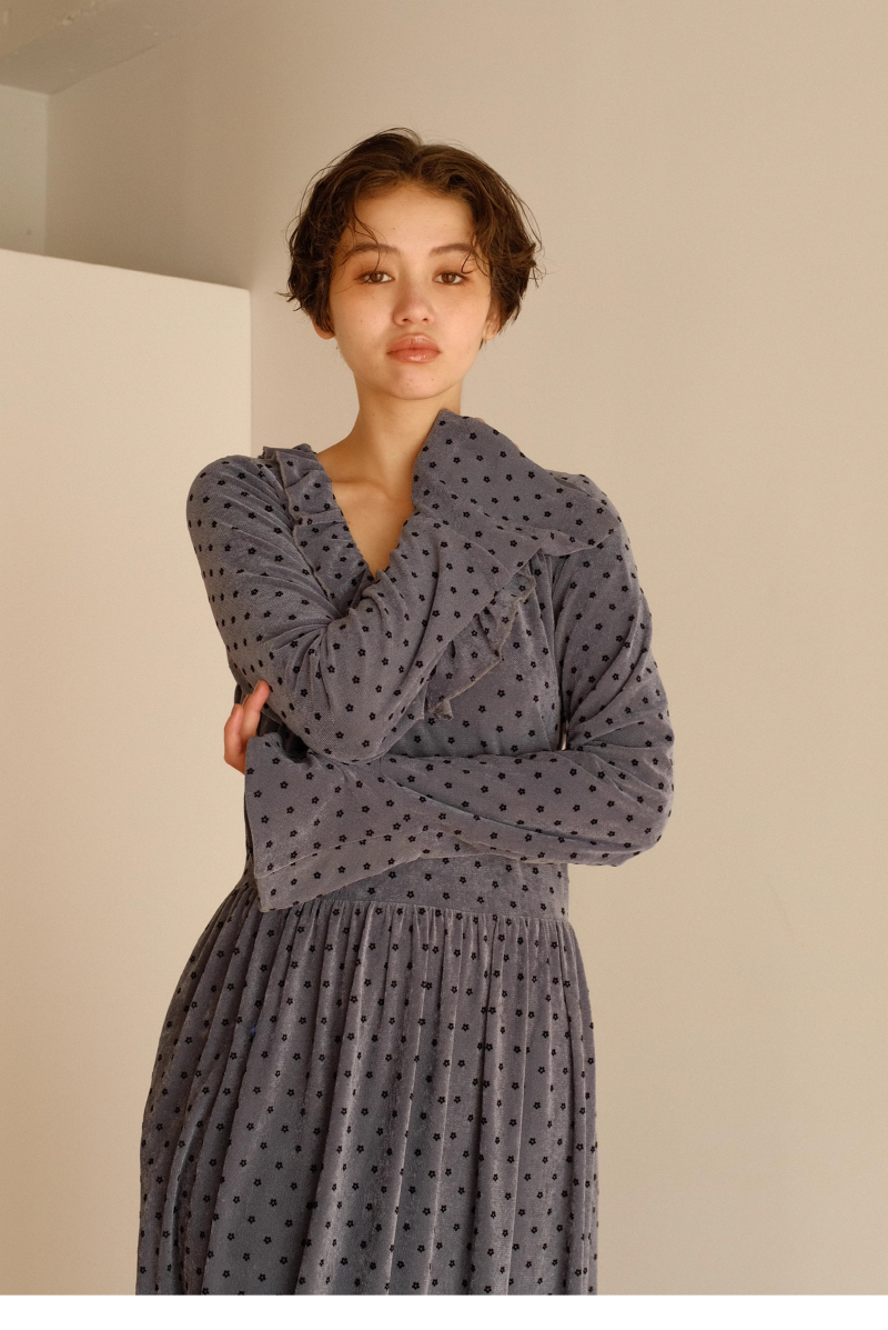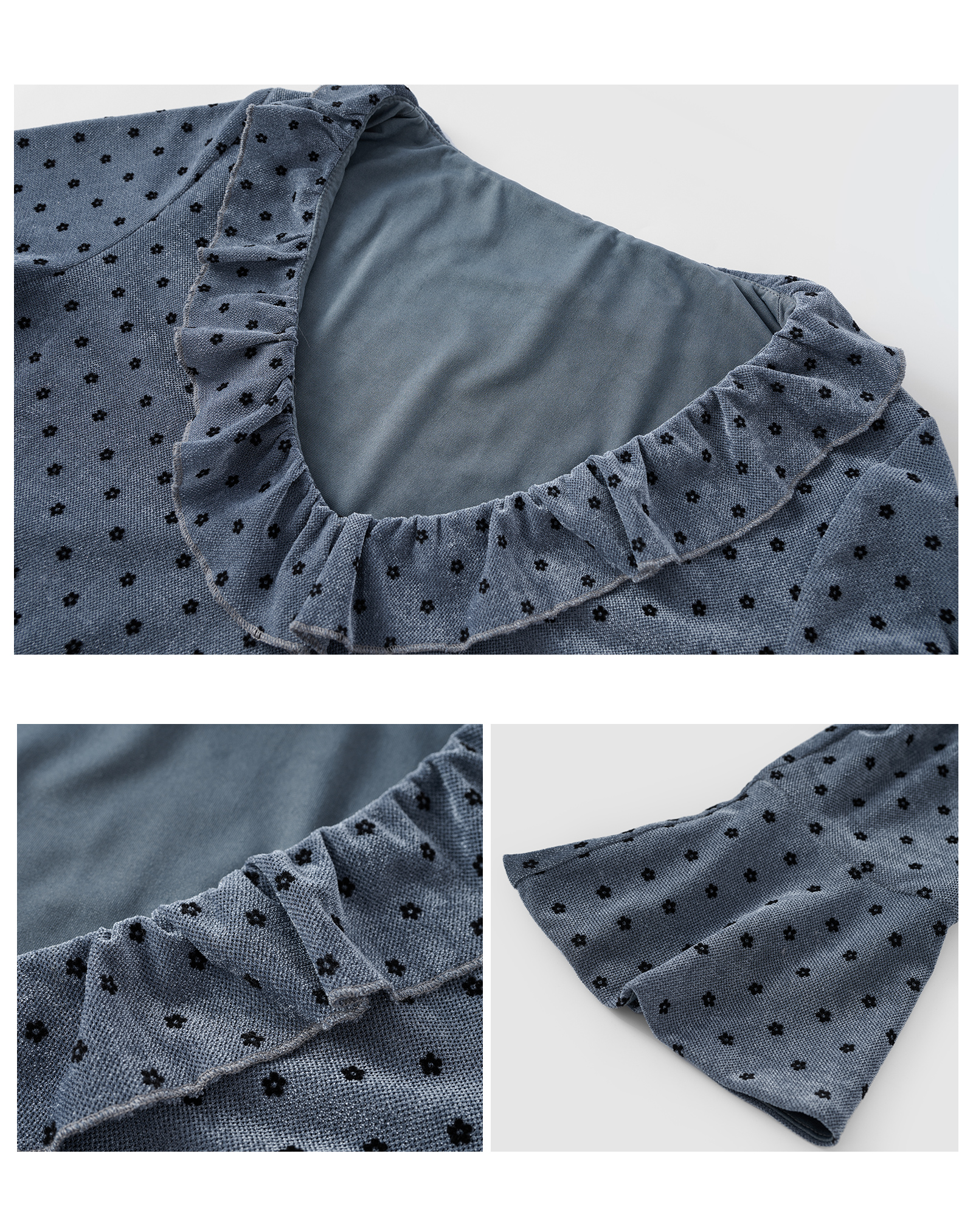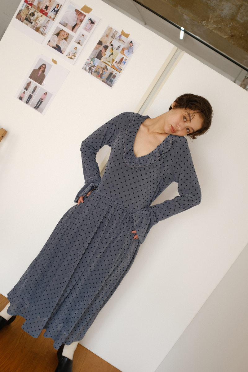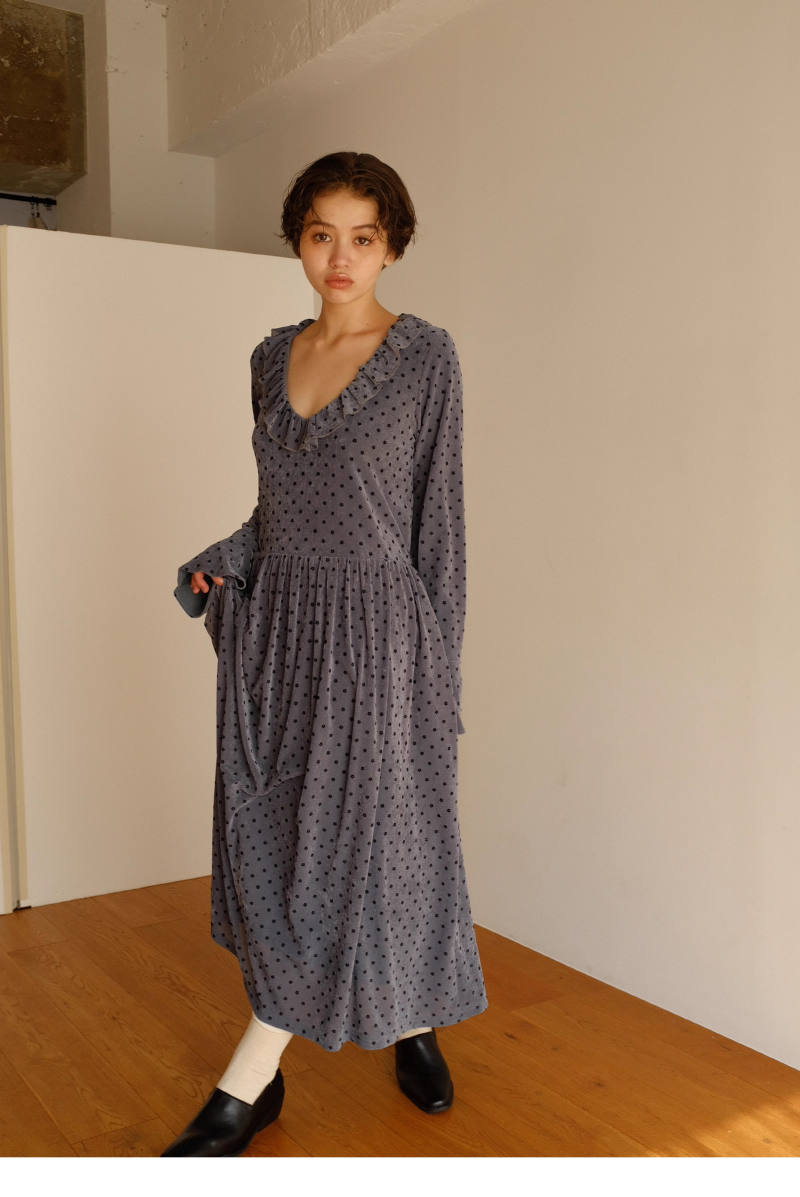 DEER Polka Dot Ruffles V-Neck Long Dress